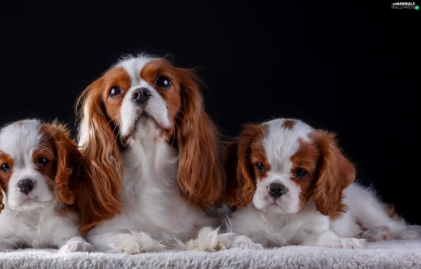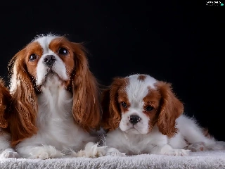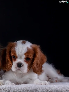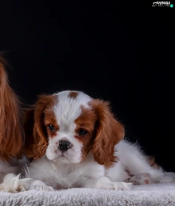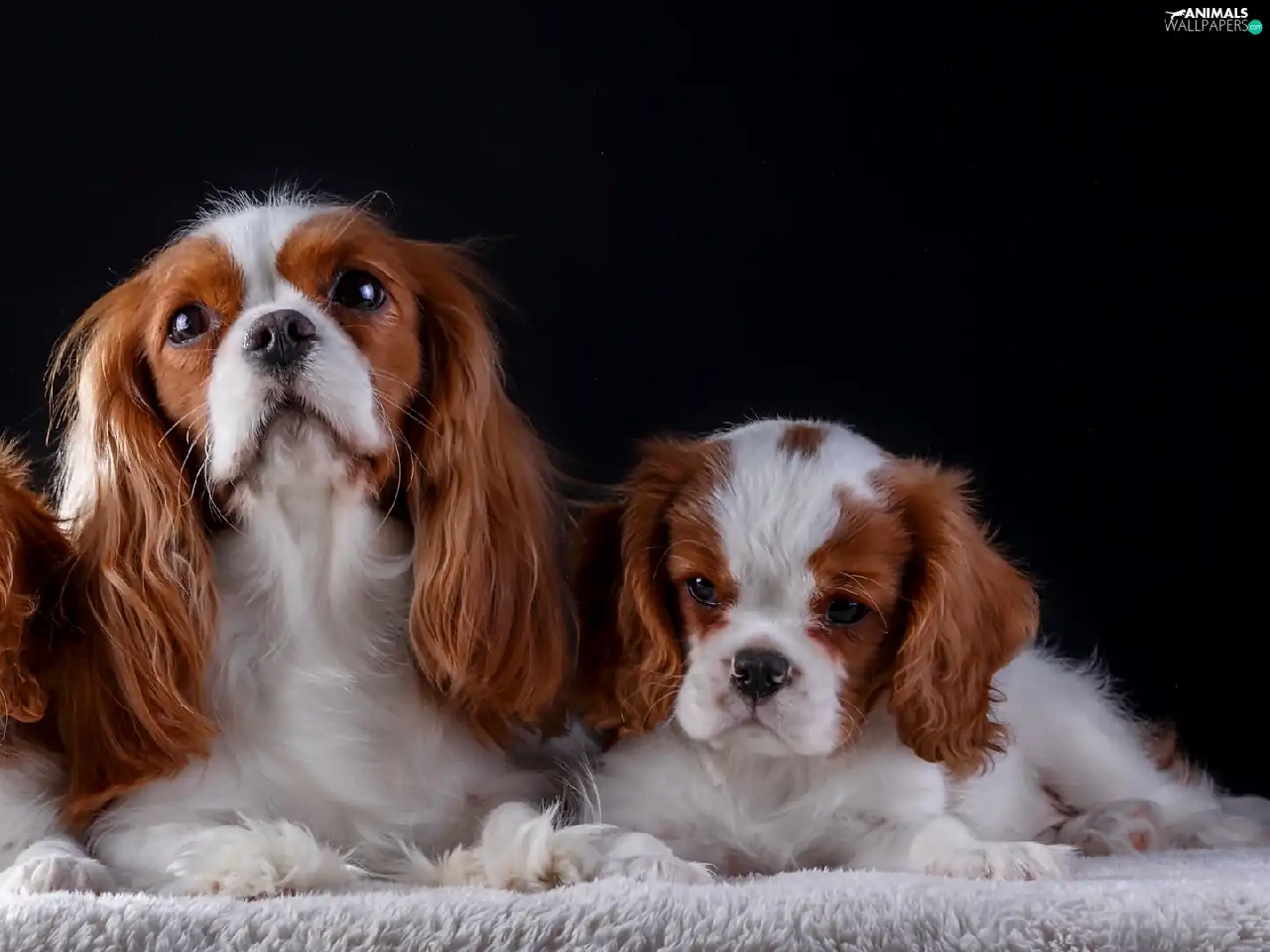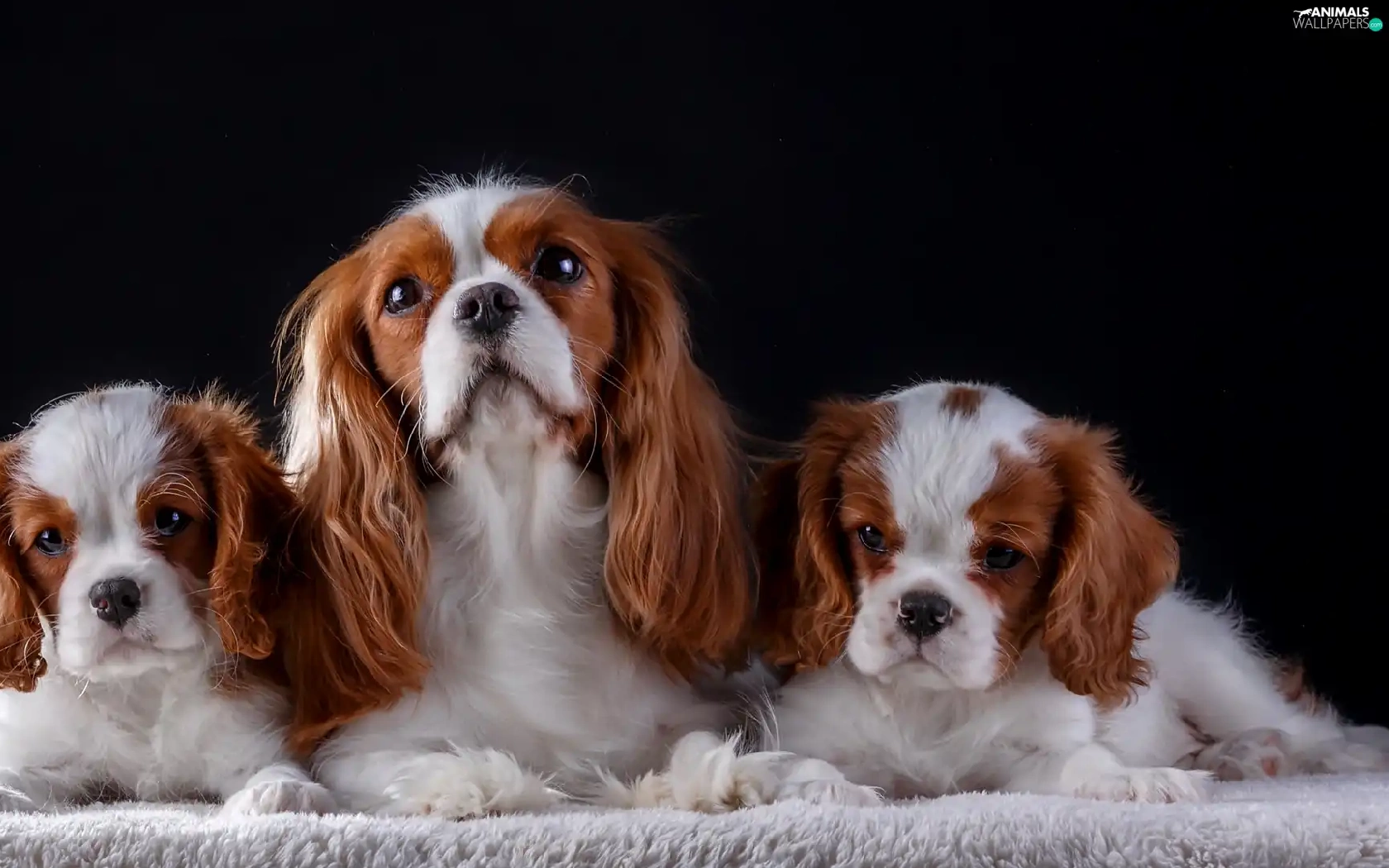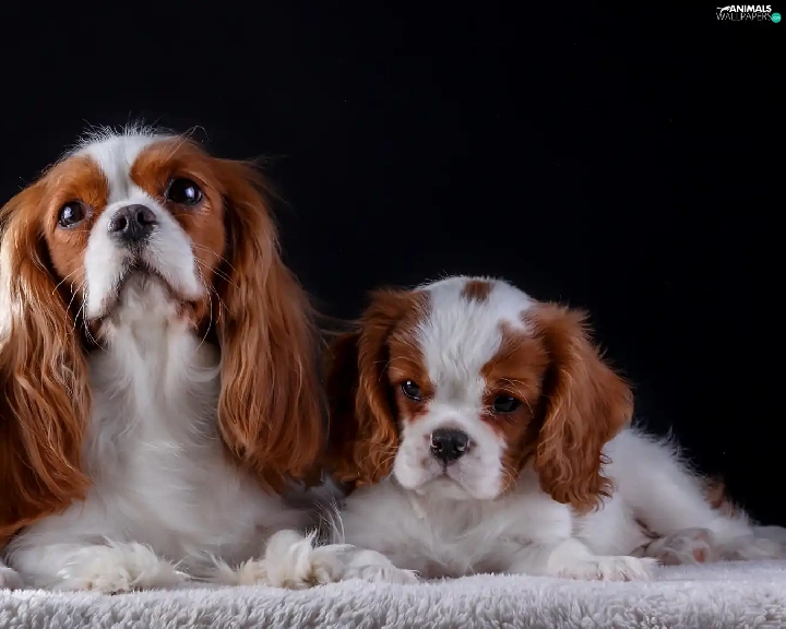 coverlet, Dark Background, puppies, bitch, Cavalier King Charles spaniel