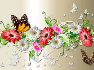 graphics, Flowers, butterfly, 2D