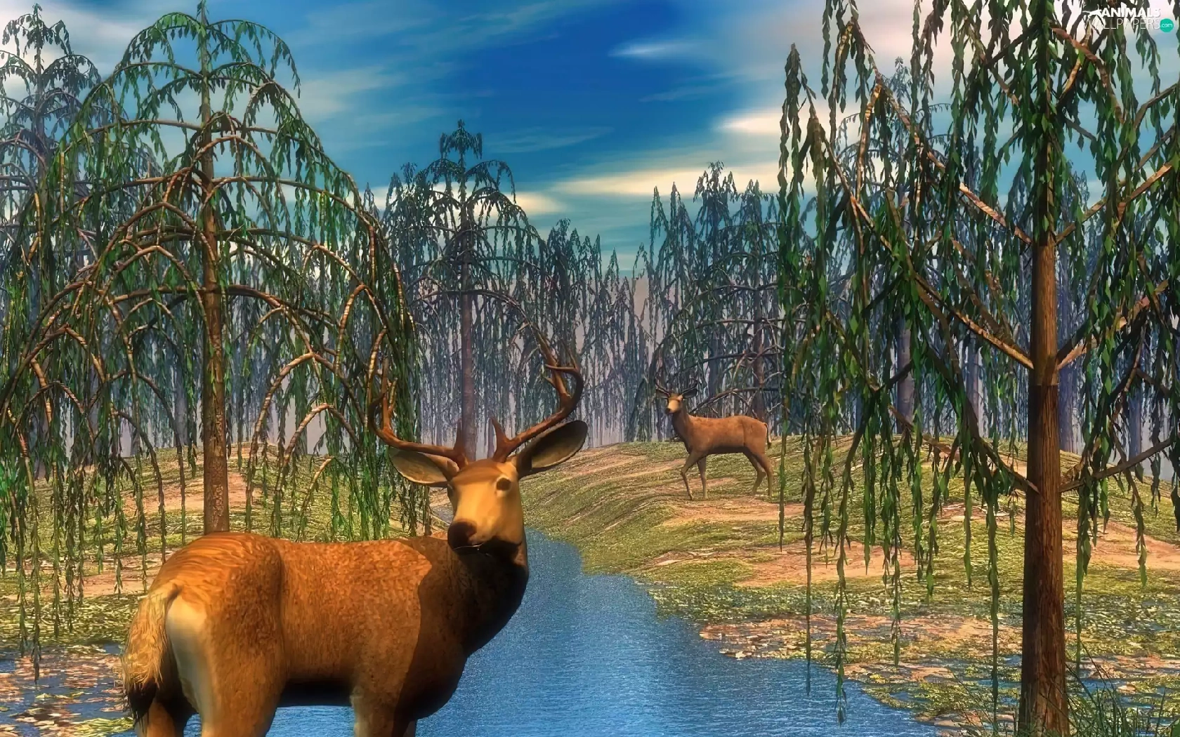 3D, Deer, forest