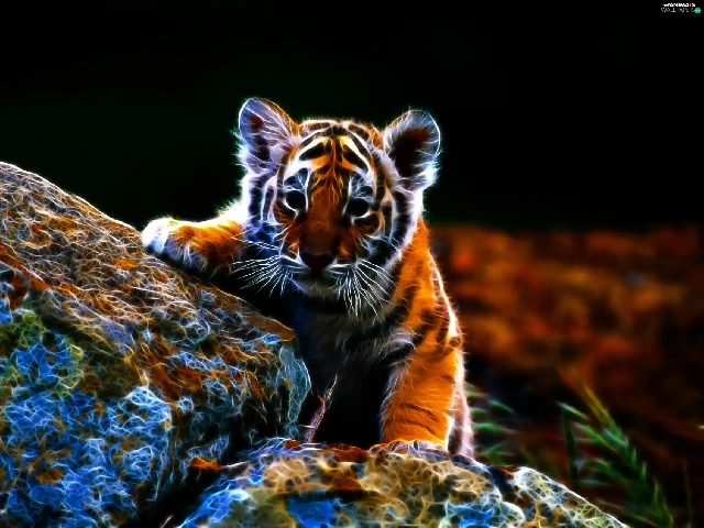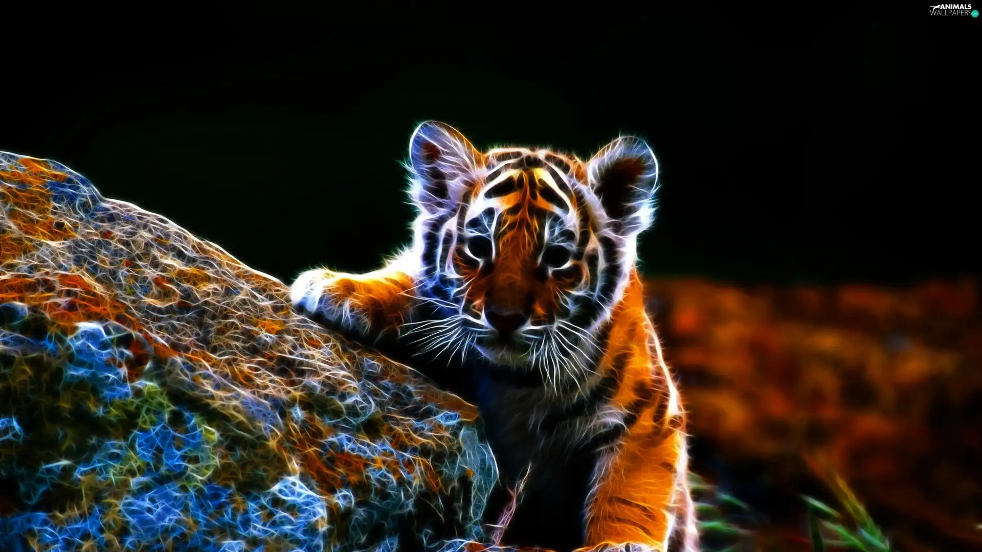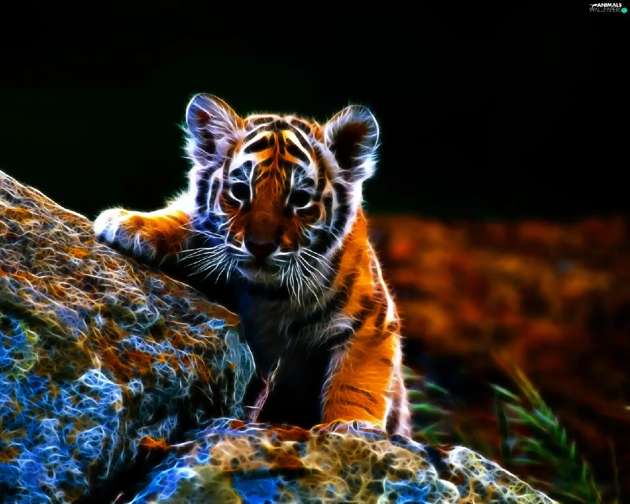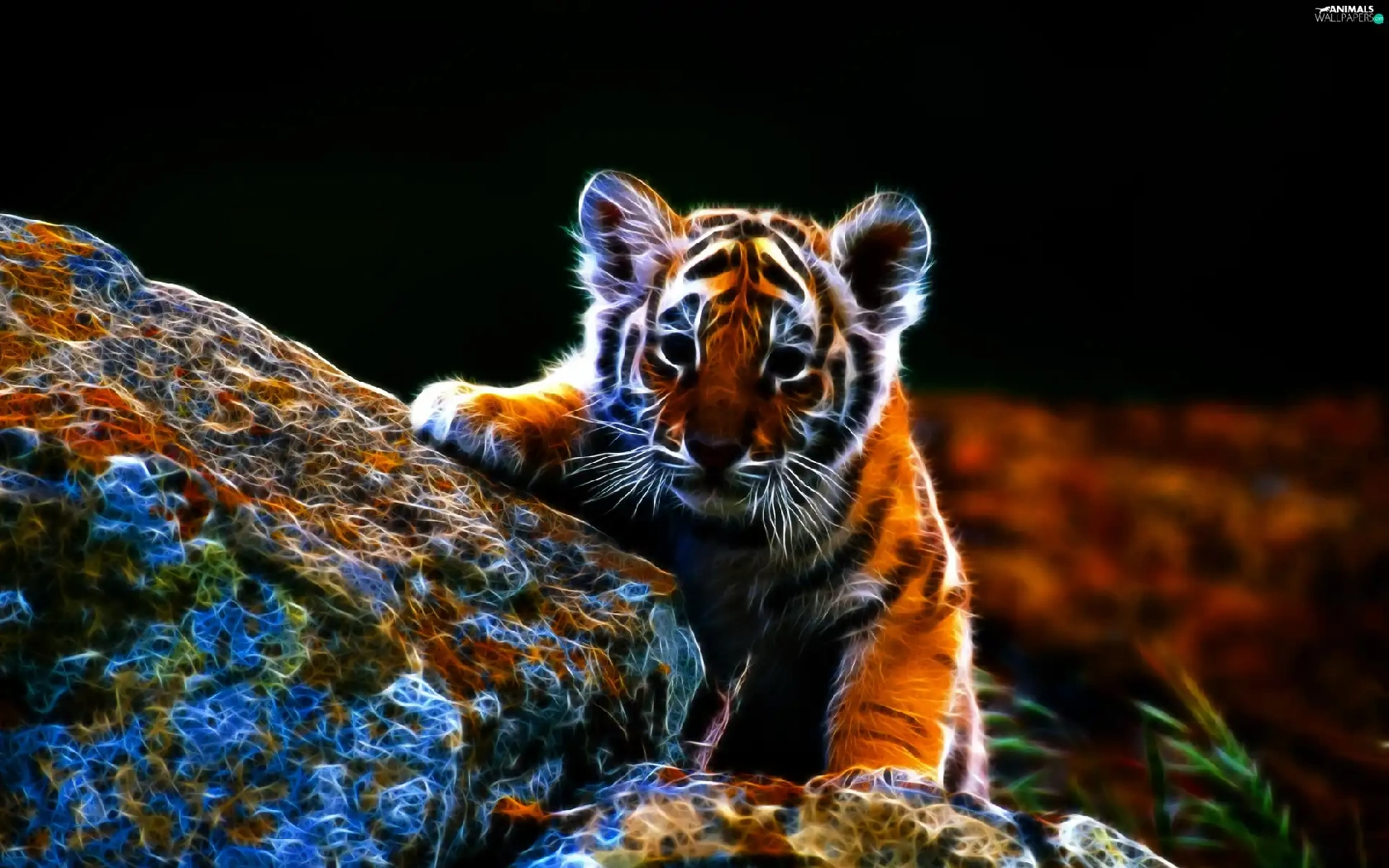 tiger, Leaf, 3D, Stones