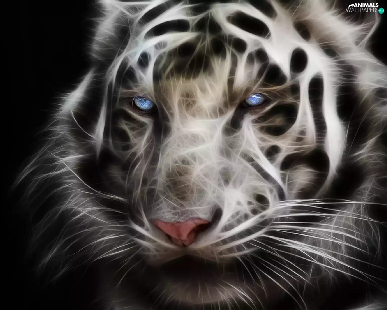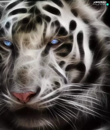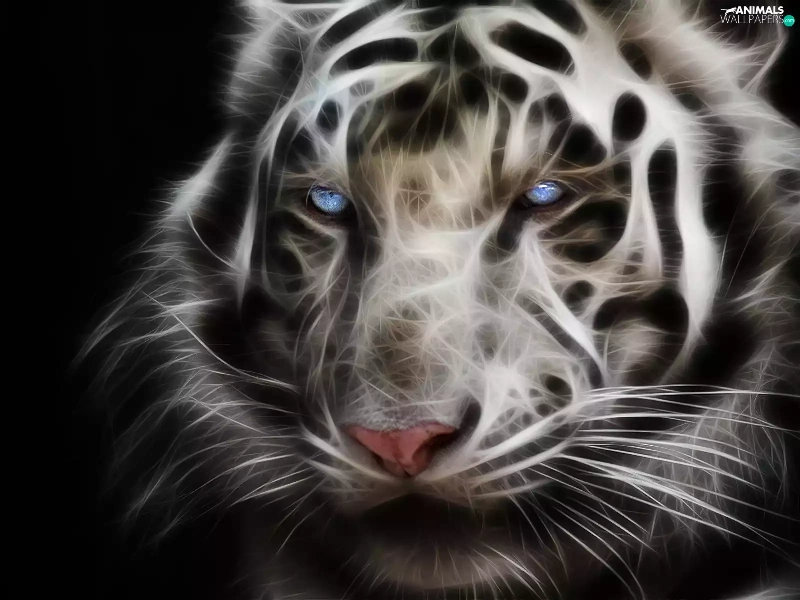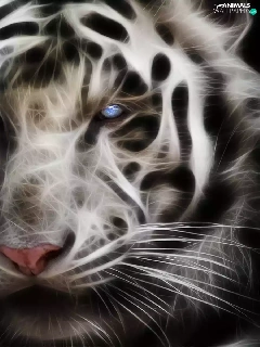 3D, White, tiger