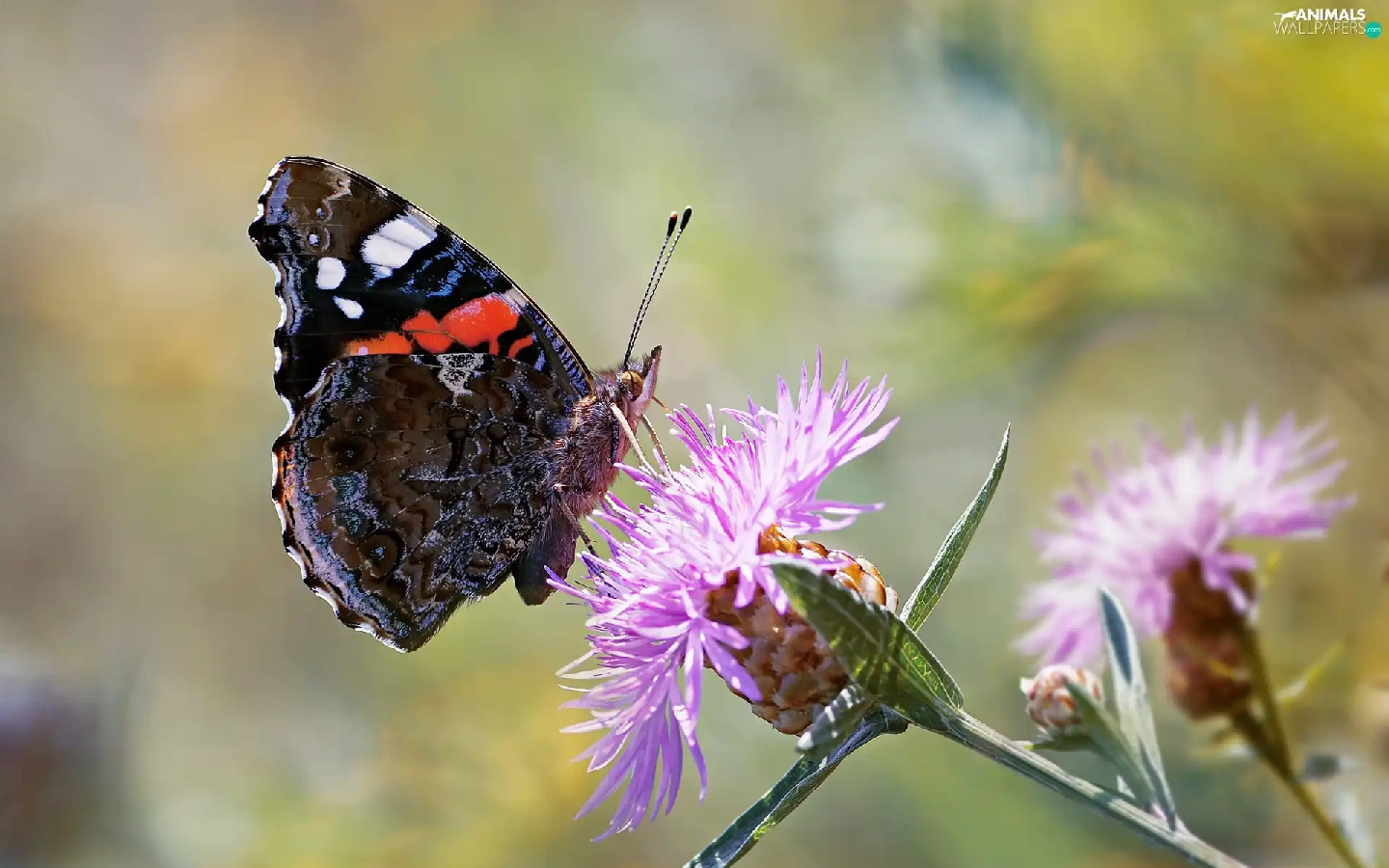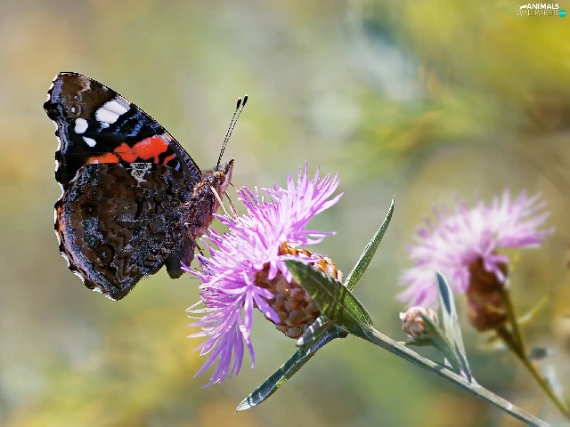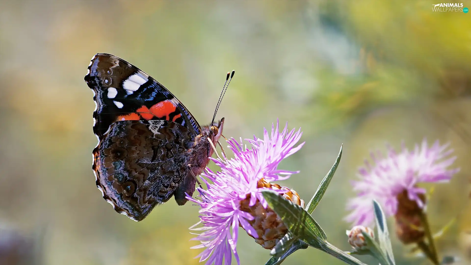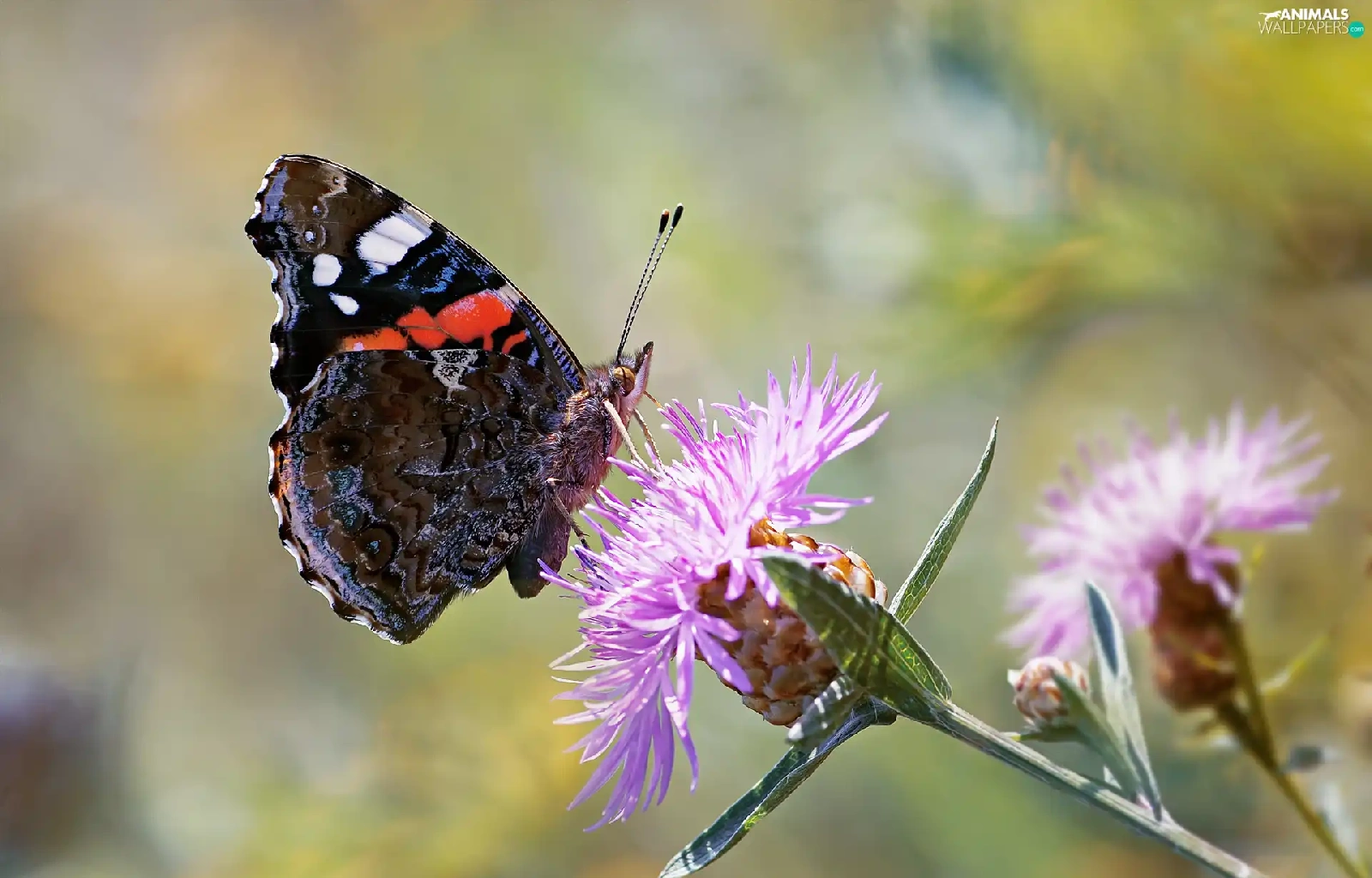 fuzzy, background, Mermaid Admiral, Flowers, butterfly