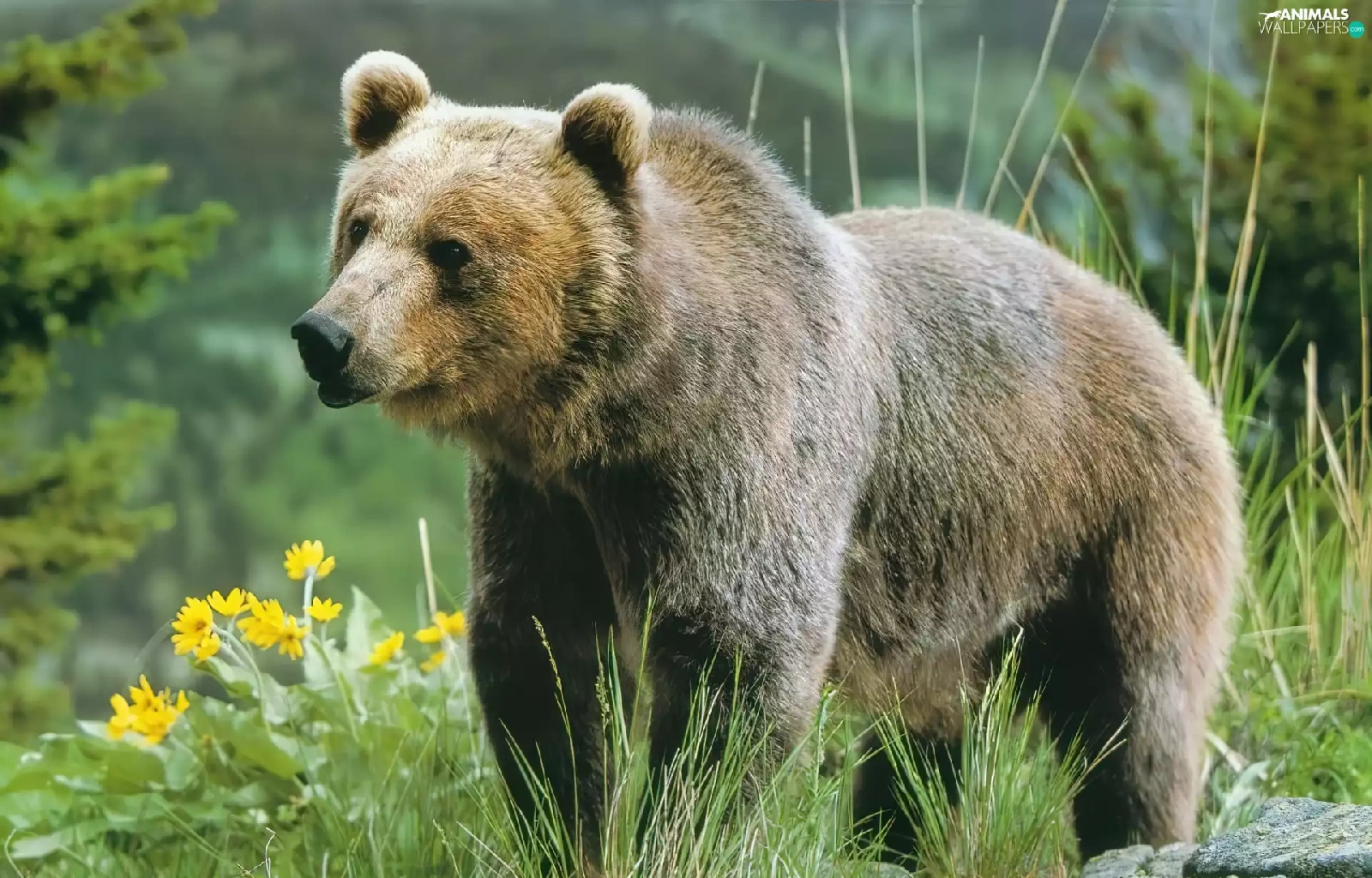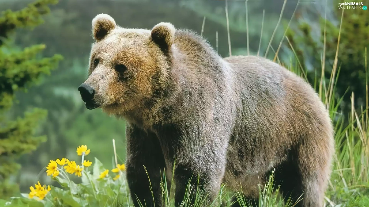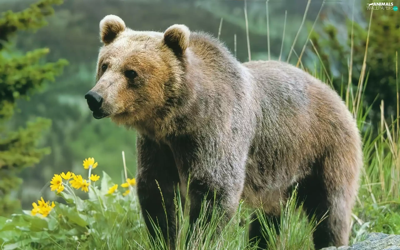 Bear, grizli, Flowers, adult