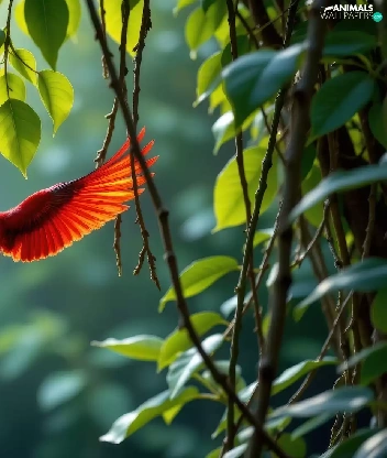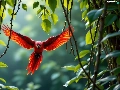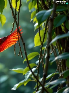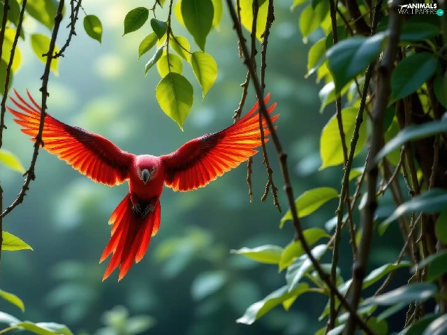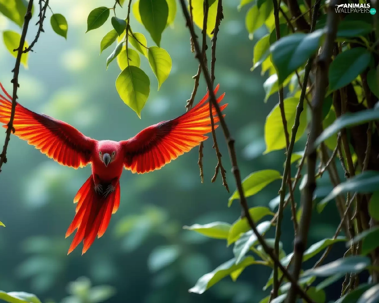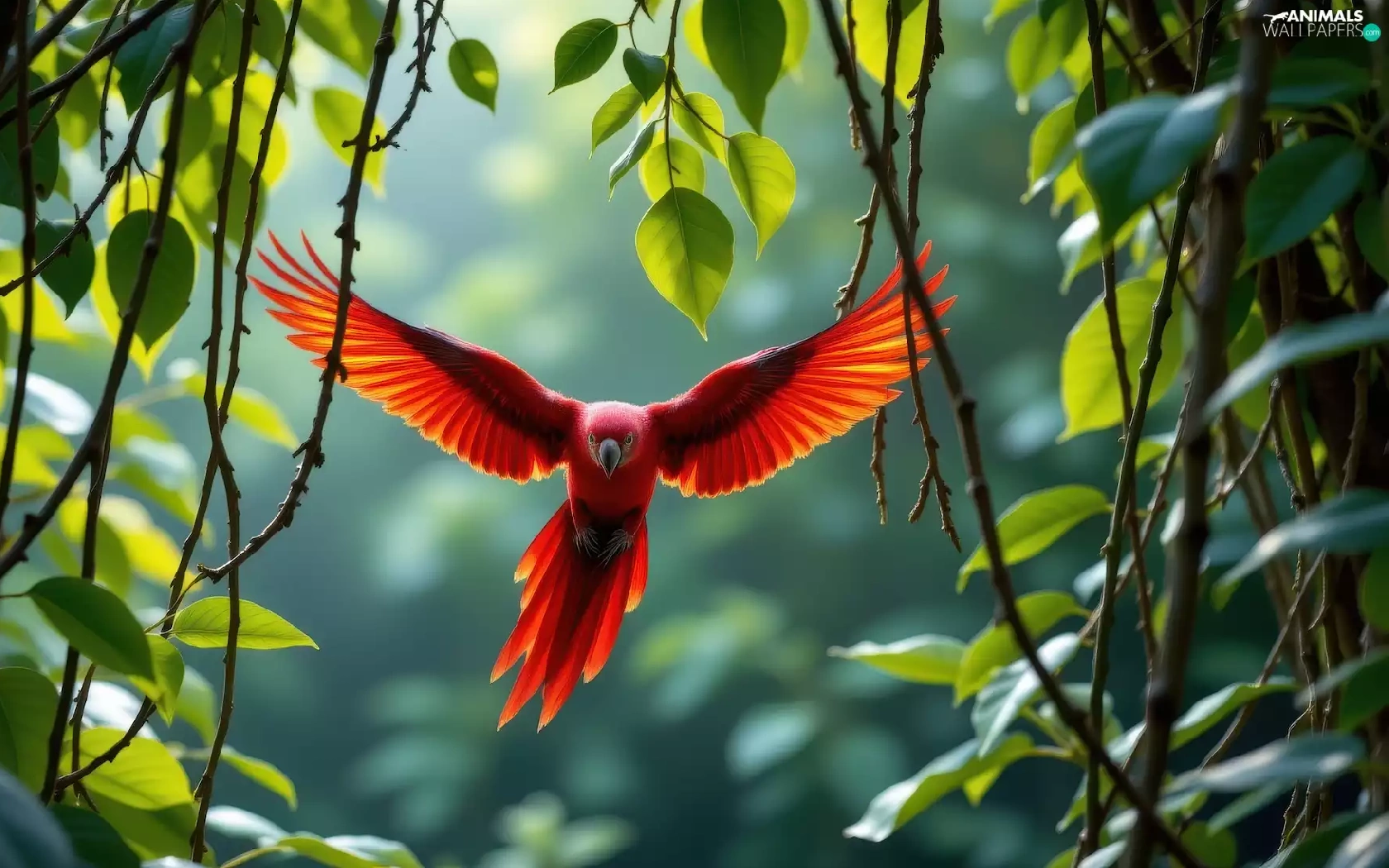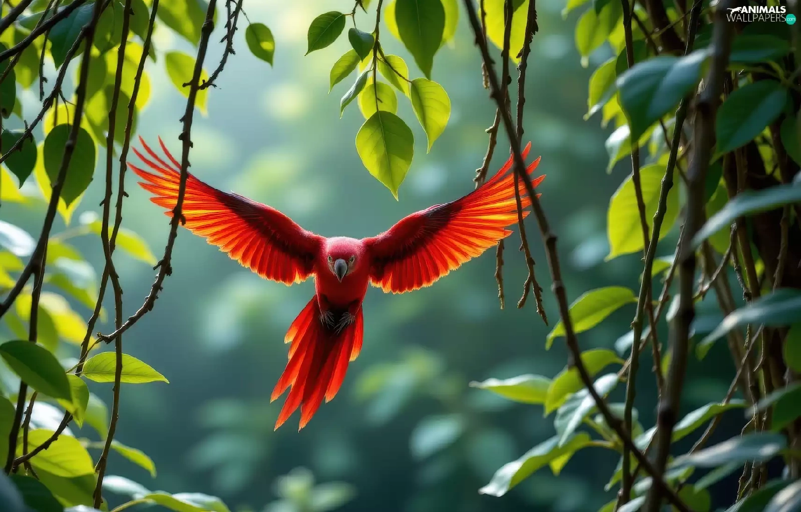 parrot, Bird, Leaf, Ai, lianas, red hot