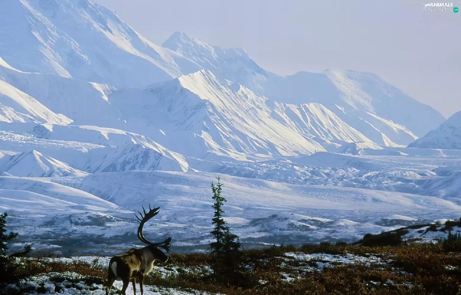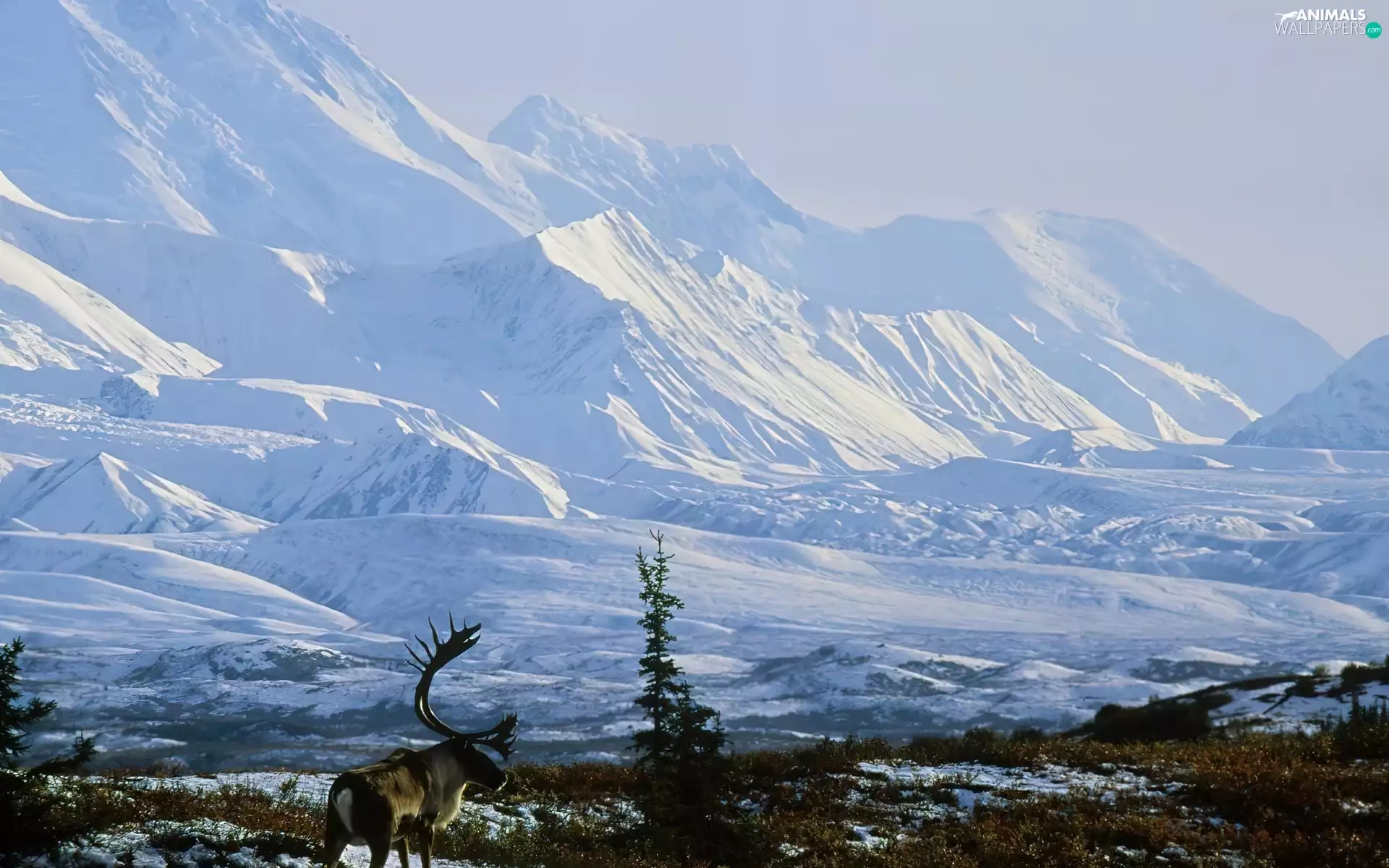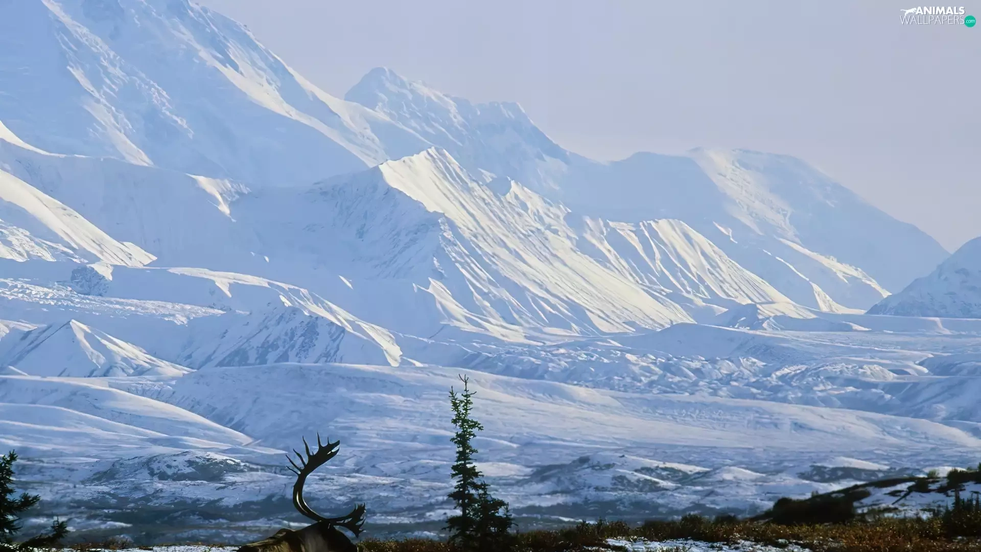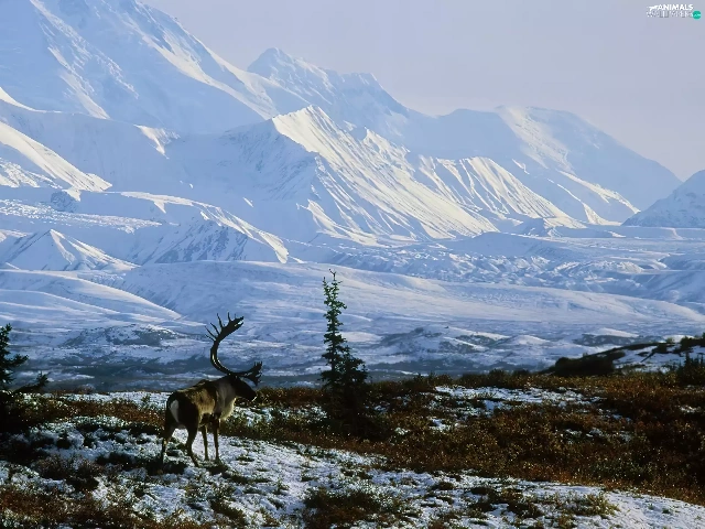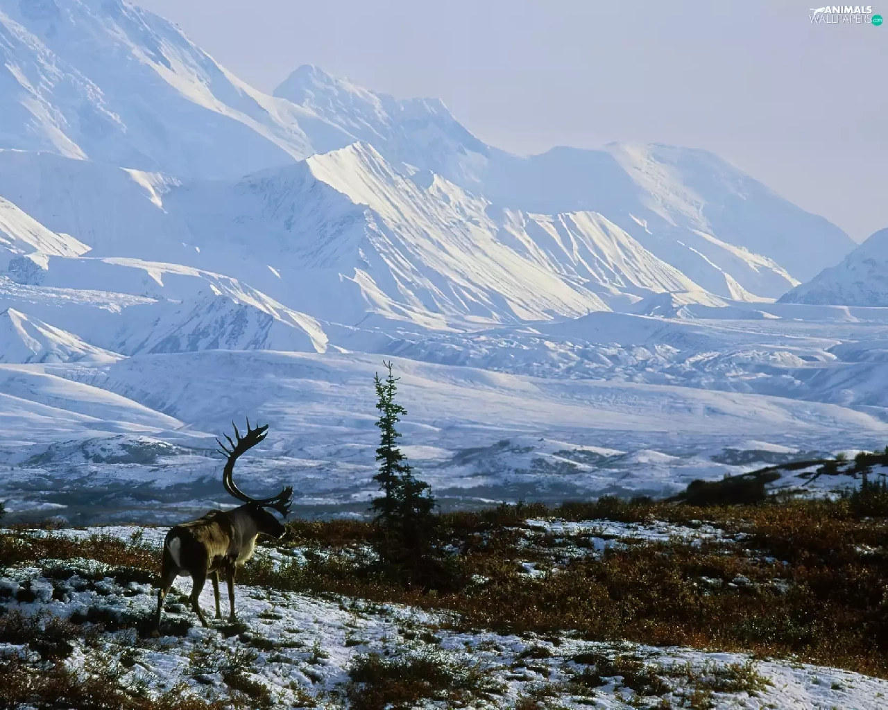 winter, Alaska, Snowy, Mountains, reindeer
