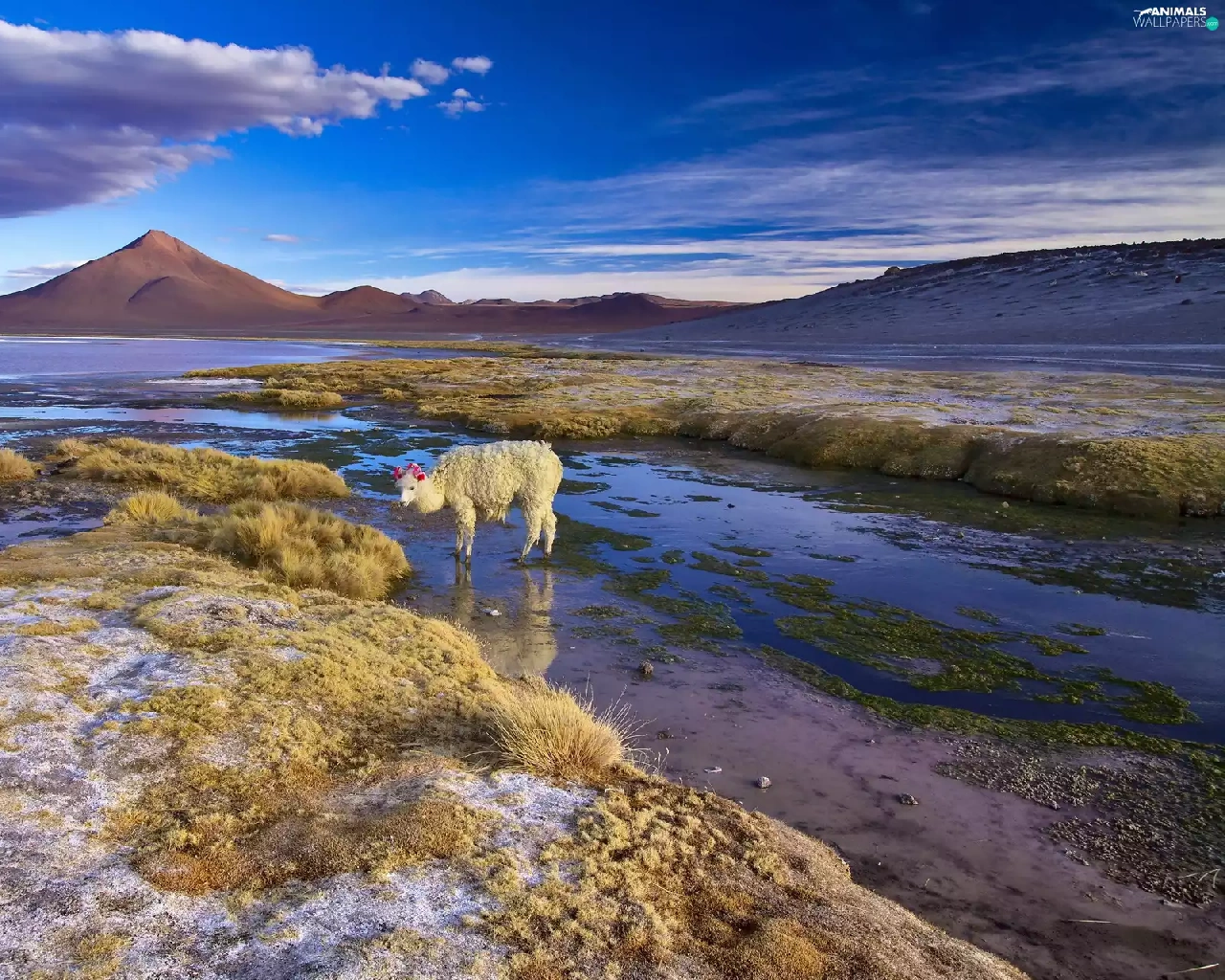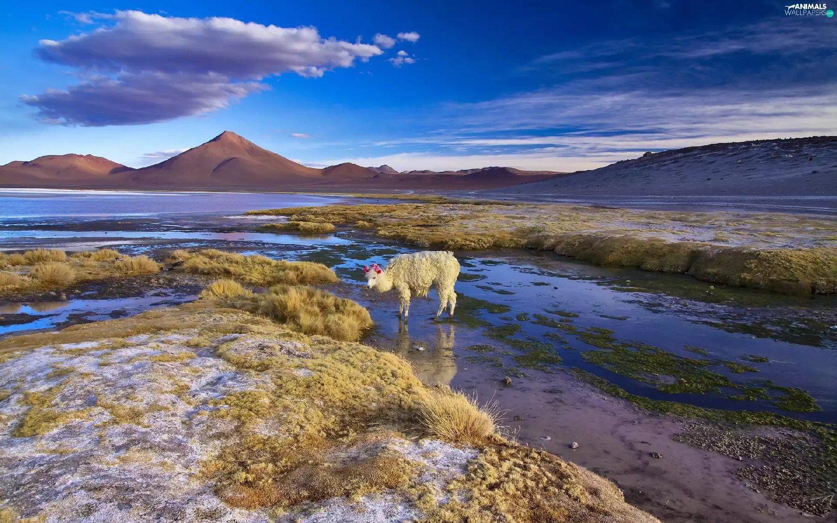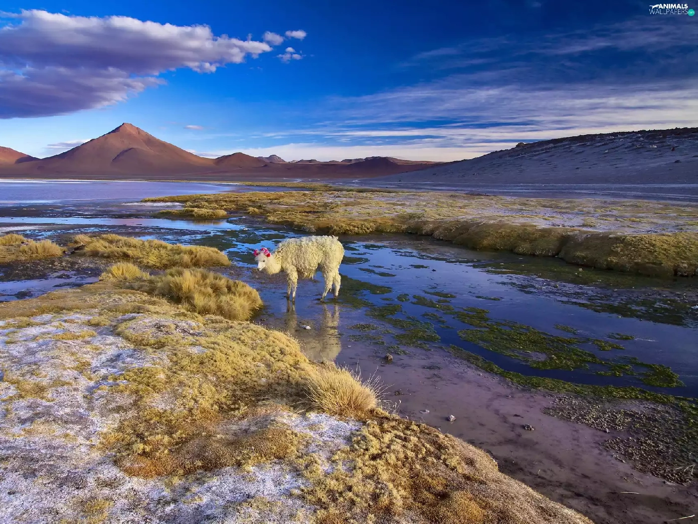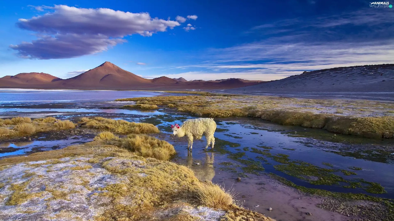 Alpaca, Bolivia, lake