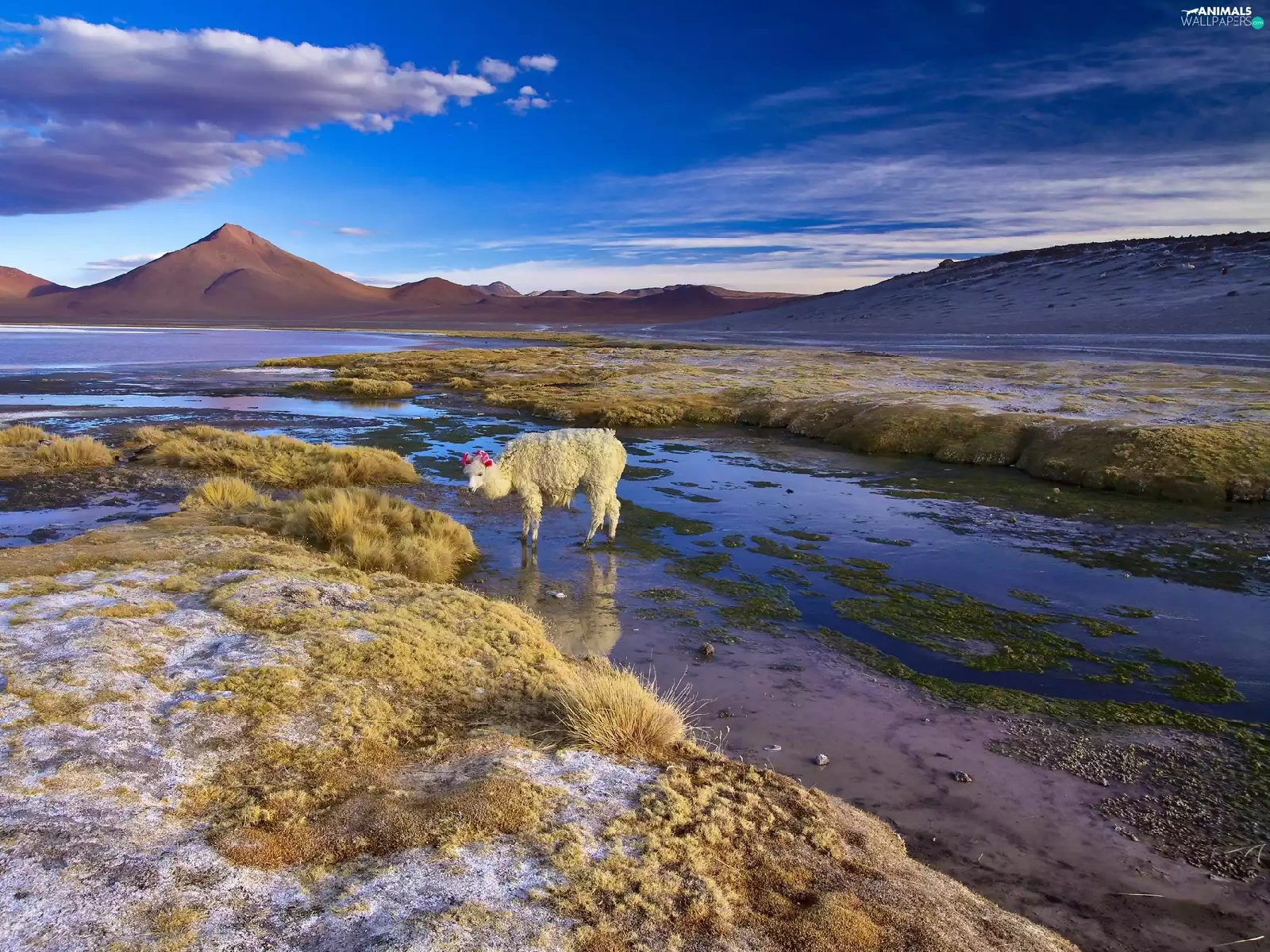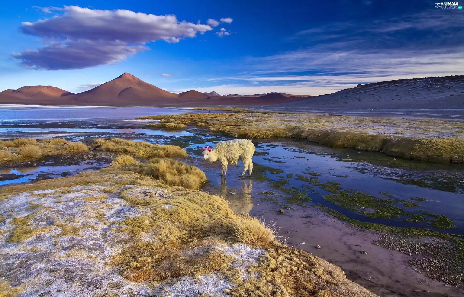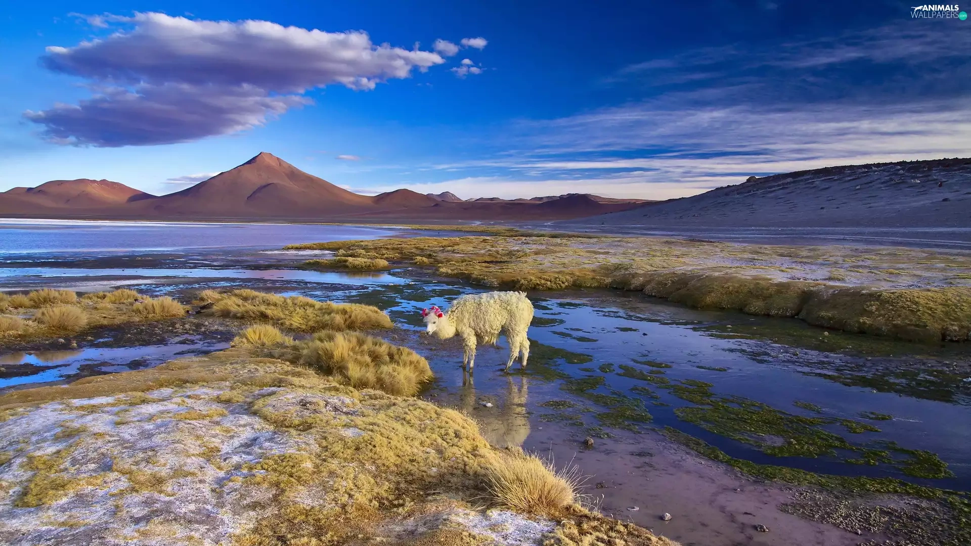 Alpaca, Bolivia, lake
