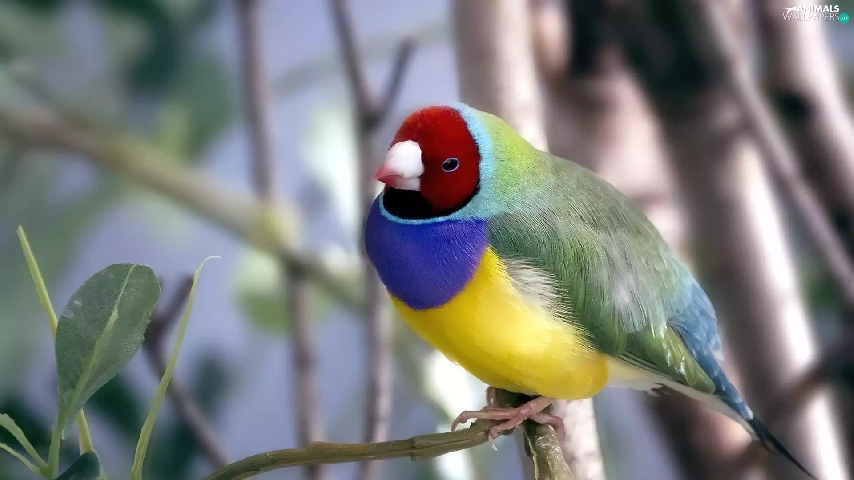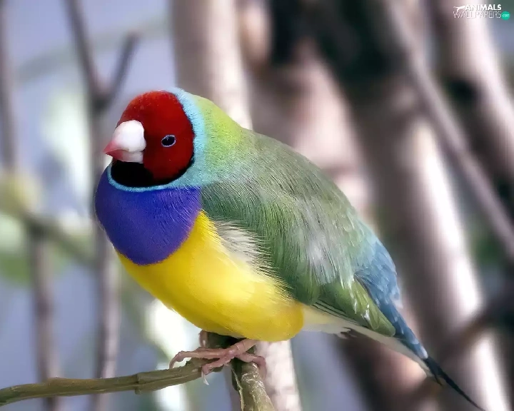 Bird, Poephila, branch, Amadyniec