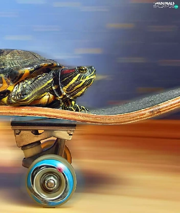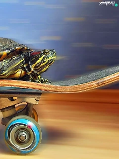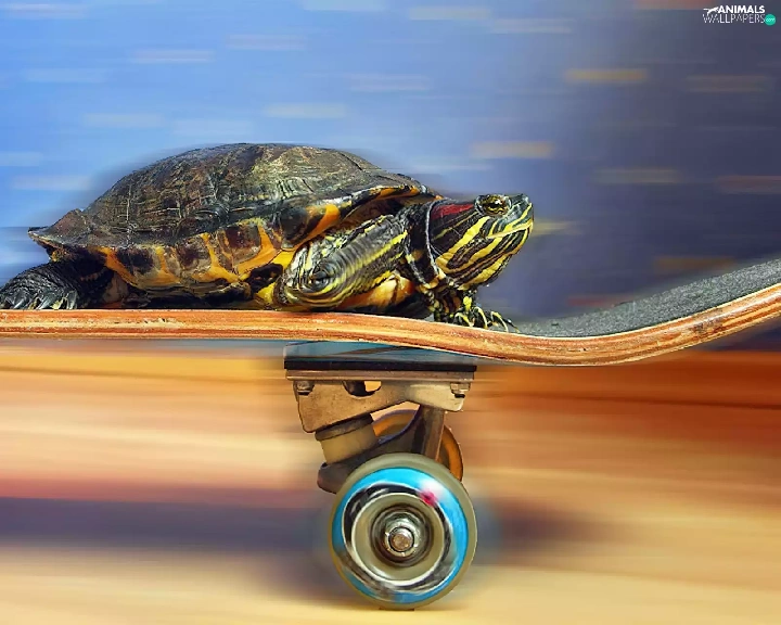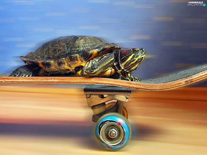 turtle, skateboard, speed, an