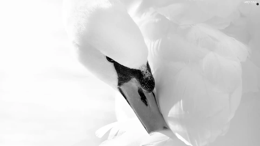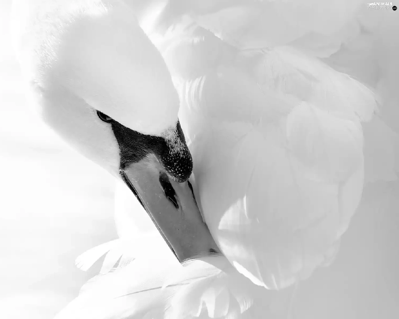 Swans, feather, Black and white, nose