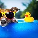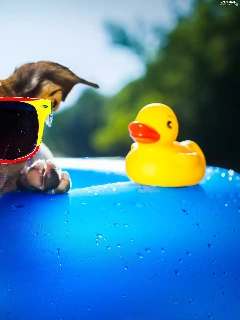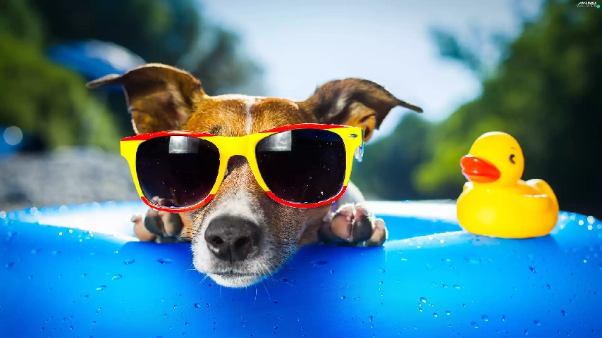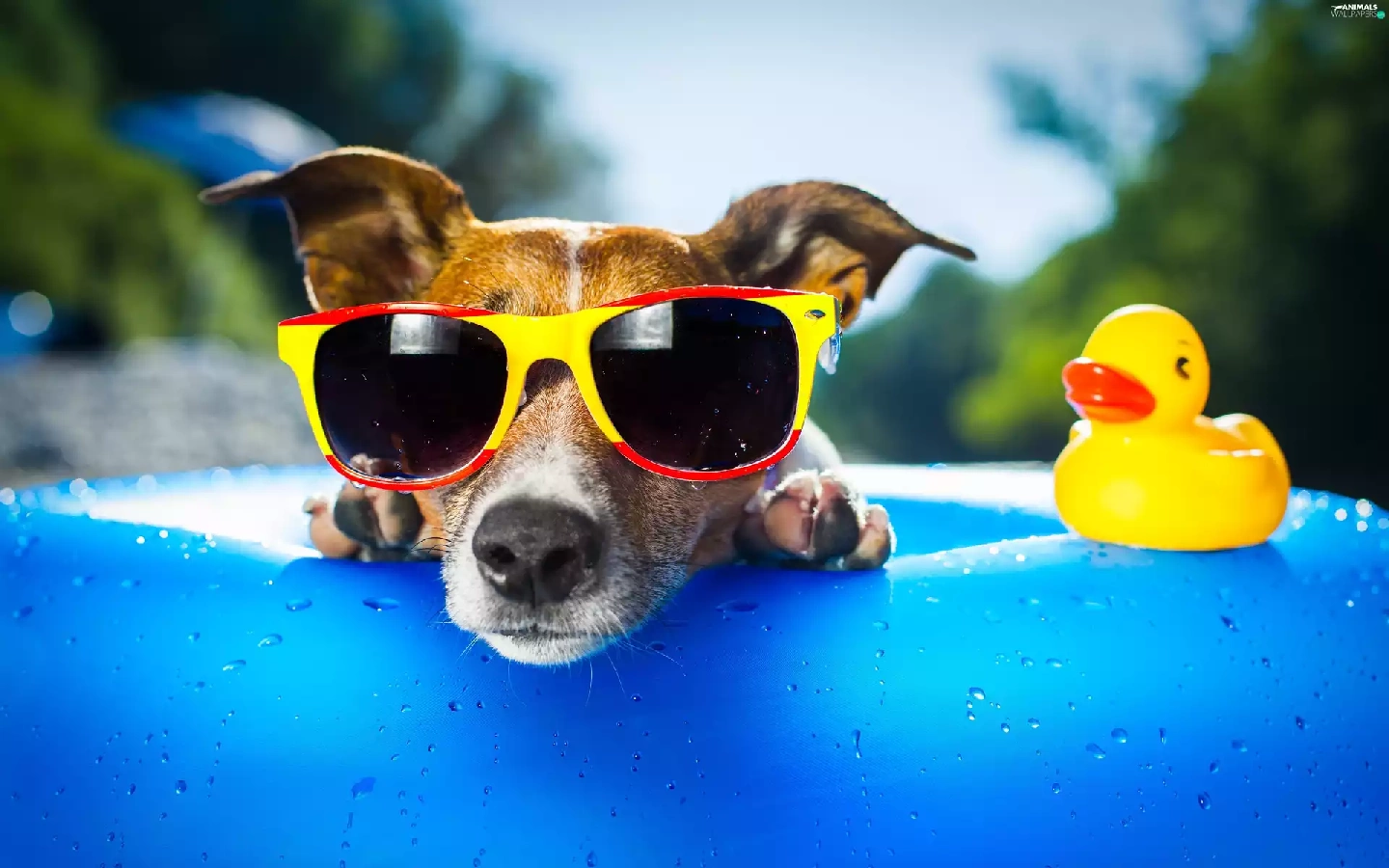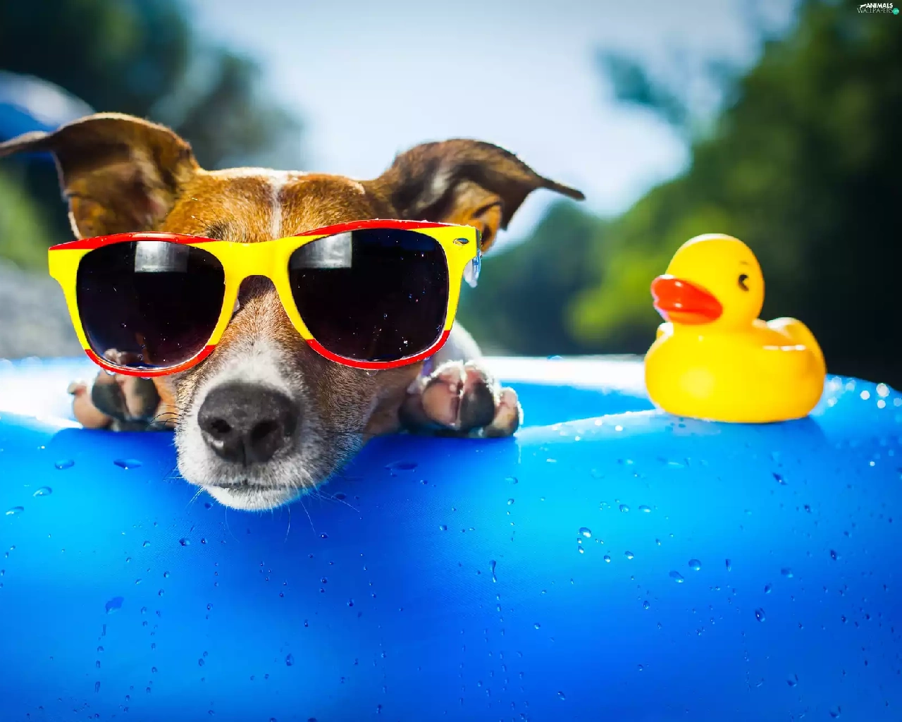 Rubber Swimming-pool and Duck, dog, Glasses