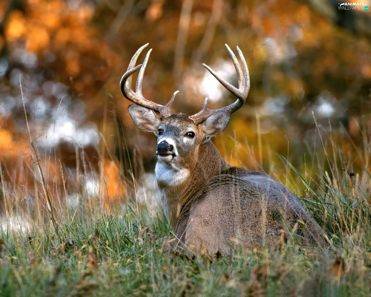 antlers, deer, grass