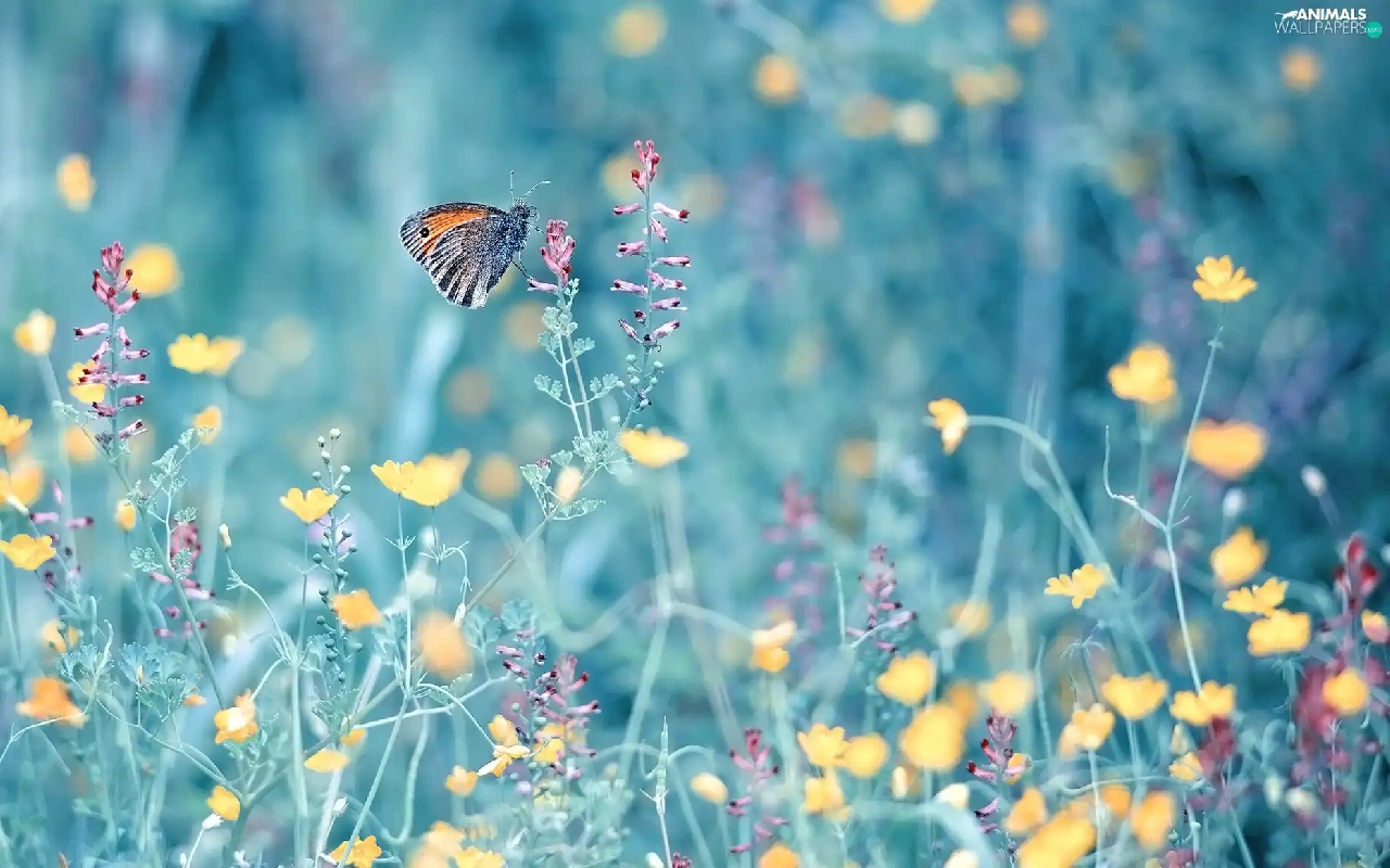 Flowers, Aphantopus Hyperantus, blur, butterfly