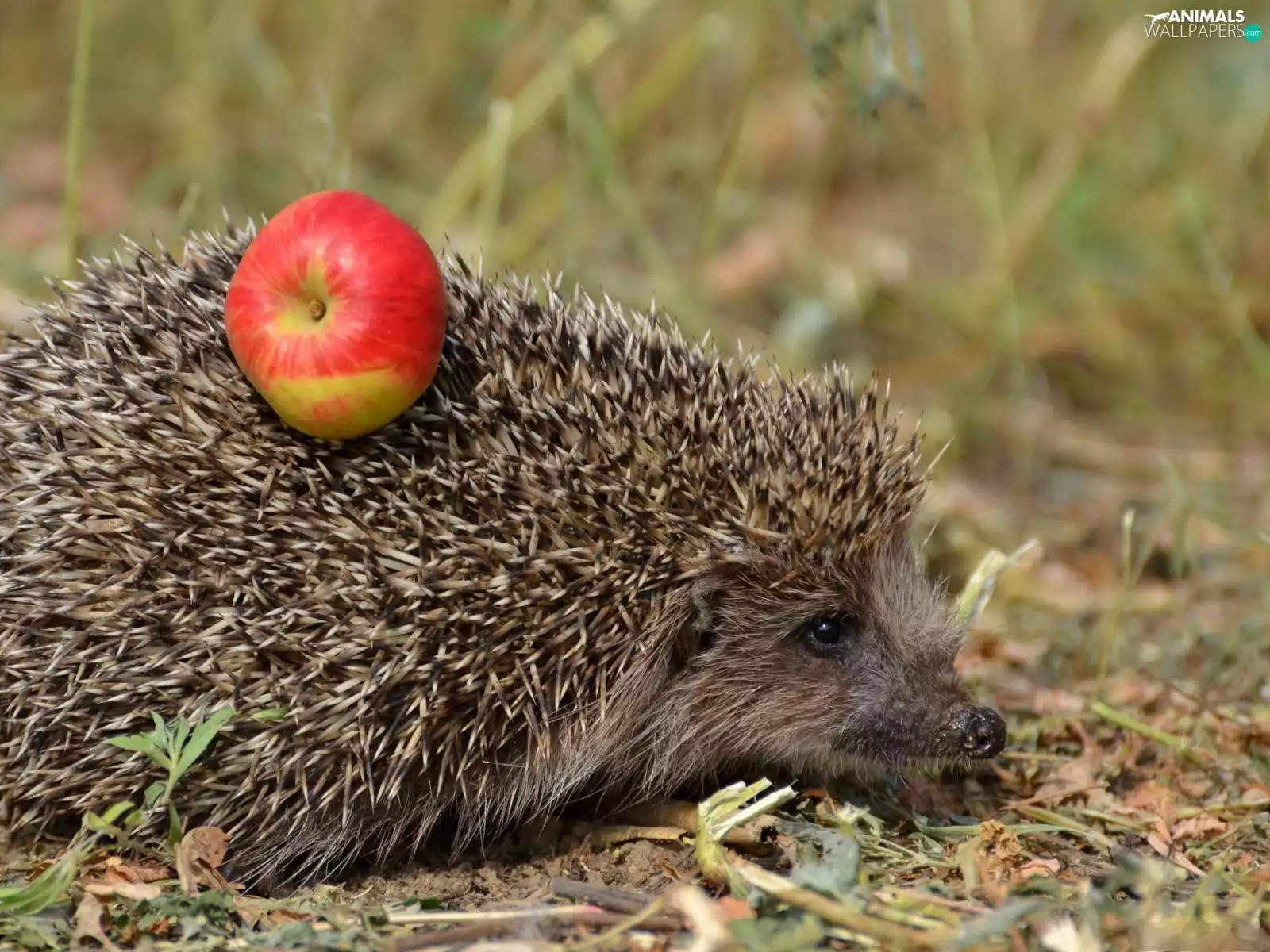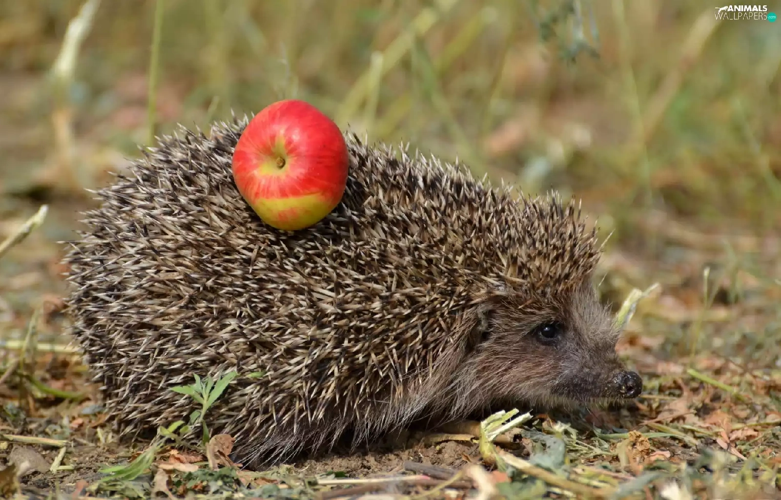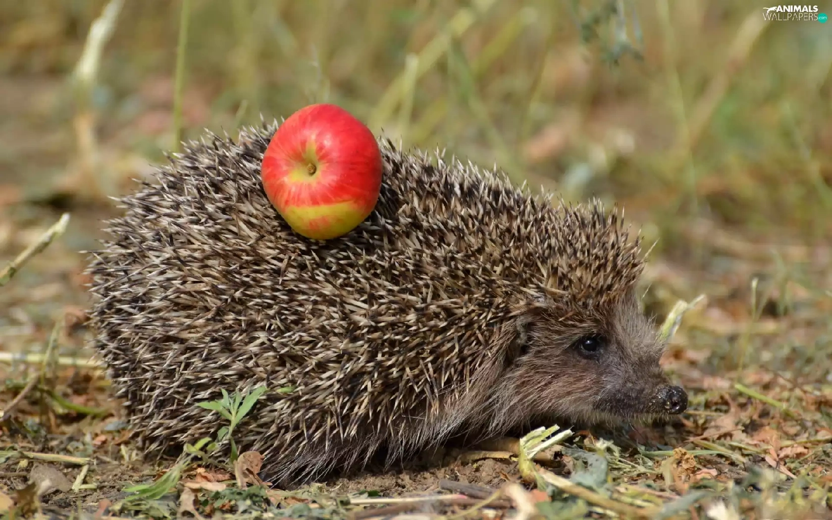 hedgehog, dry, grass, Apple