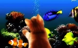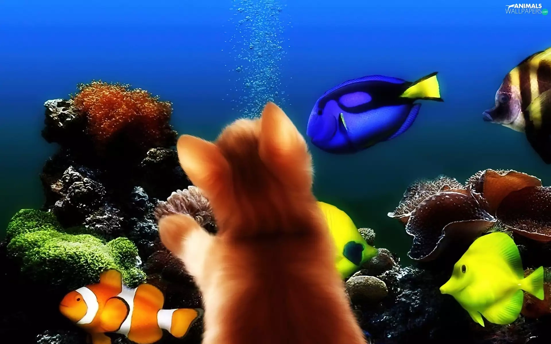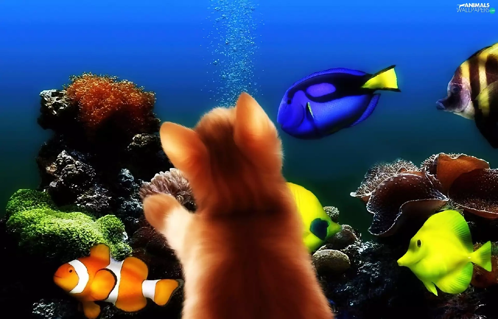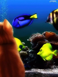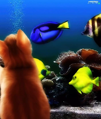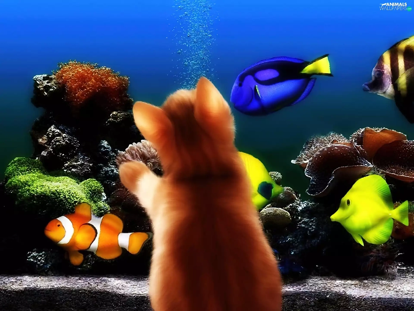 aquarium, kitten, fishes