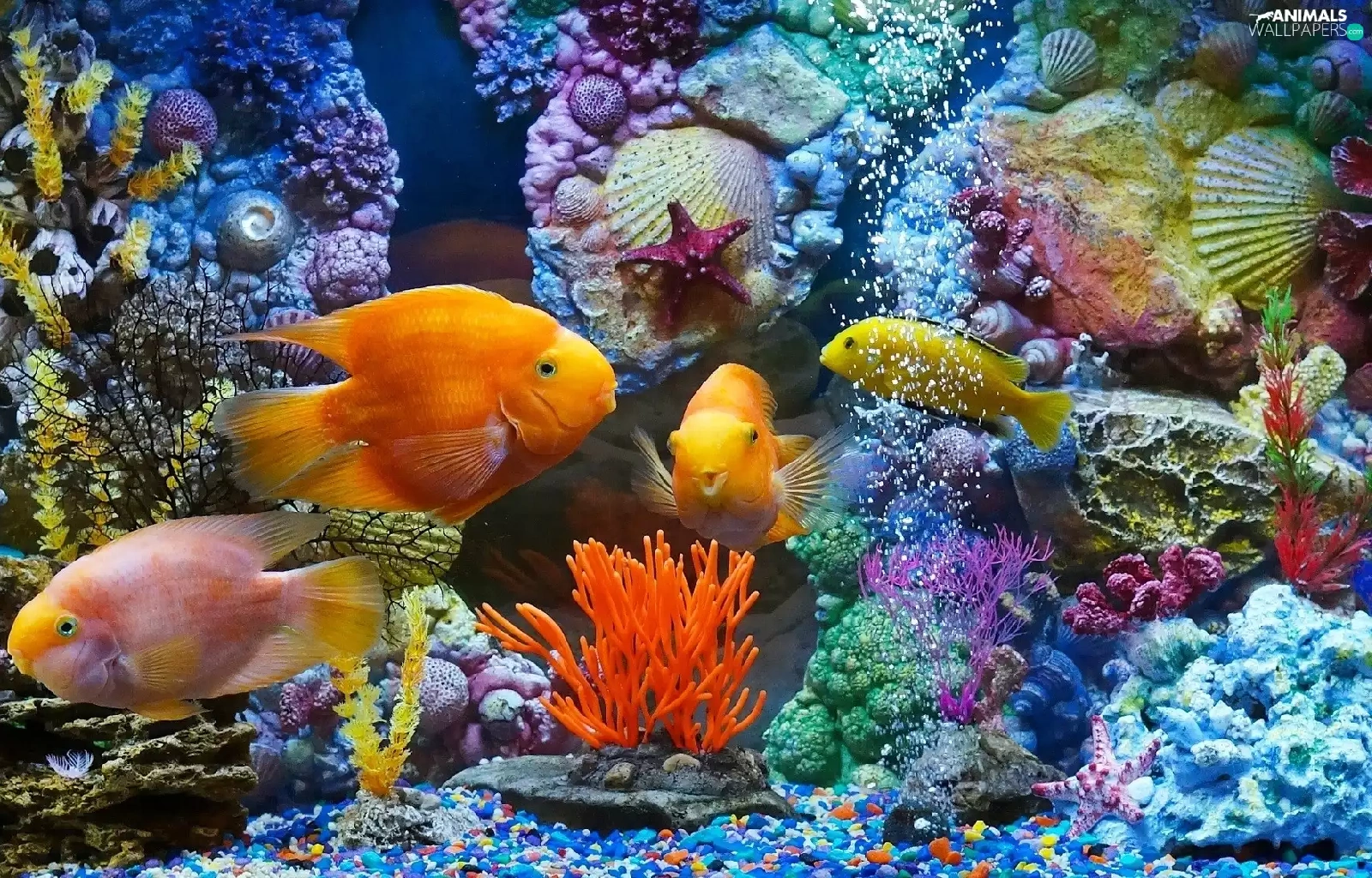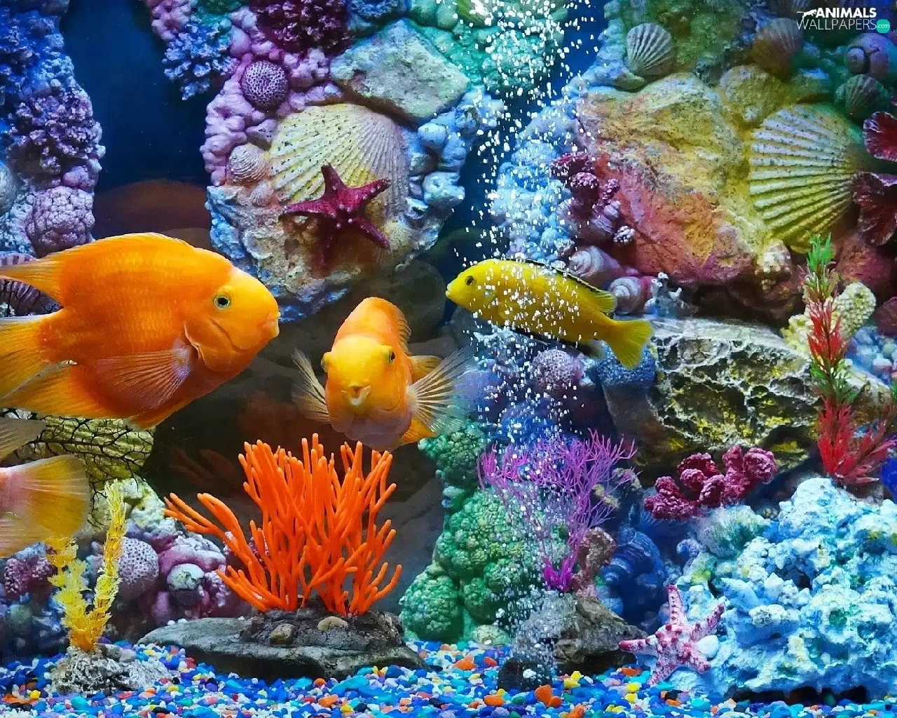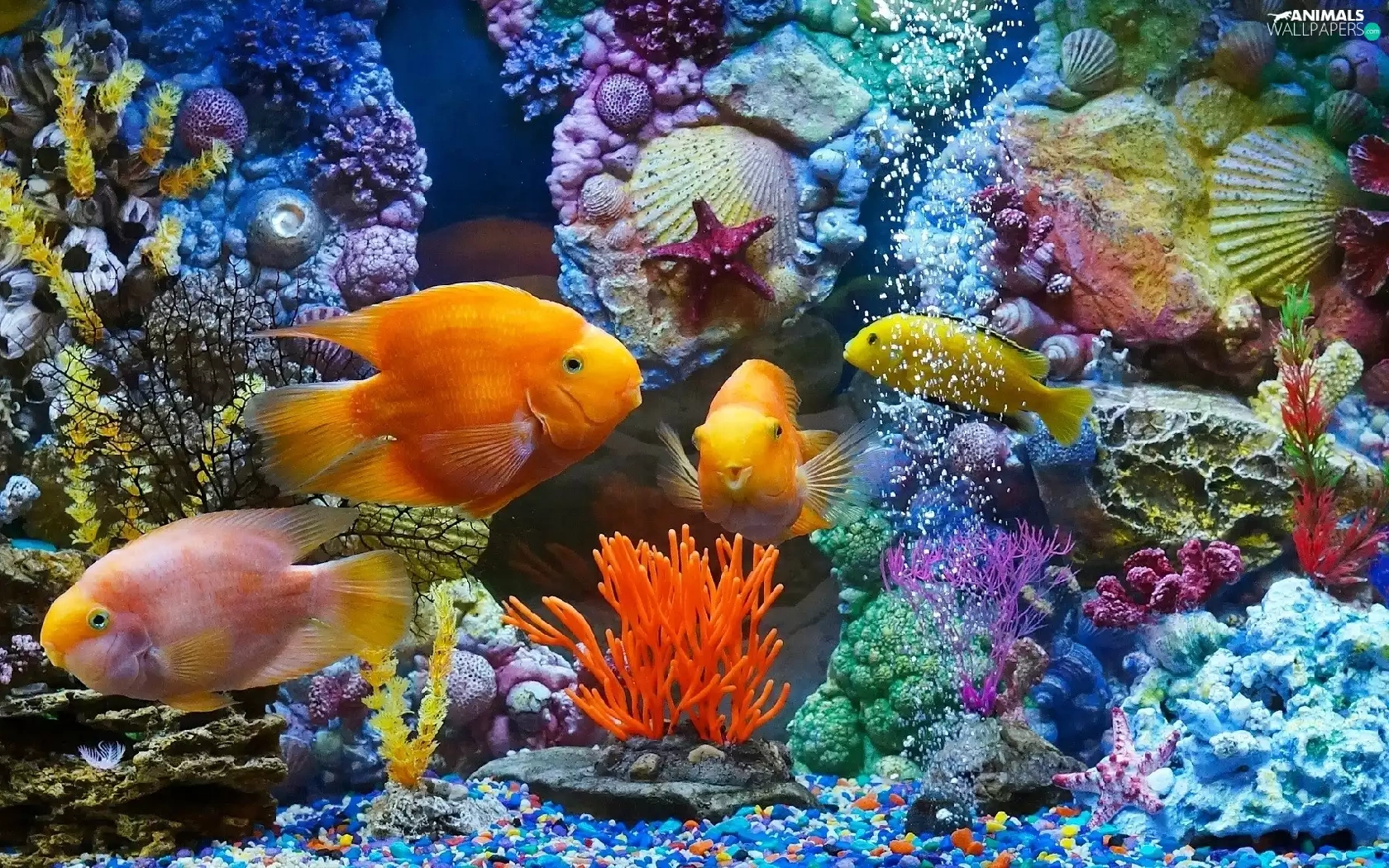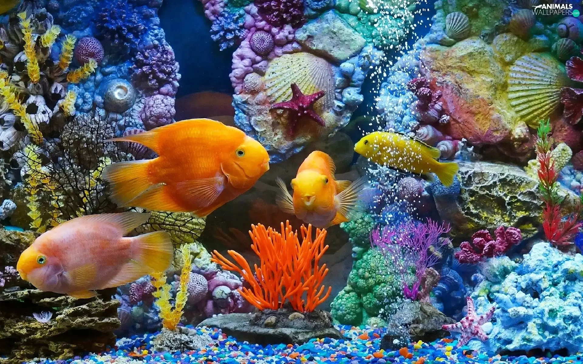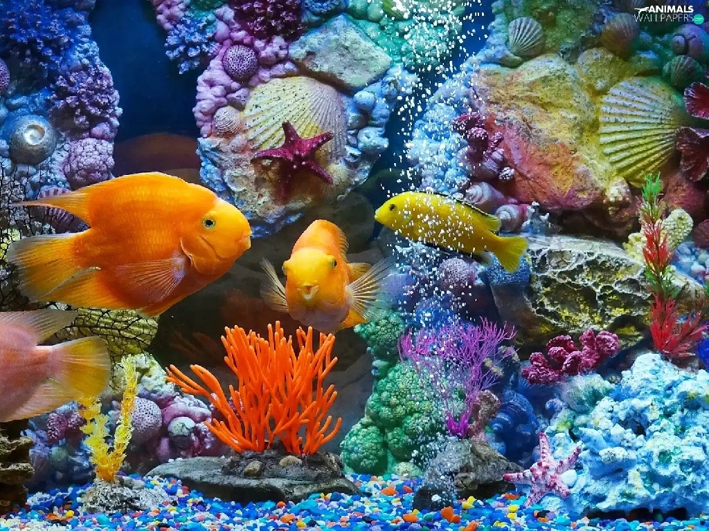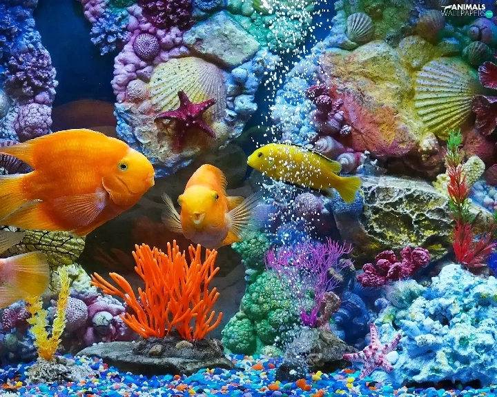 fish, immersed, Shells, aquarium, Plants, world