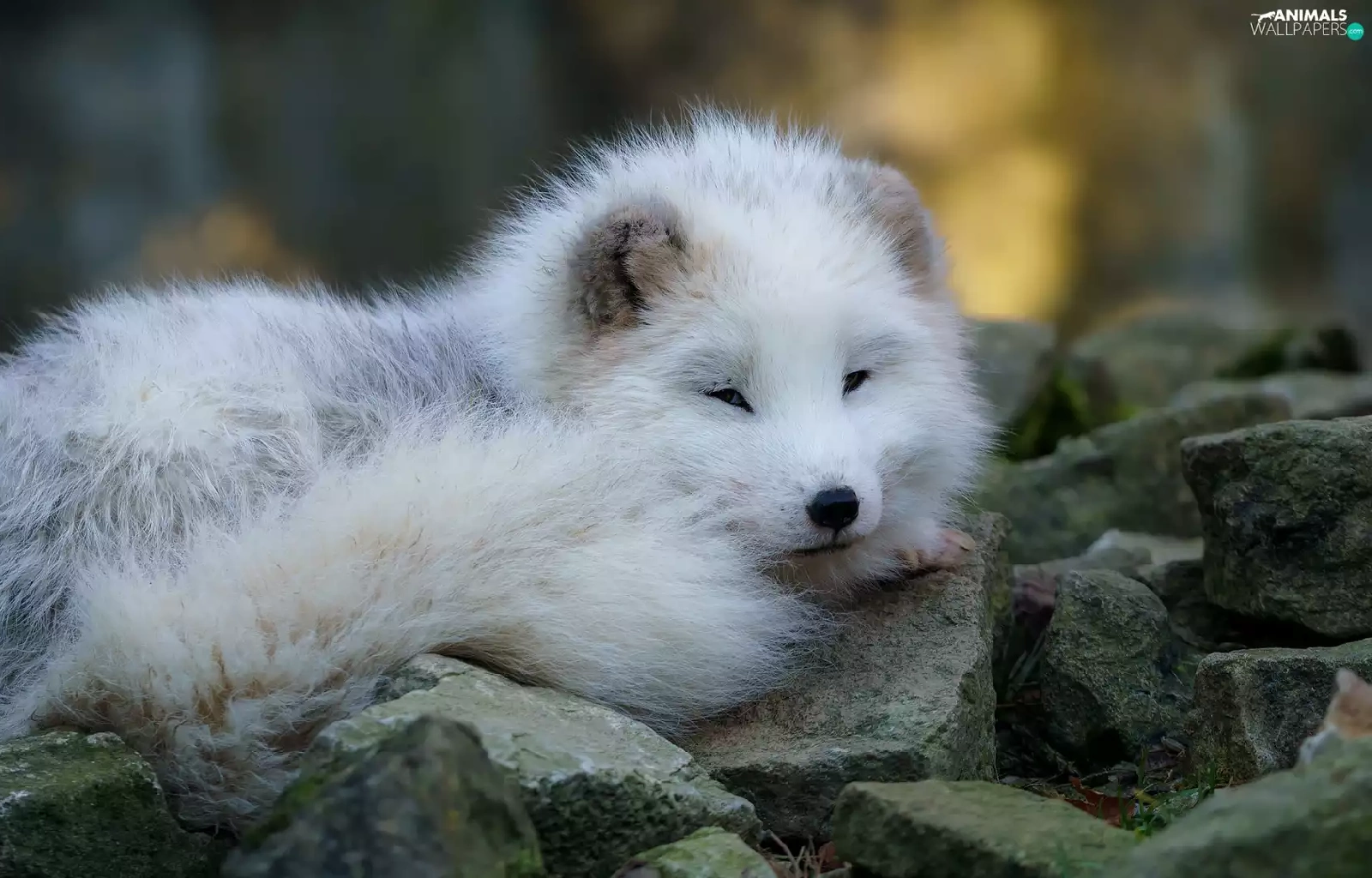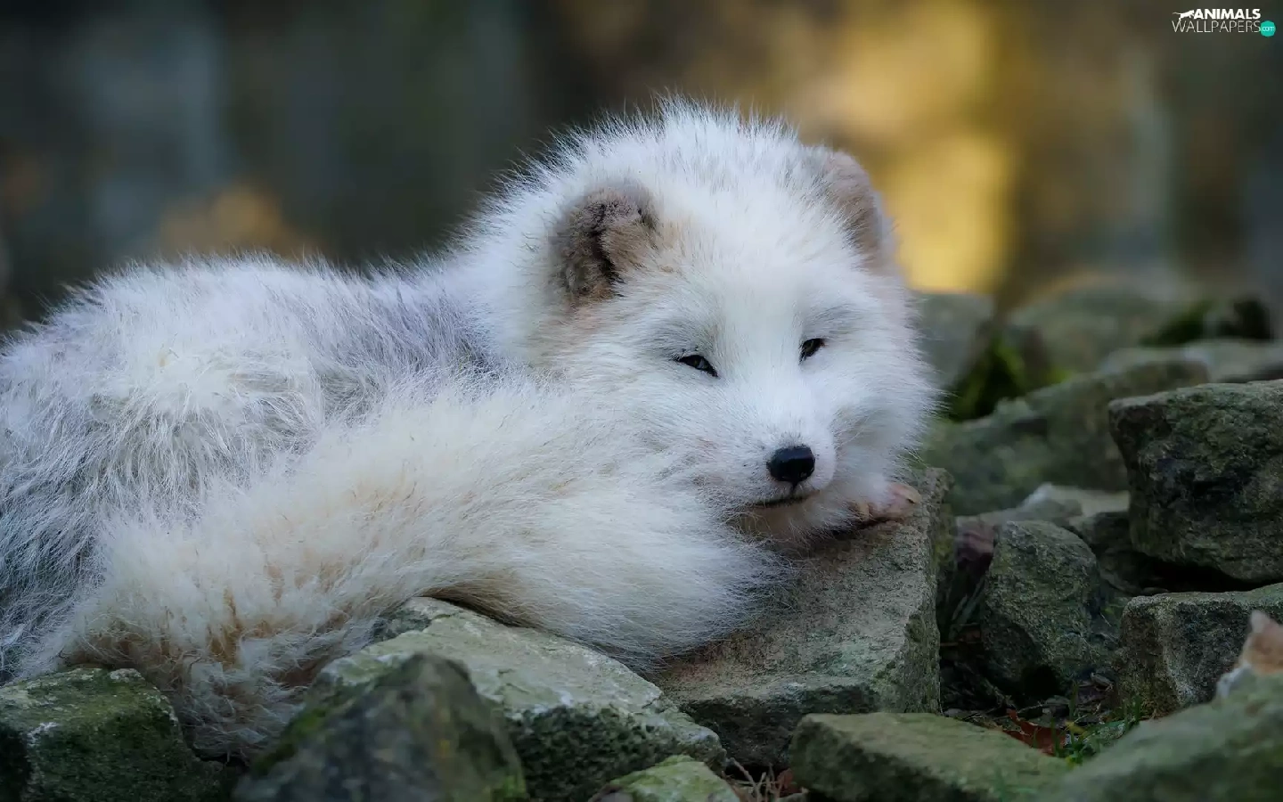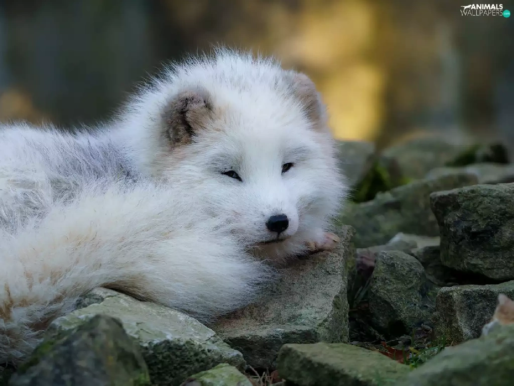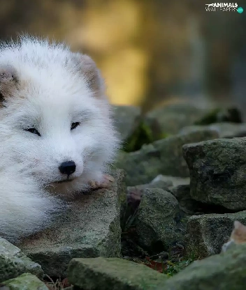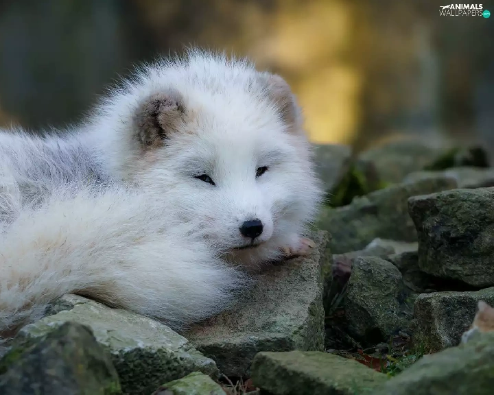 young, Arctic Fox, Stones, White