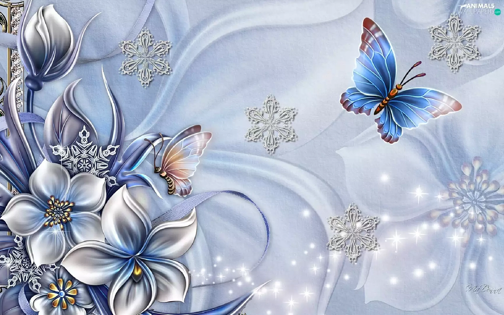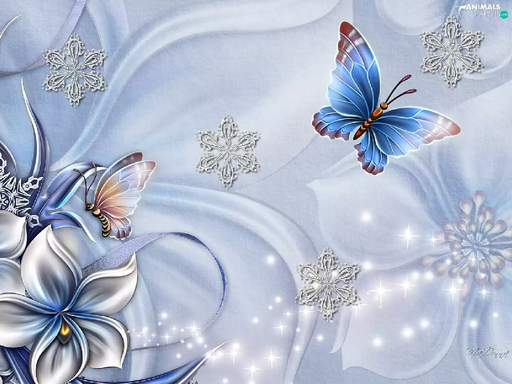 Art, Flowers, butterflies