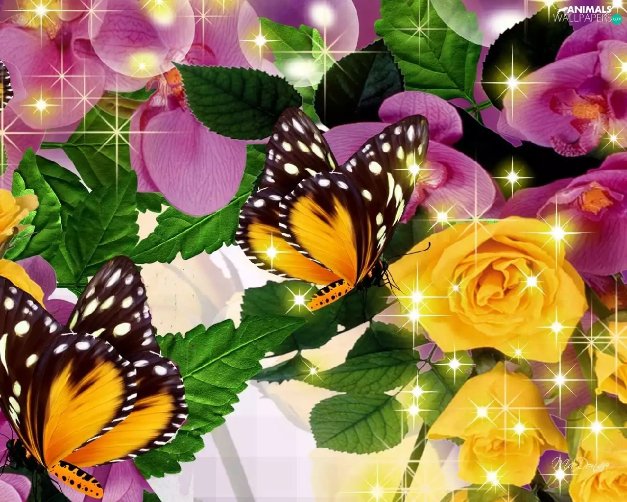 Art, roses, butterflies