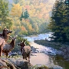 Stones, Deer, forest, Art Image, River, herd