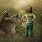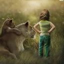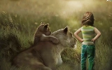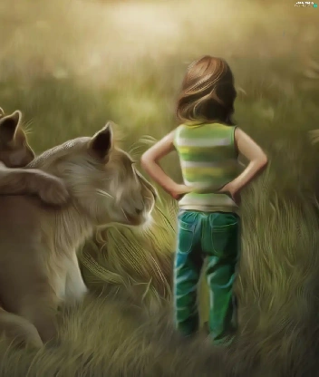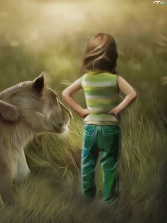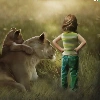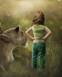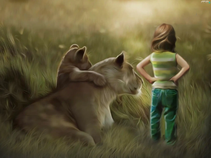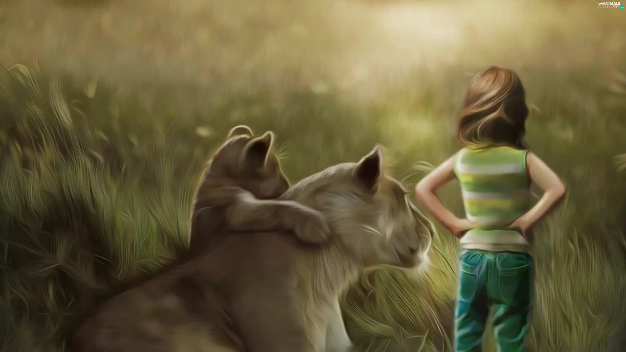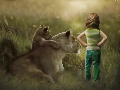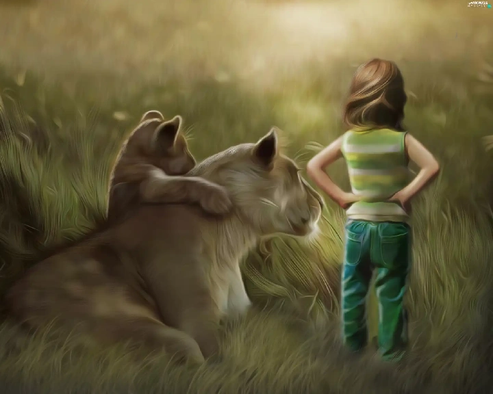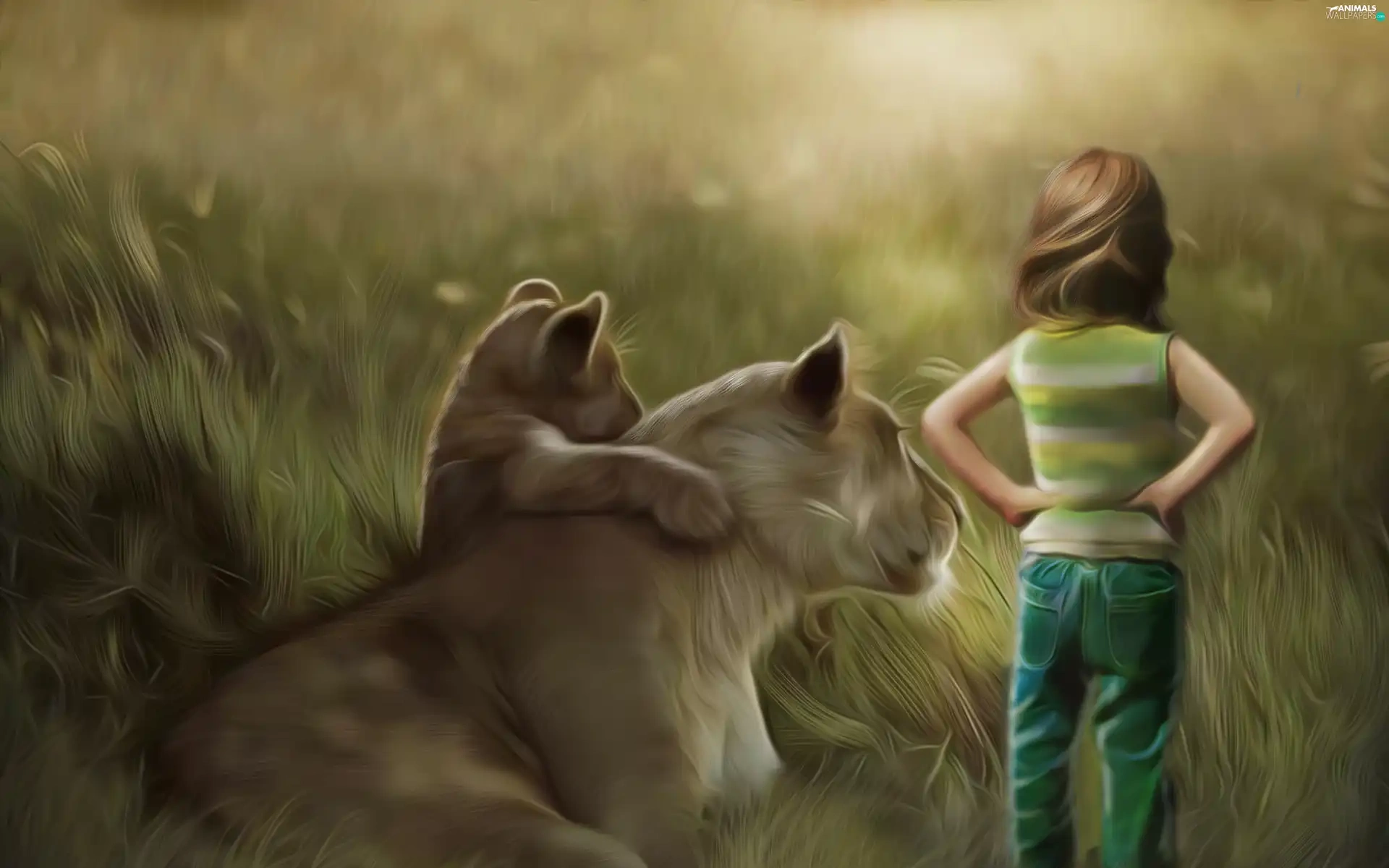 girl, little doggies, Art, Lioness