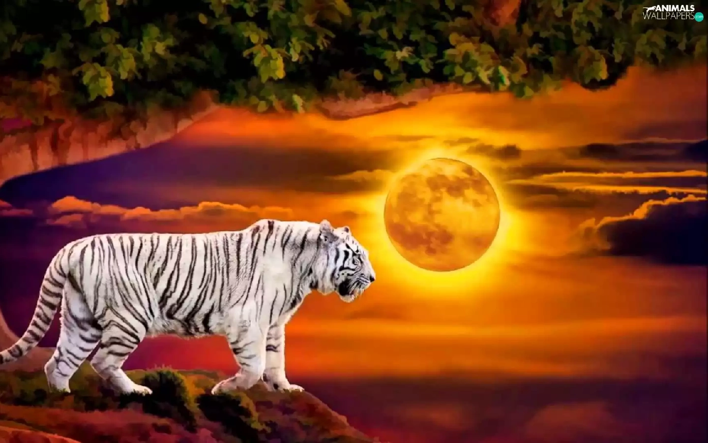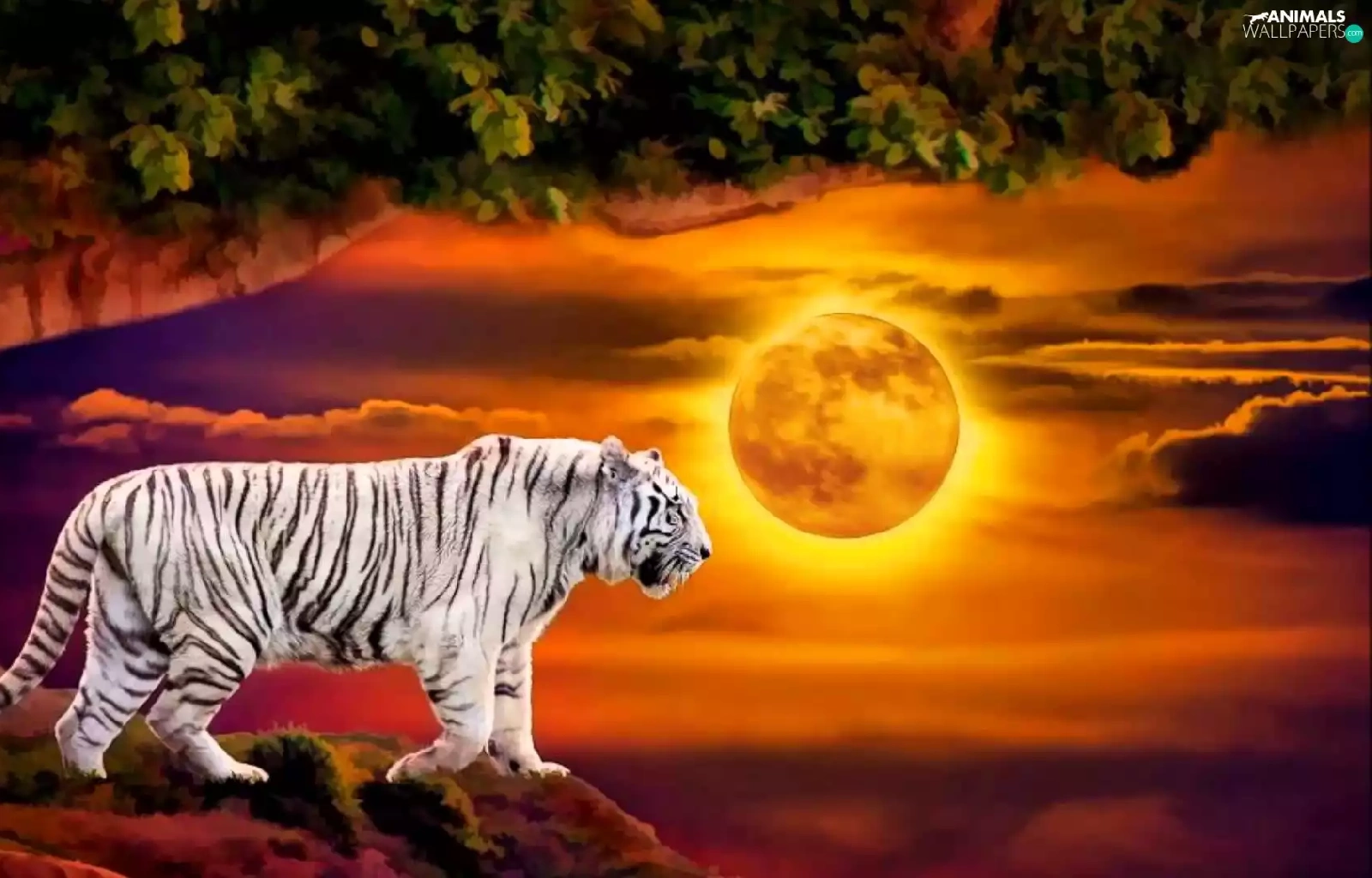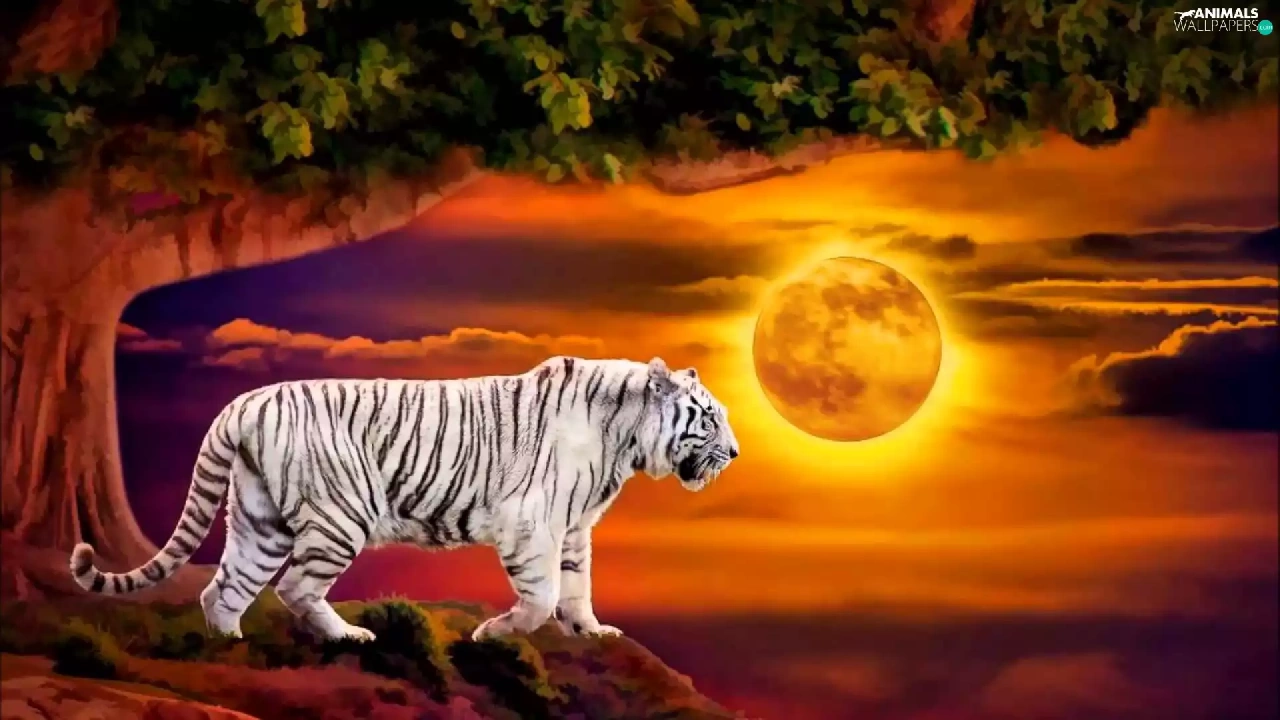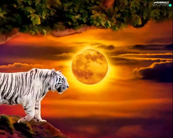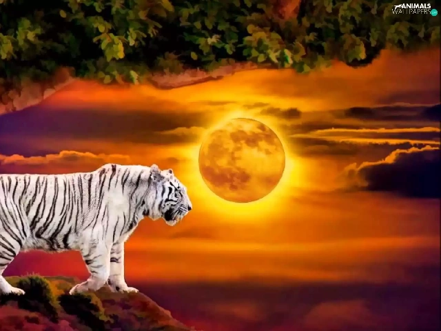 White, west, trees, Art, tiger, sun
