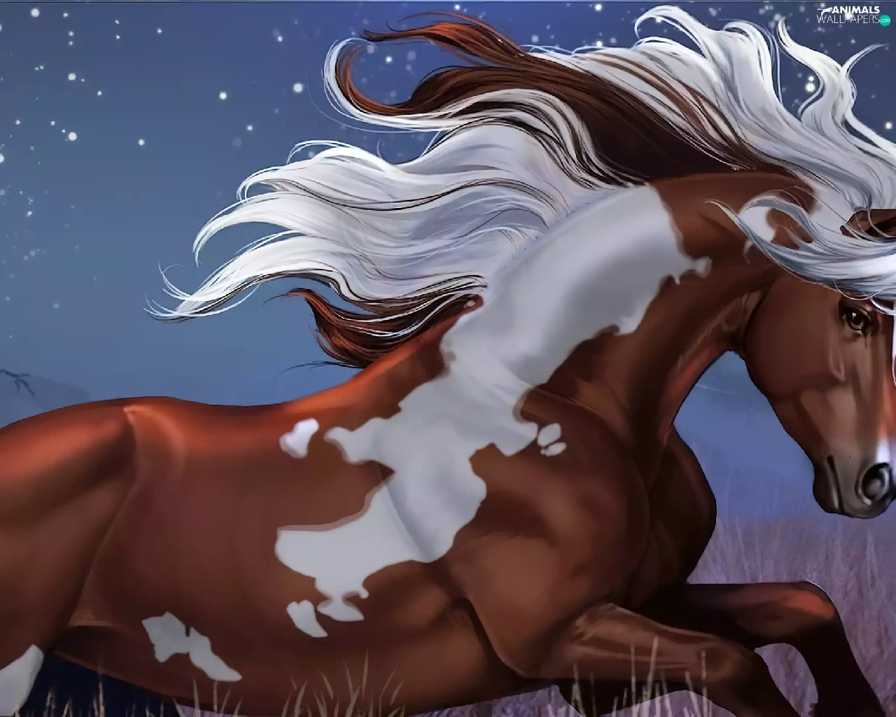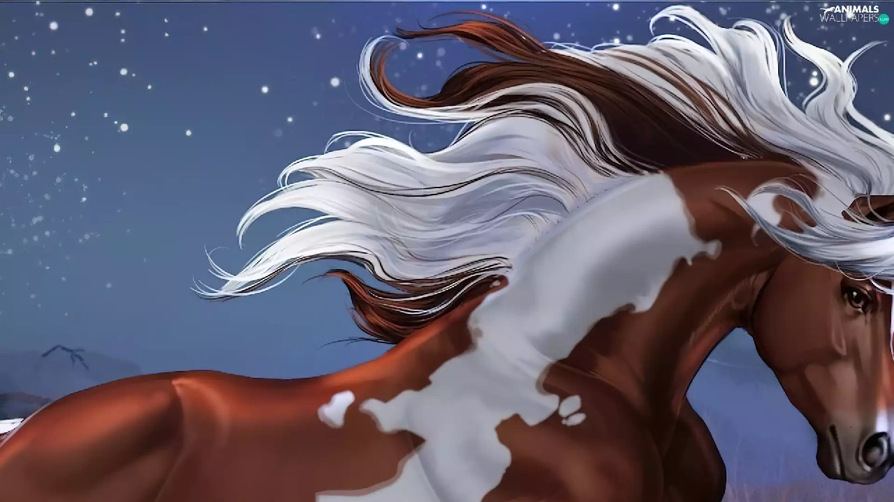 mane, Art, White, Patch, Horse