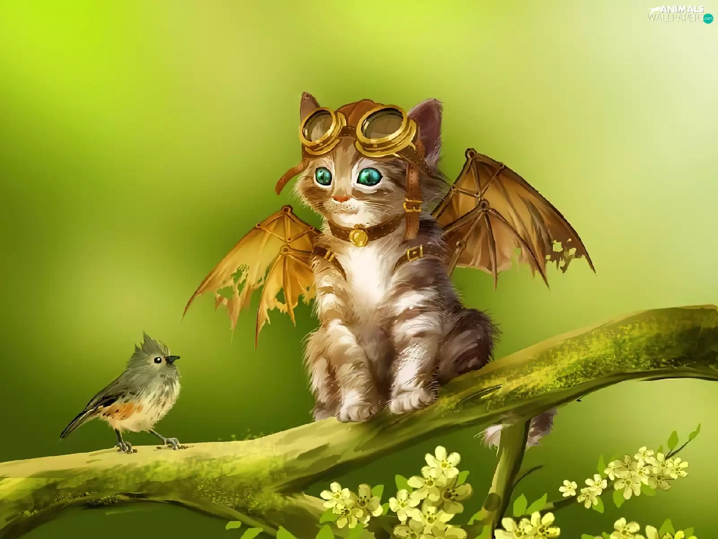 birdies, Art, wings, Google, kitten