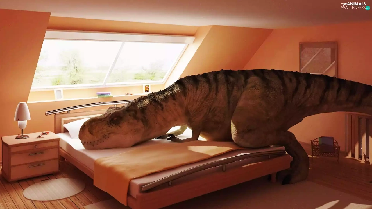 White Bed, dinosaur, attic