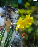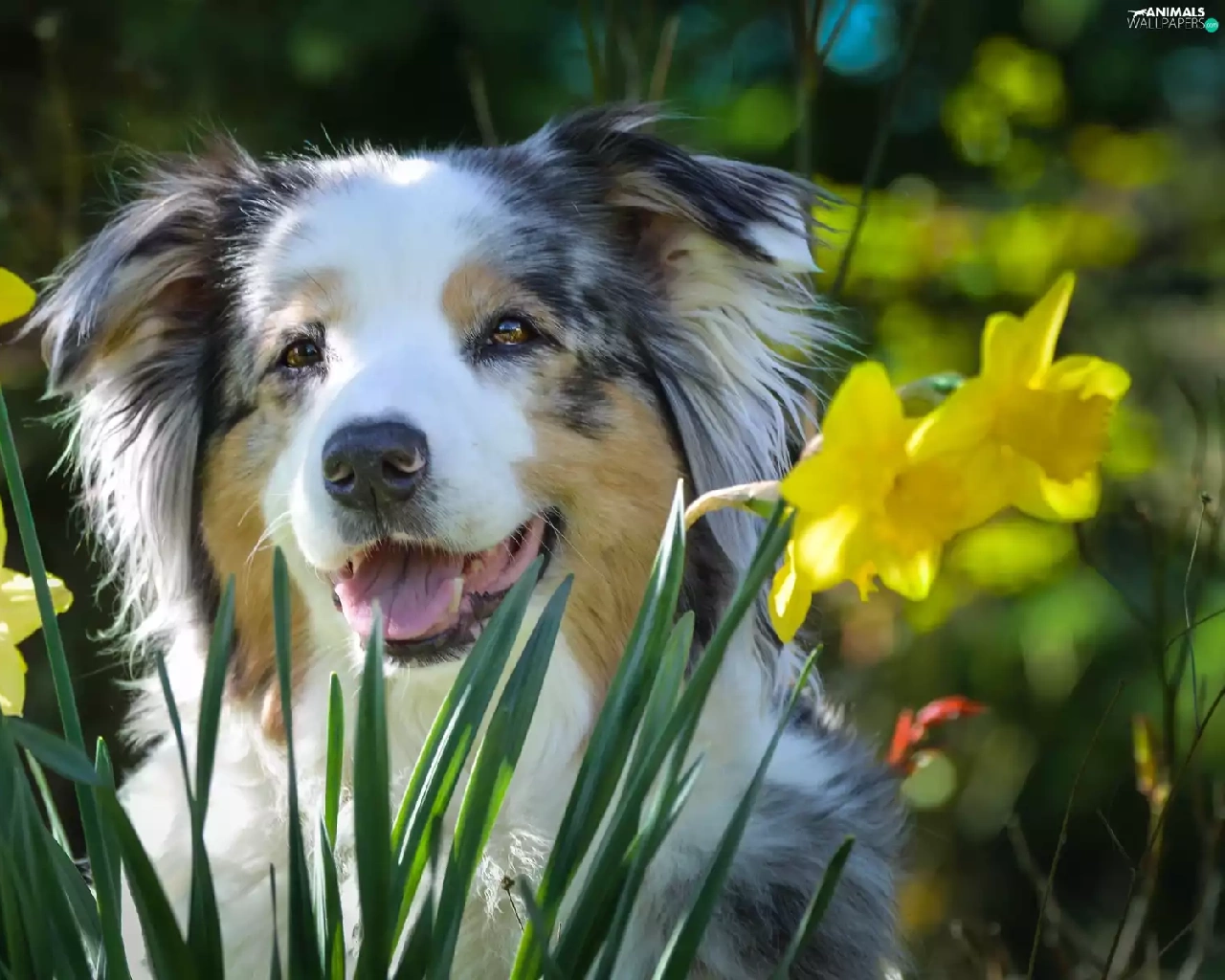 Australian Shepherd, Daffodils