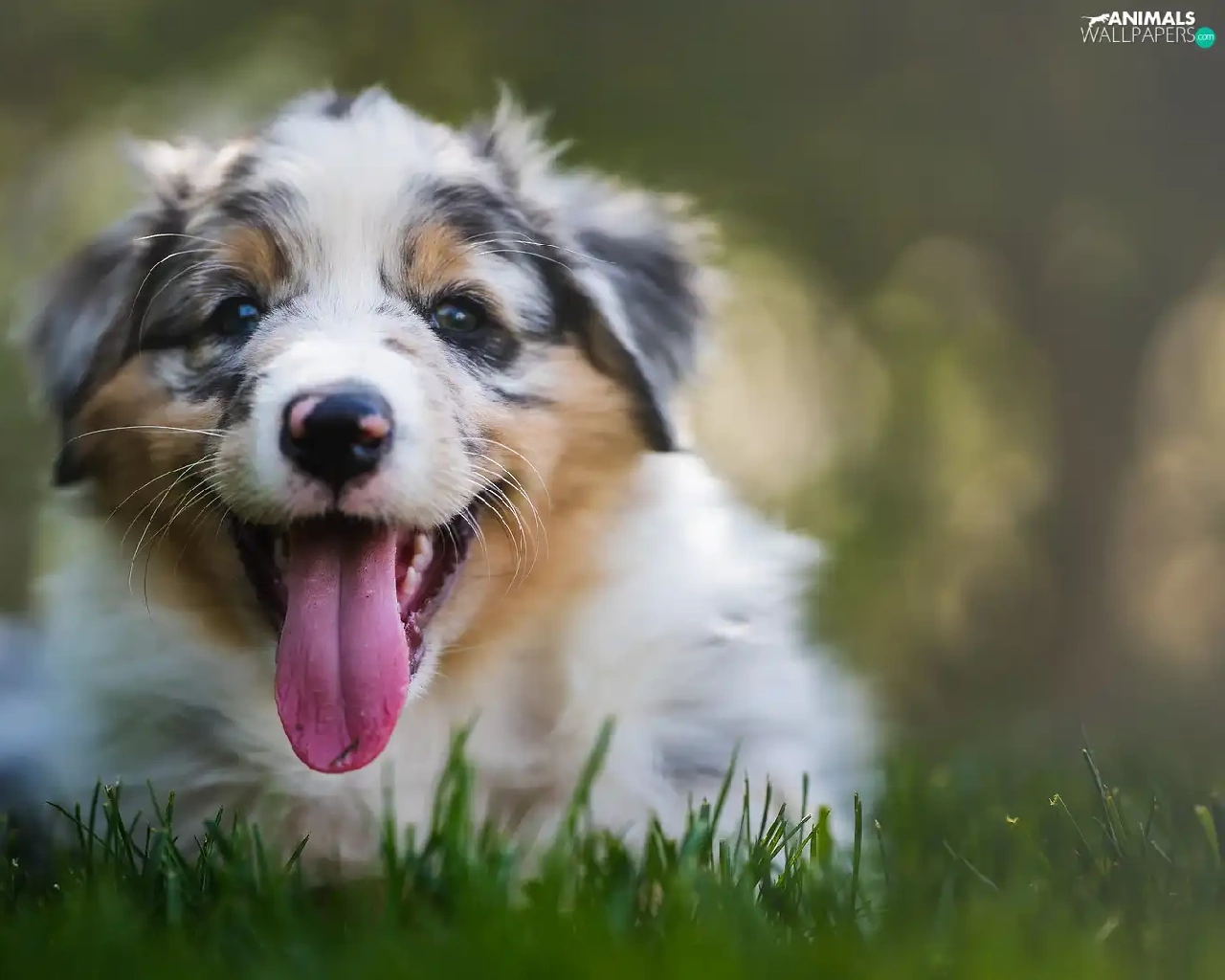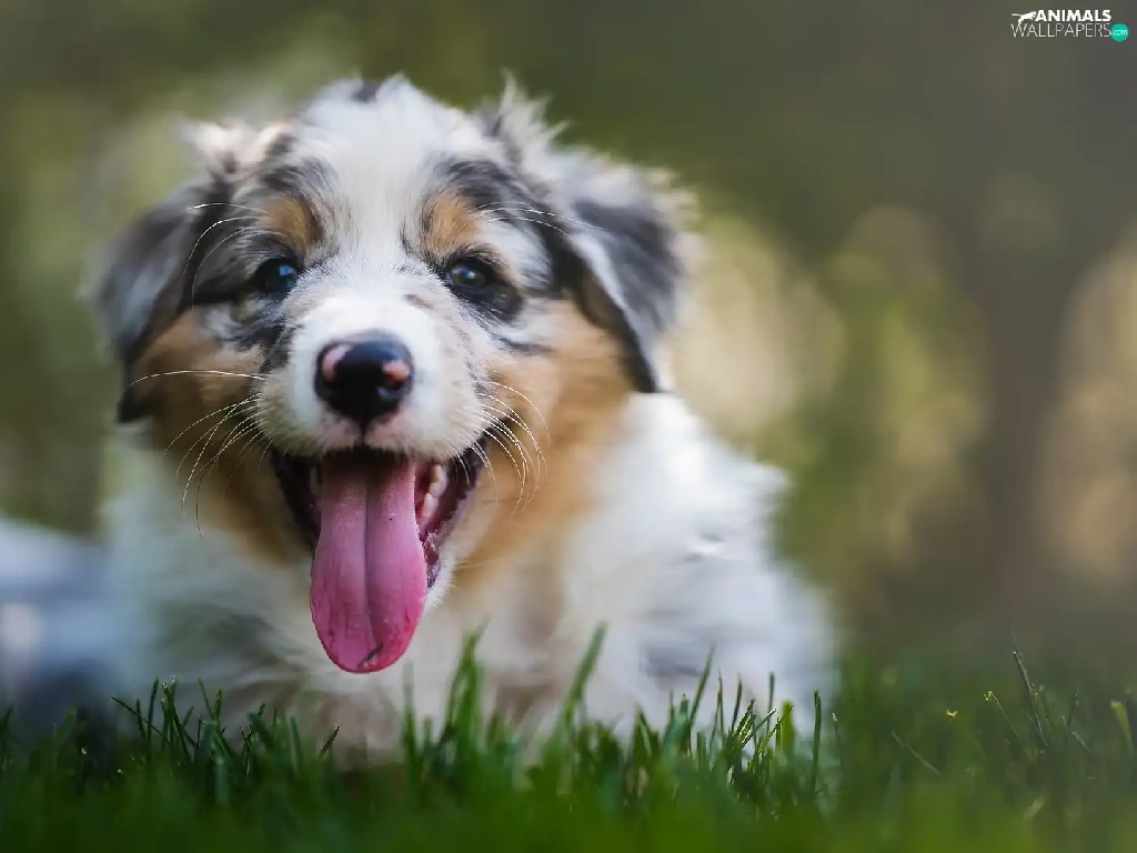 Hung, tongue, Puppy, Australian Shepherd, dog