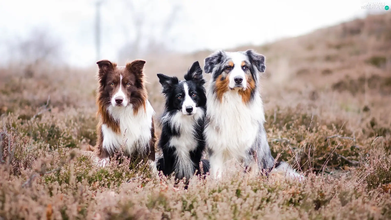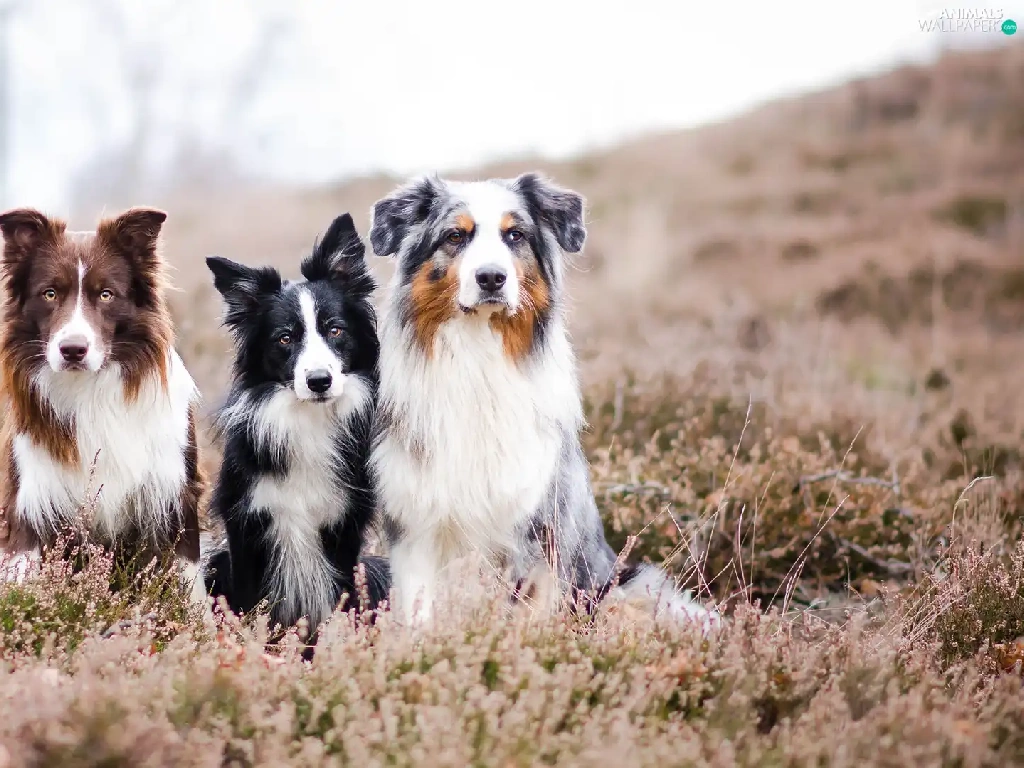 Three, Border Collie, Australian Shepherd, Dogs