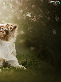 Australian Shepherd, dog, grass, Bush, Meadow, Puppy