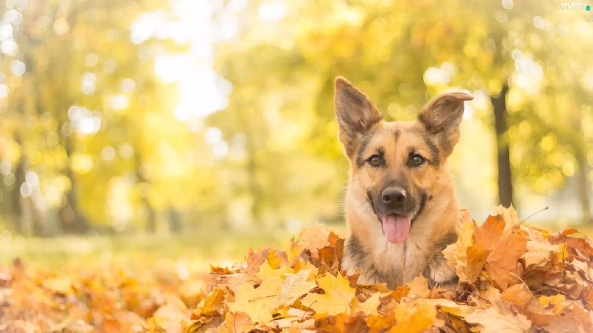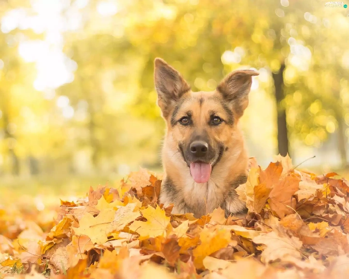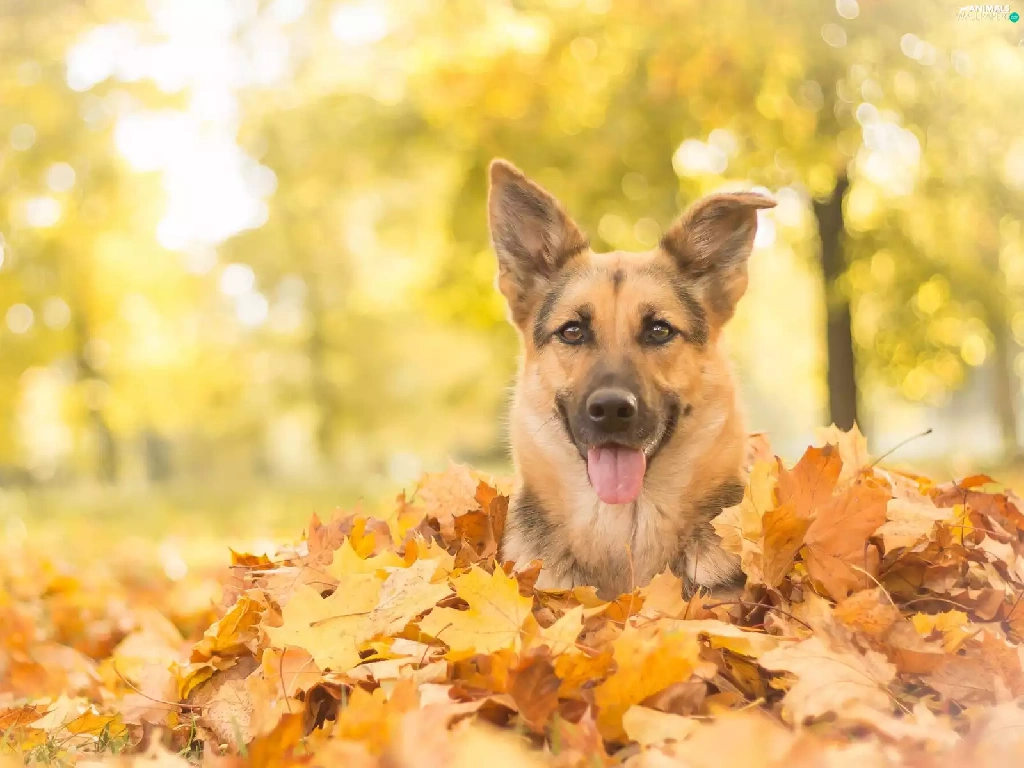 fallen, Leaf, german, autumn, sheep-dog