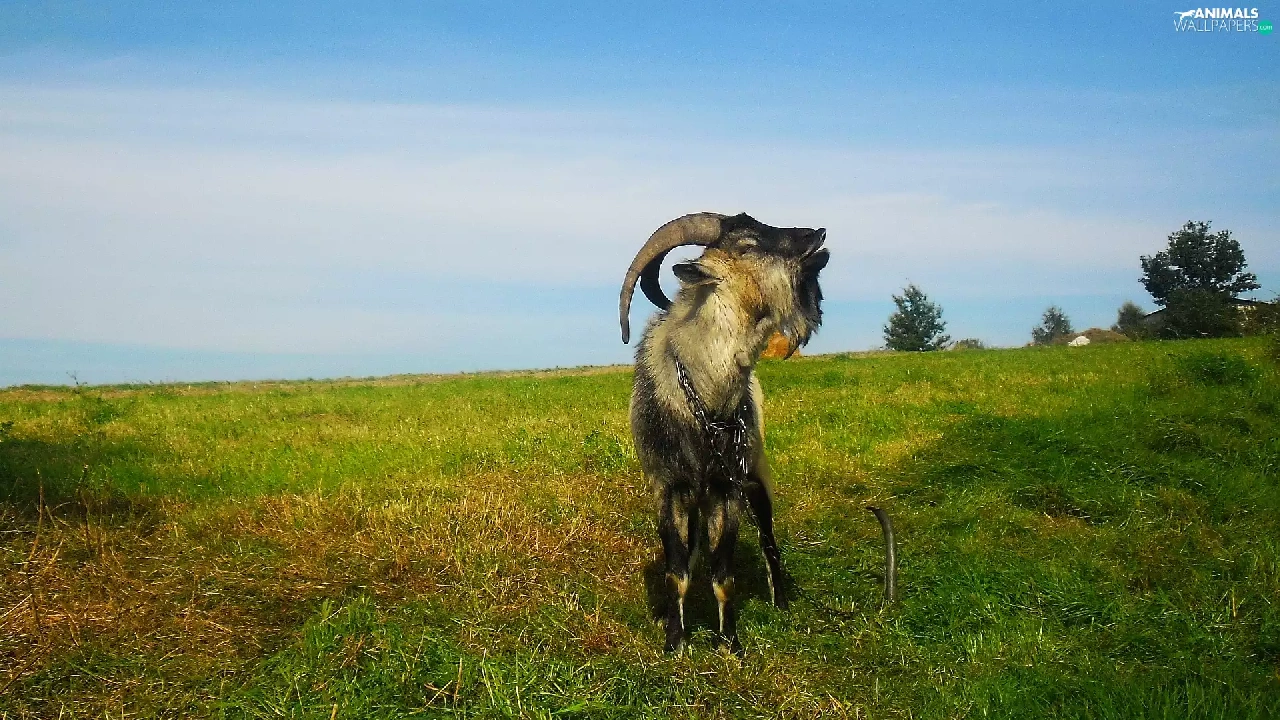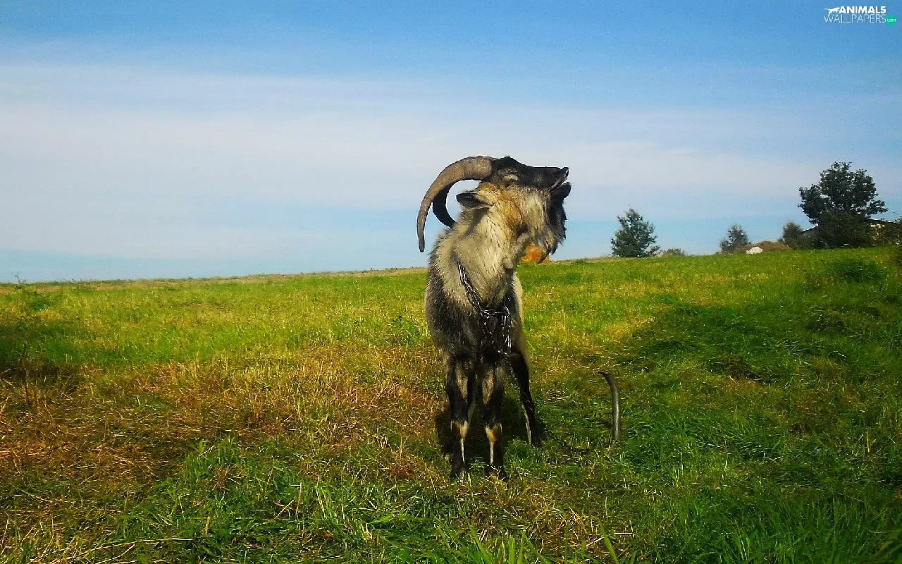 autumn, grass, goat