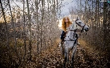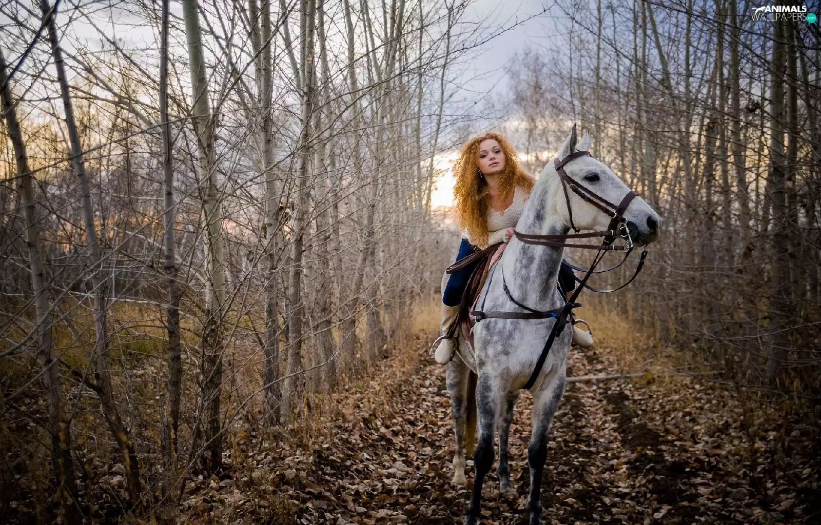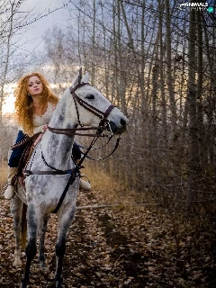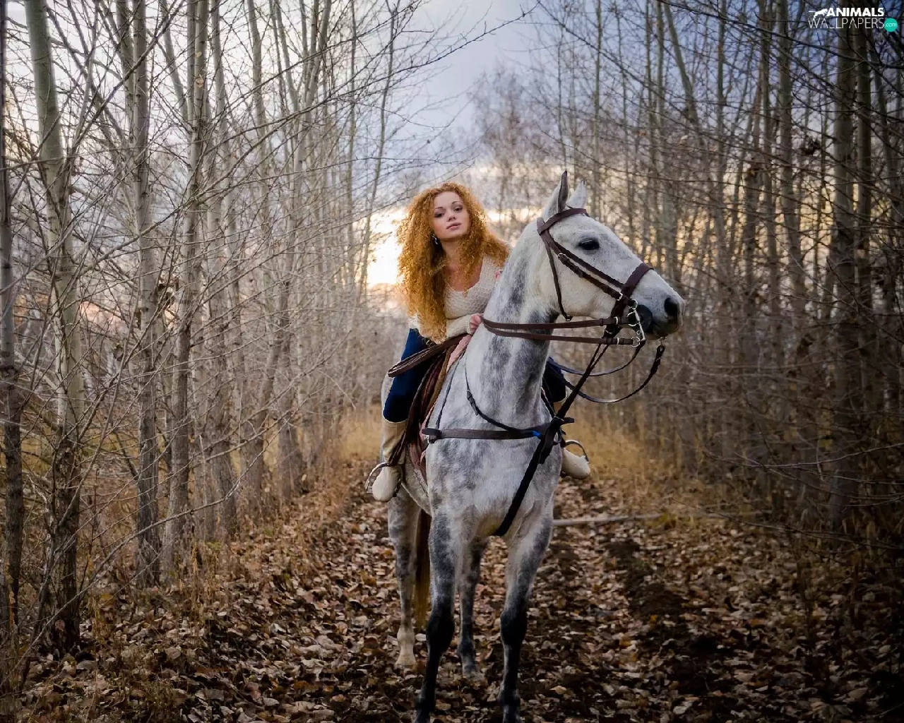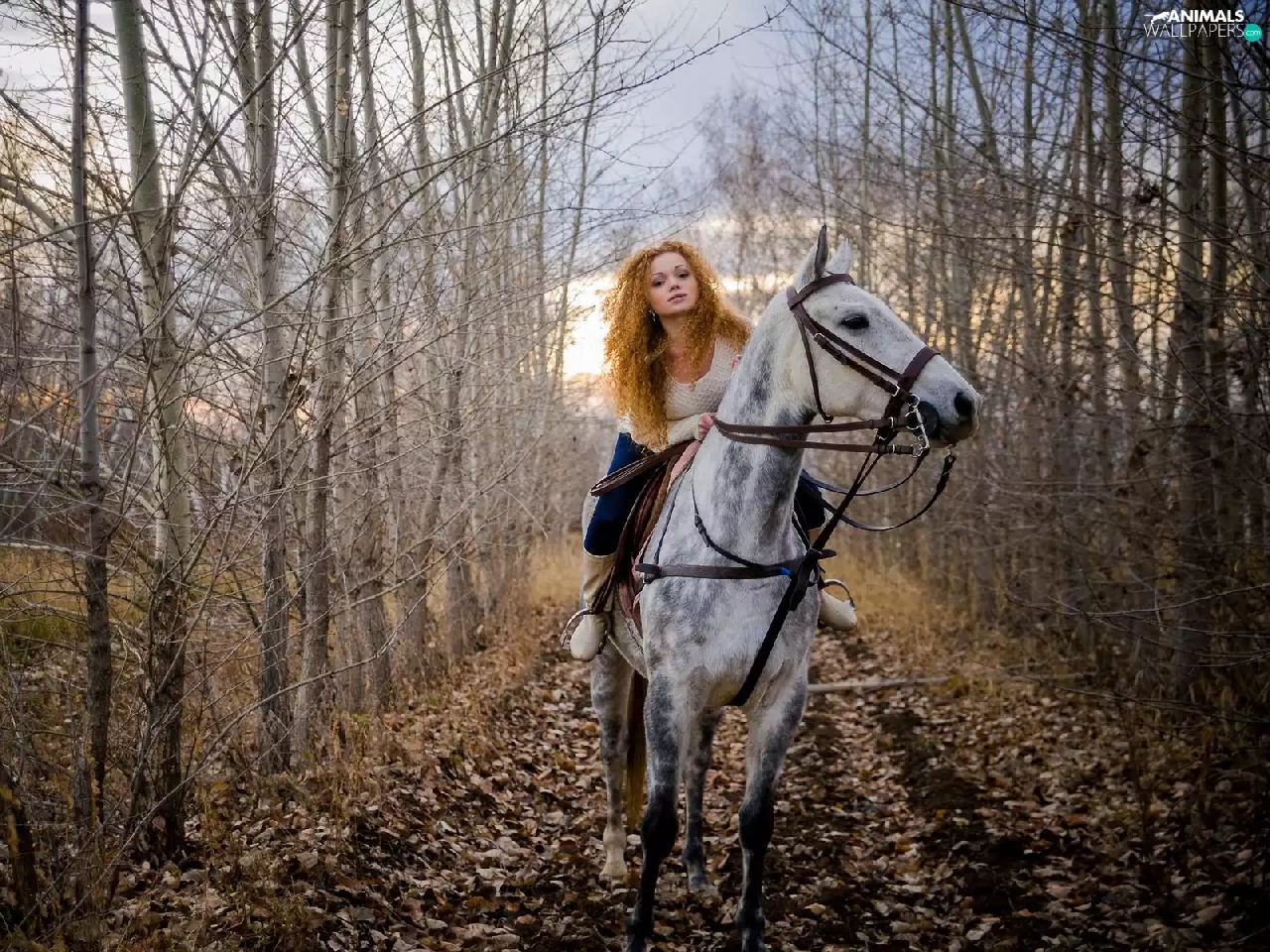 Way, girl, Leaf, autumn, forest, Horse