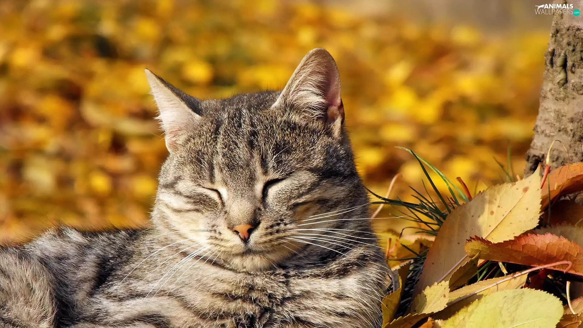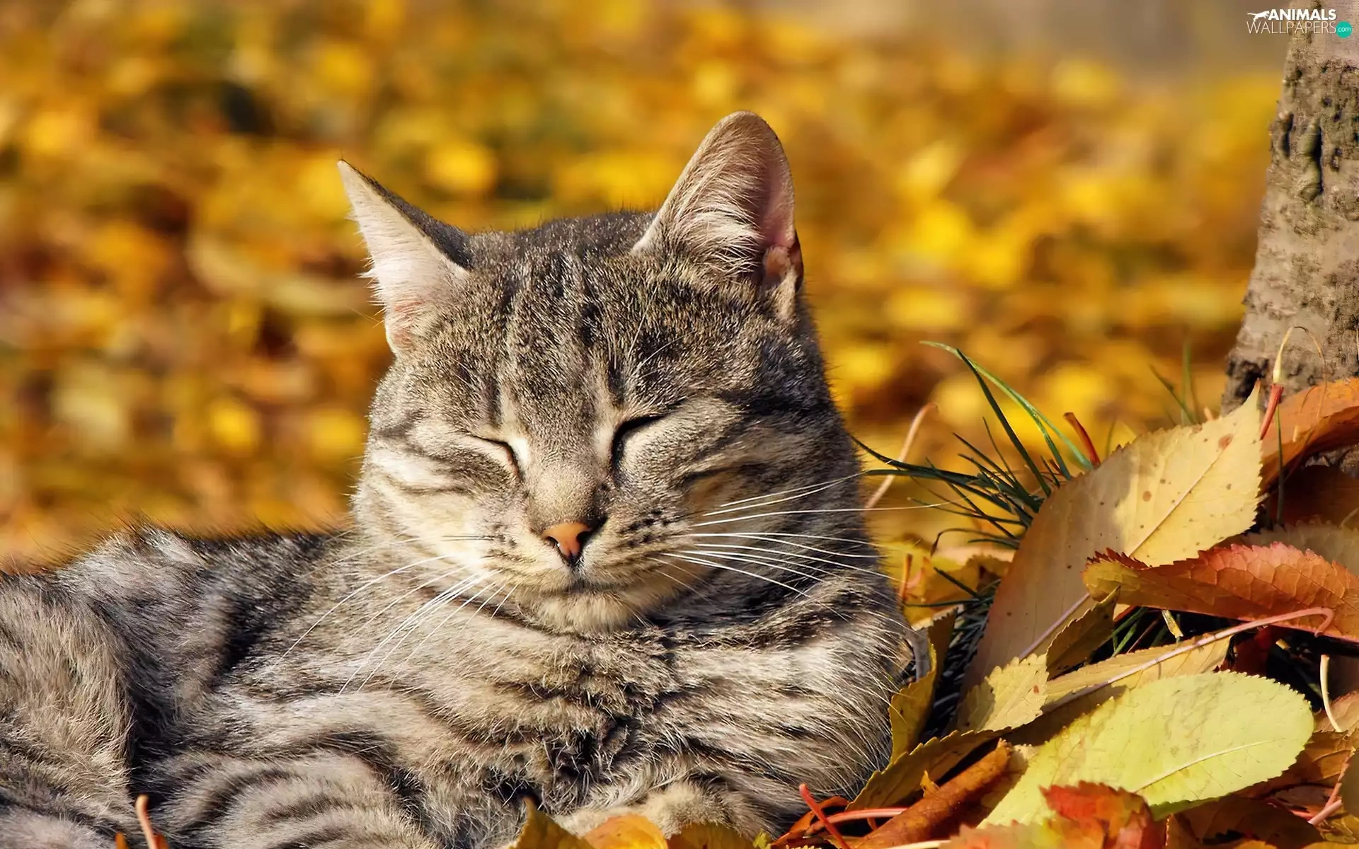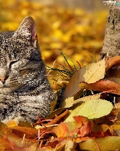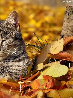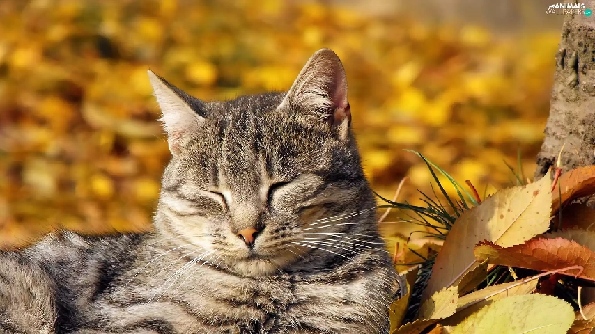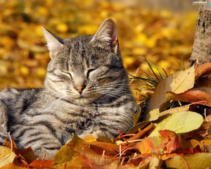 autumn, cat, Leaf