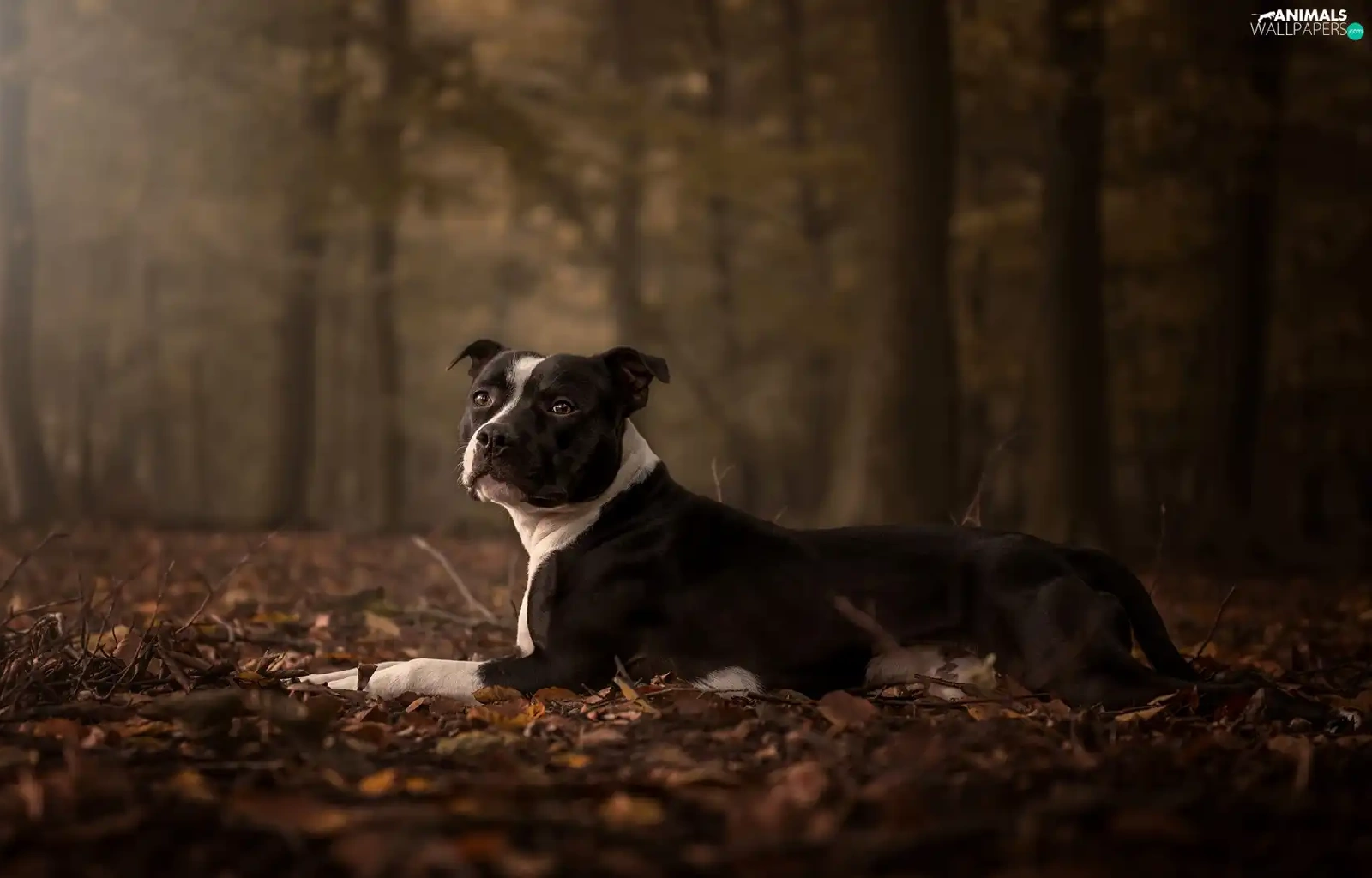 Autumn, Leaf, Amstaff, forest, dog