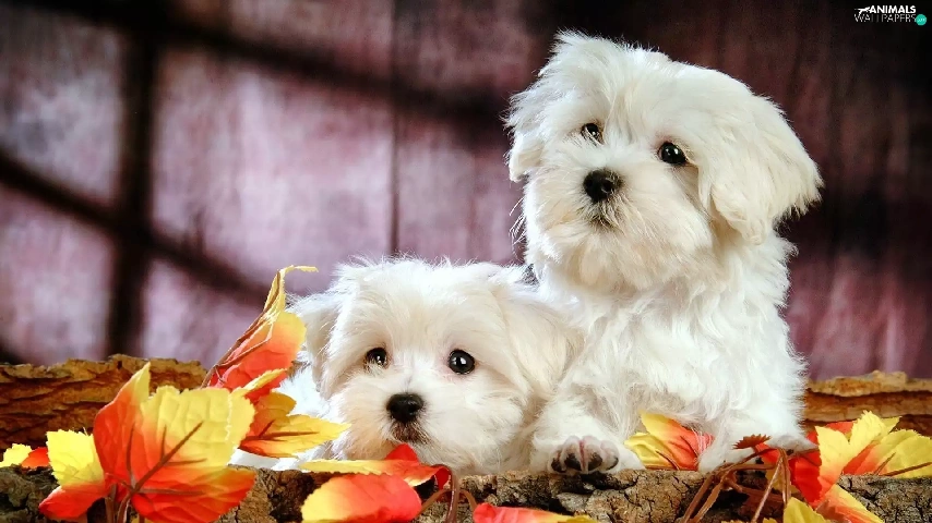 White, Autumn, Leaf, Bichon frise