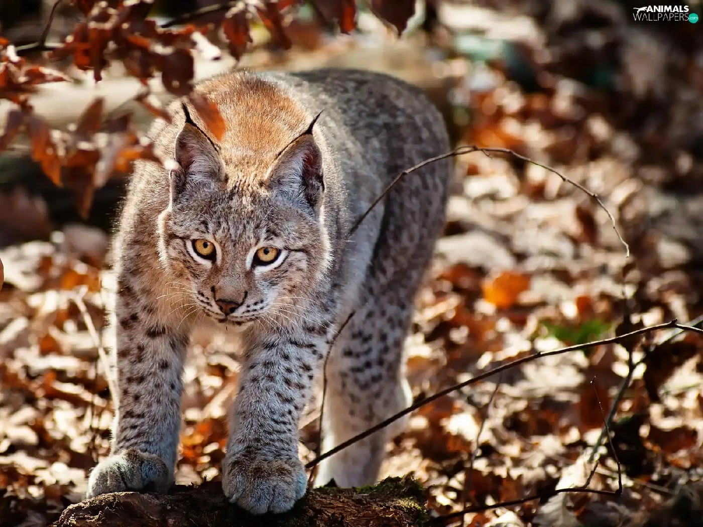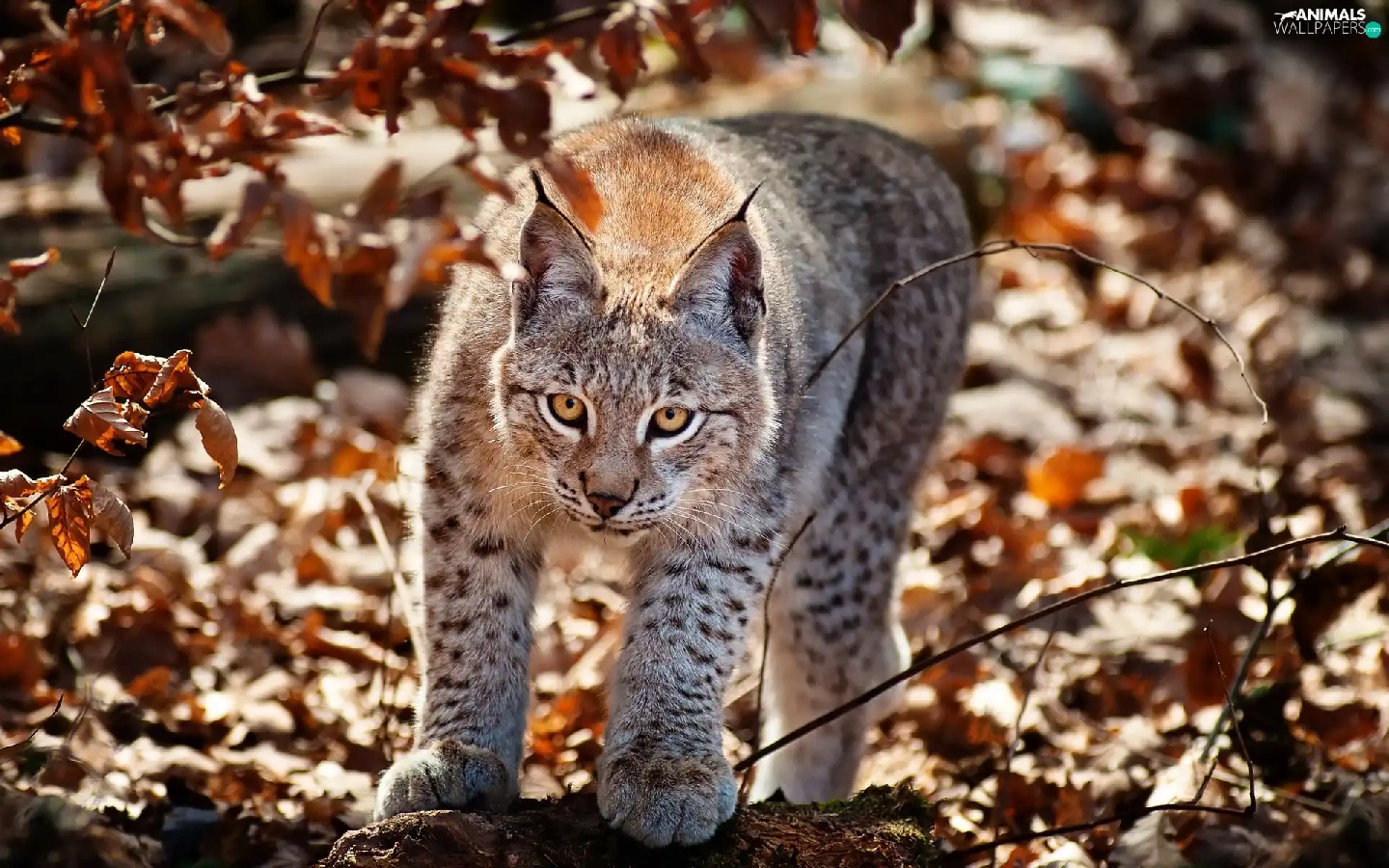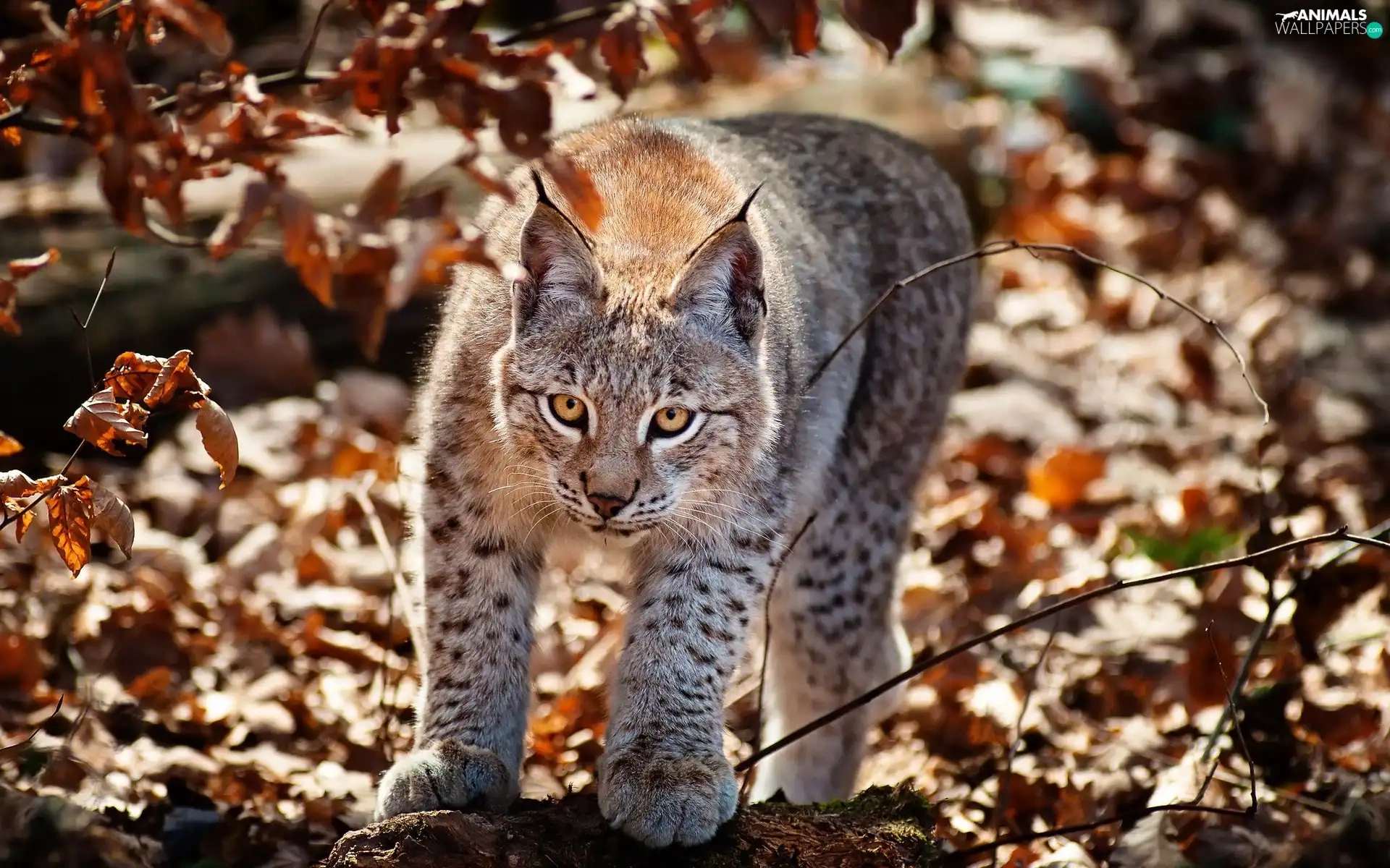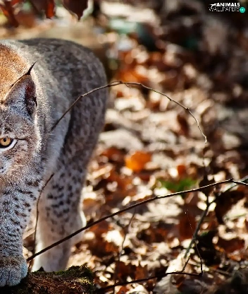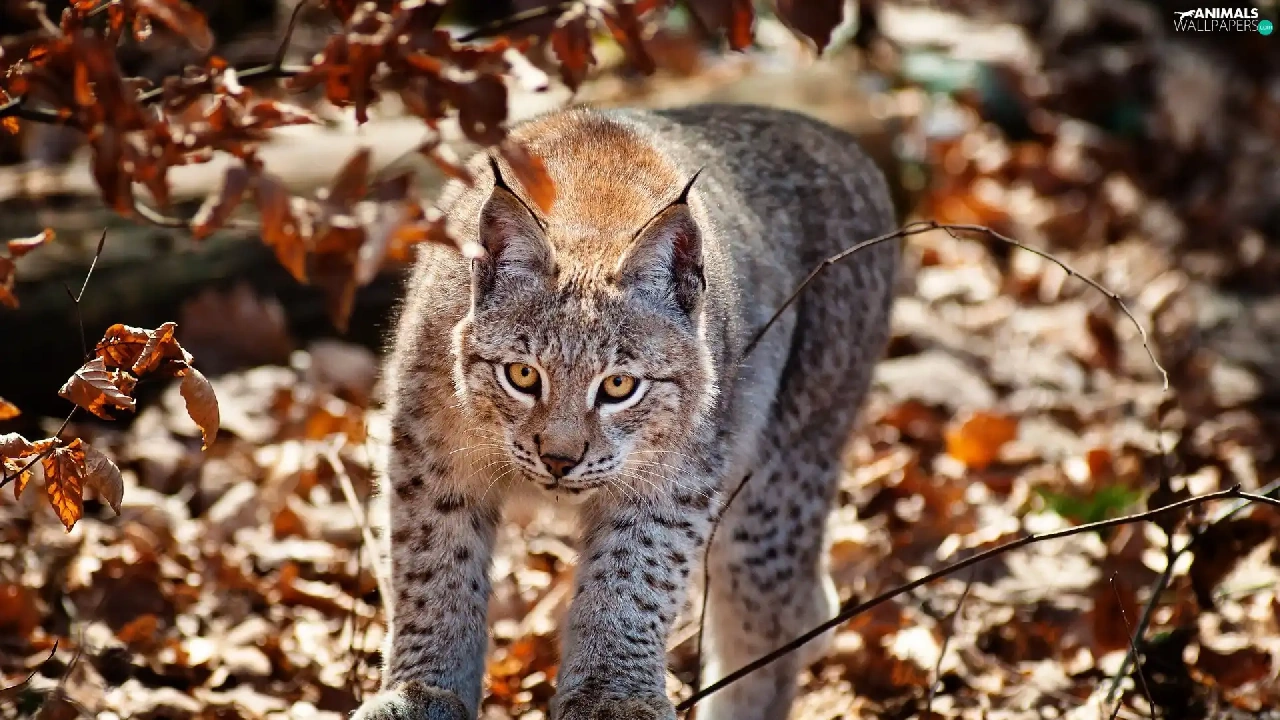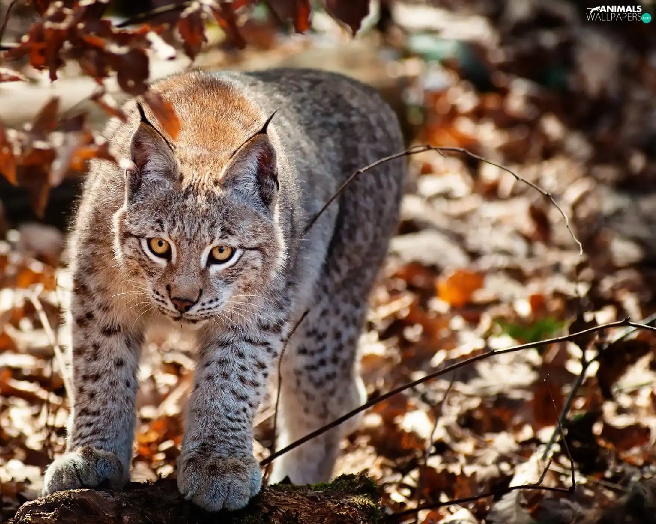 Lynx, Leaf, autumn, forest