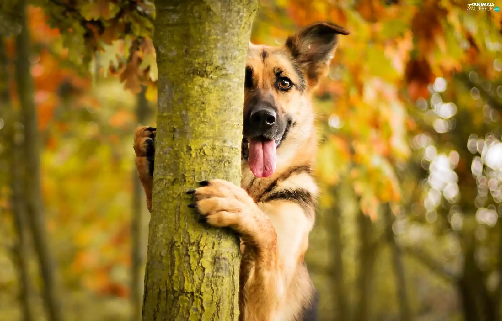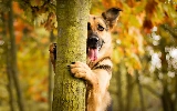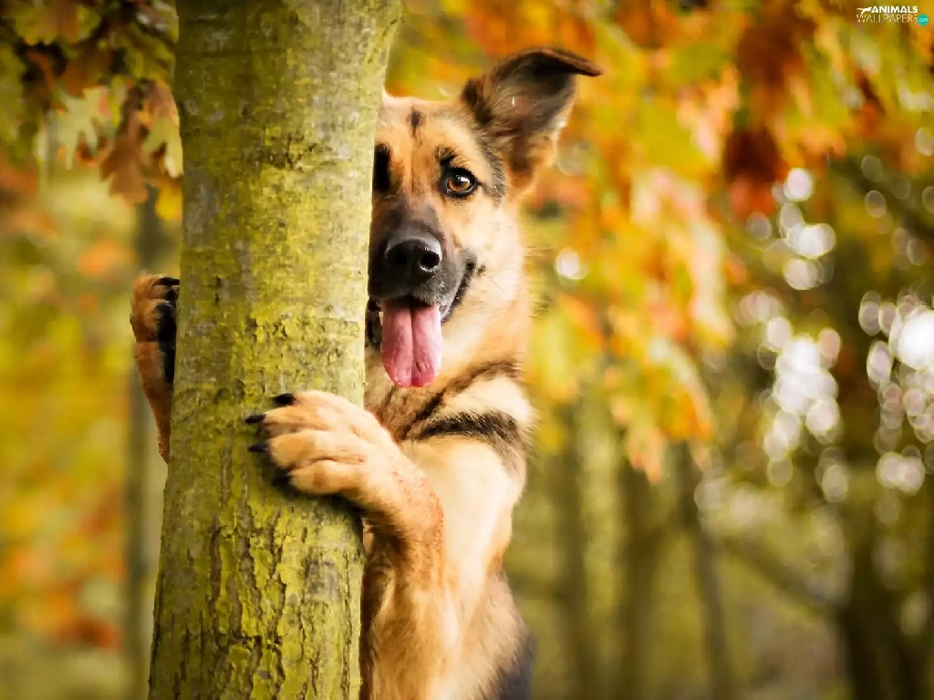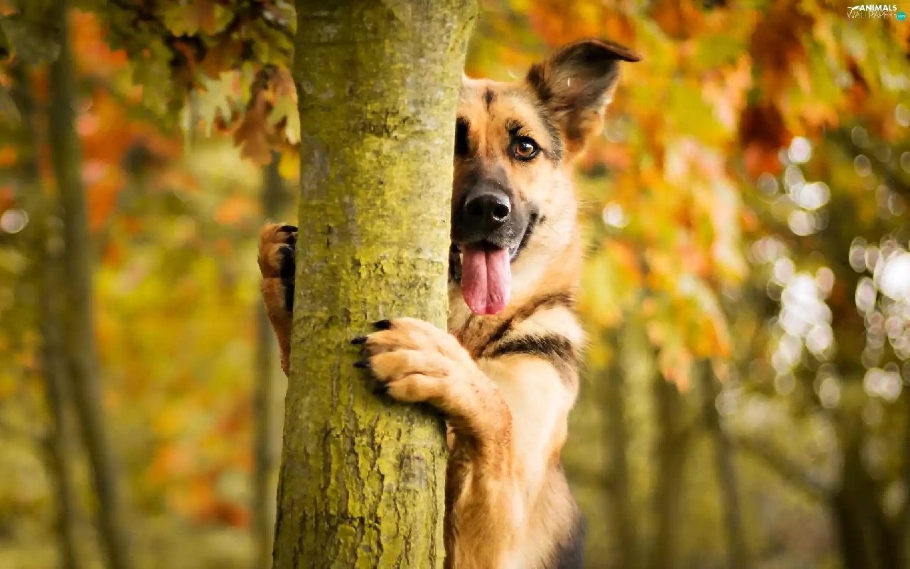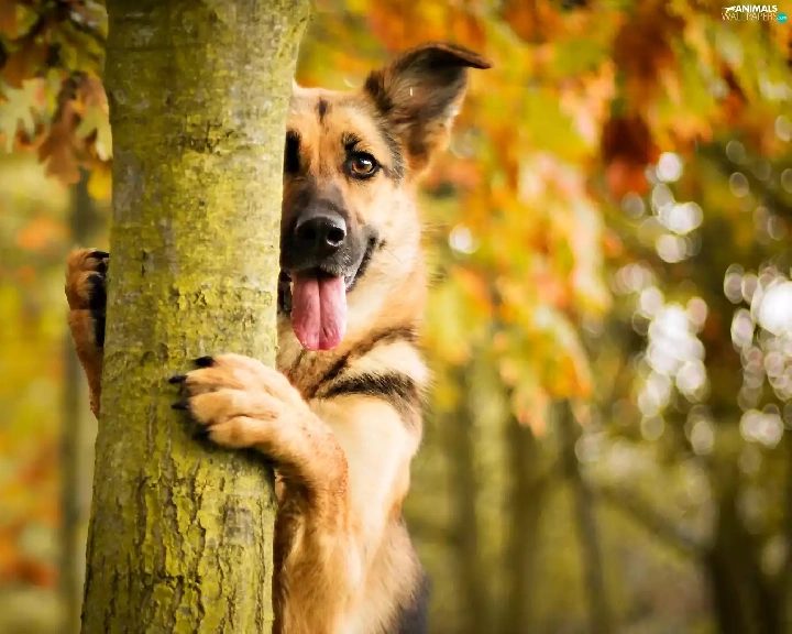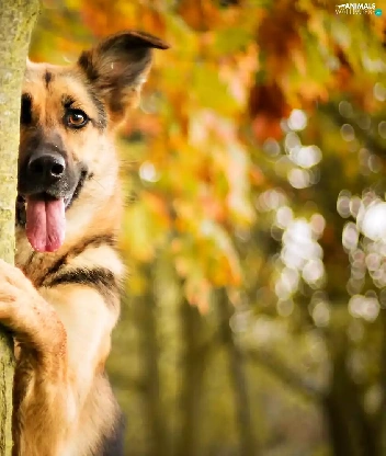 autumn, dog, trees