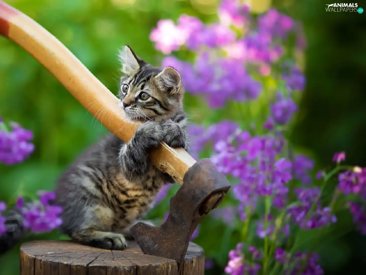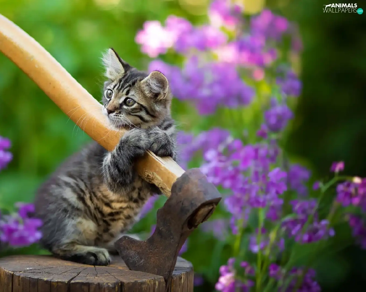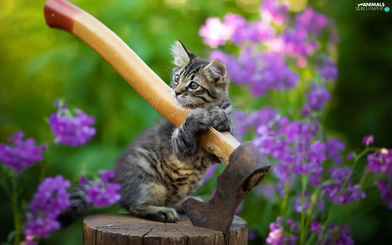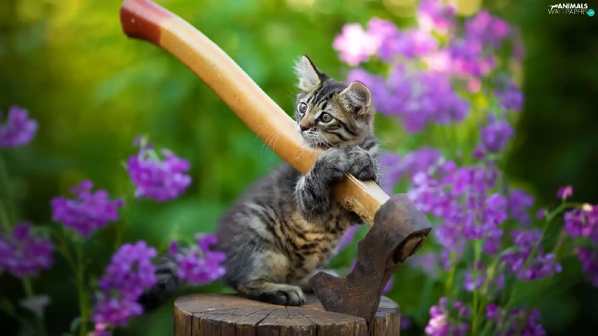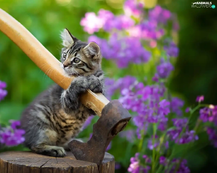 cat, ax, small, kitten, dun