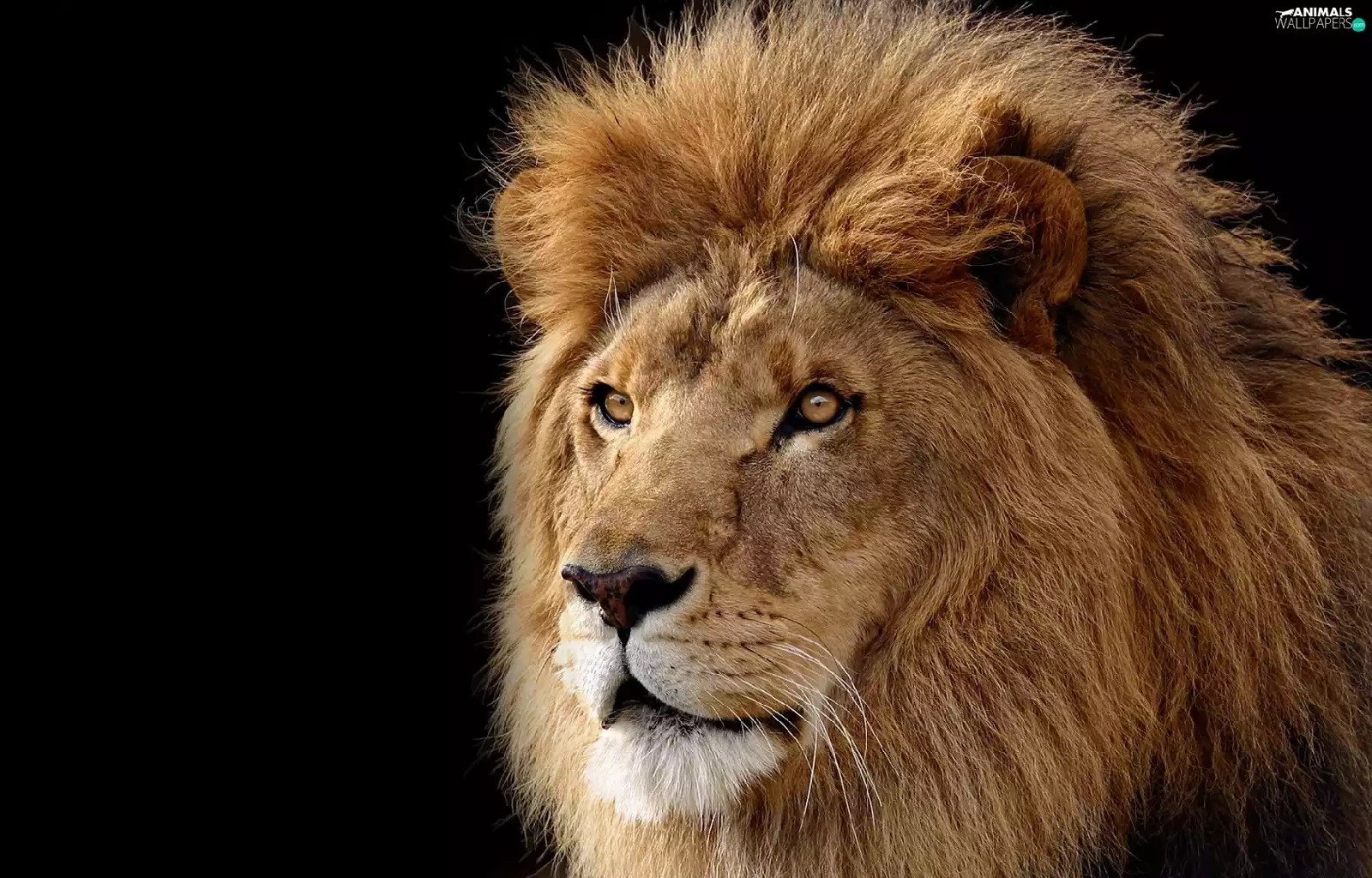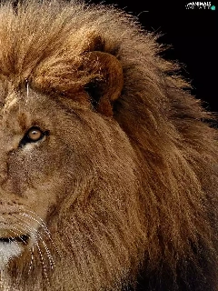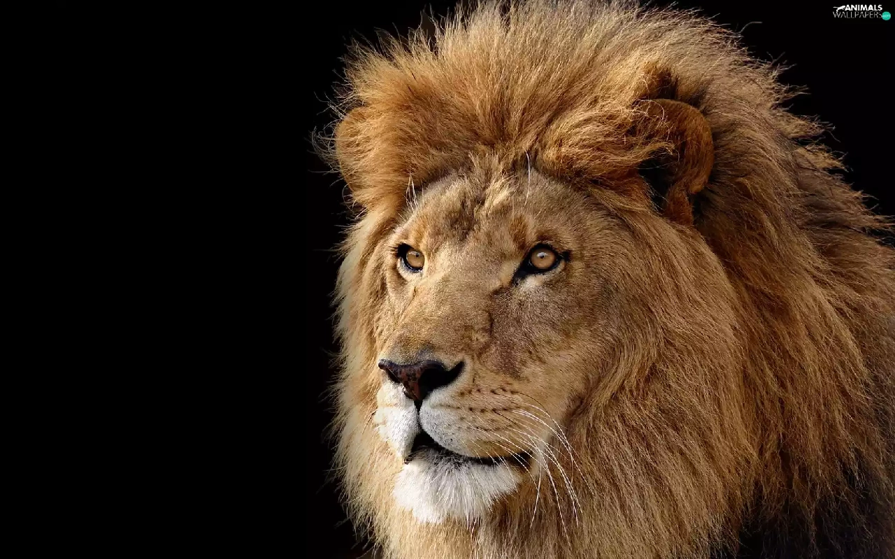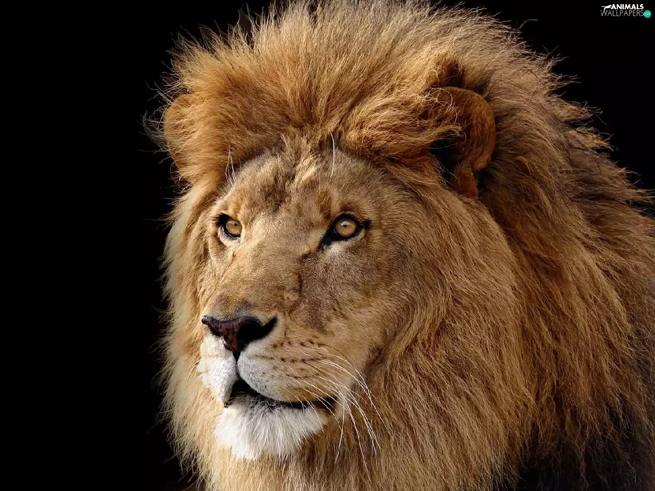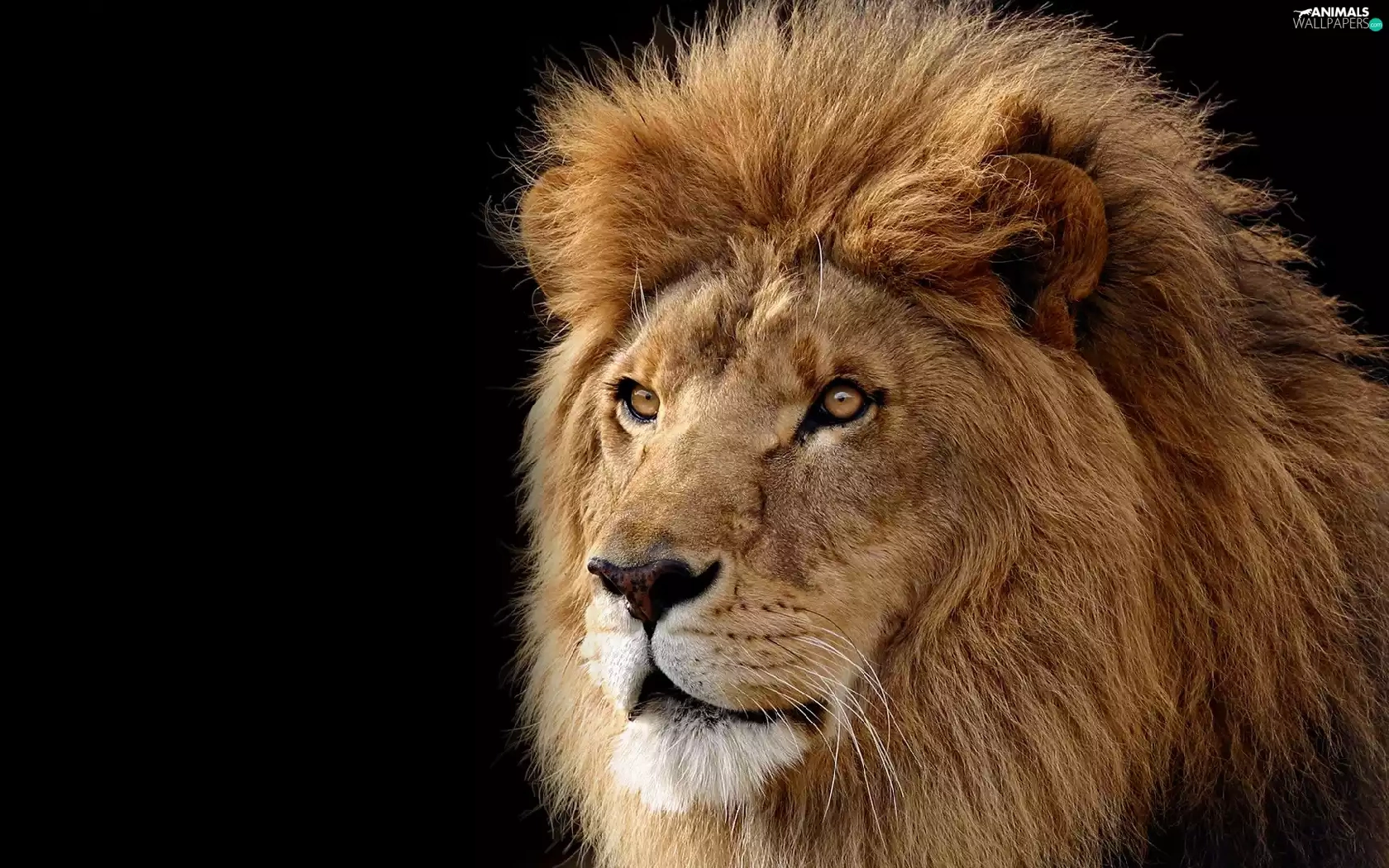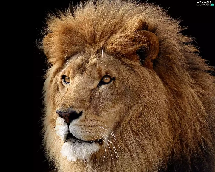 The look, black background, Head, mane, Lion