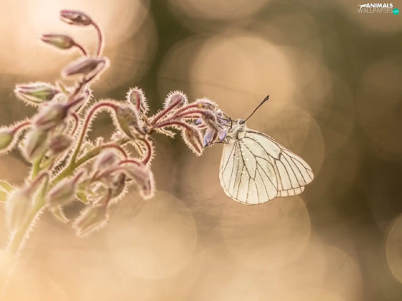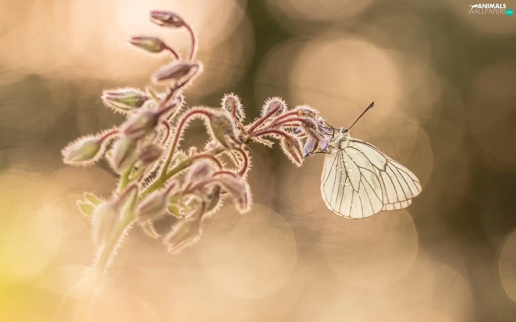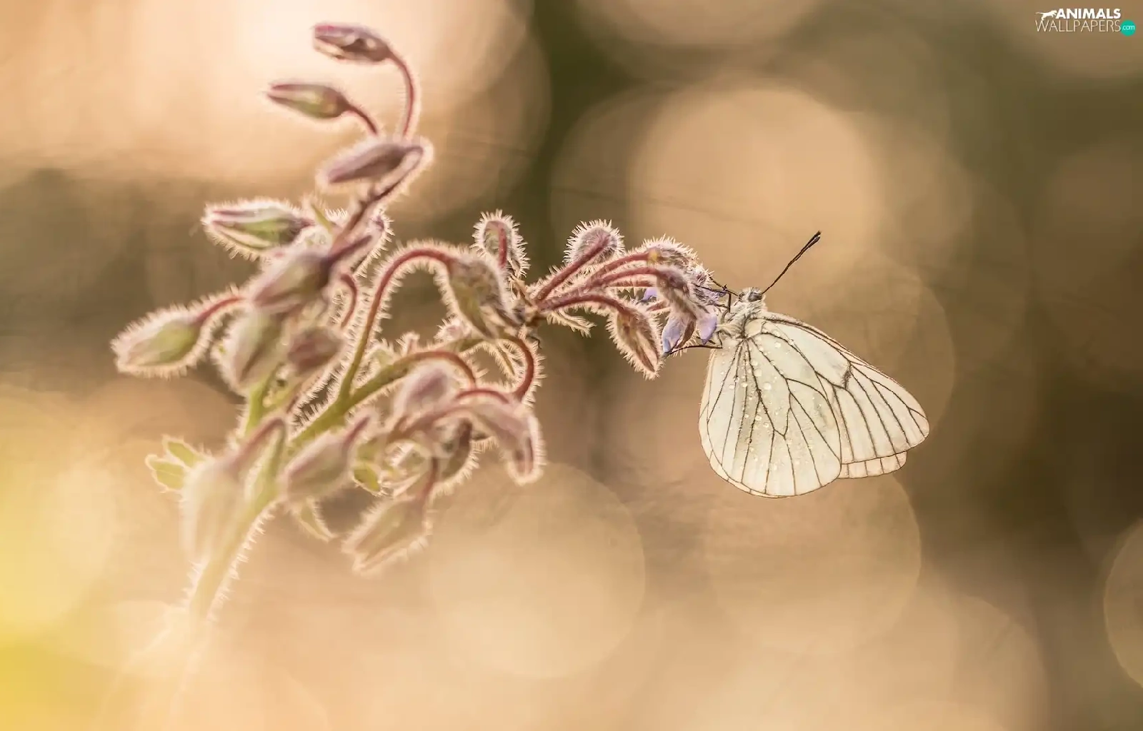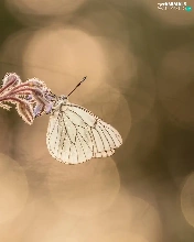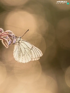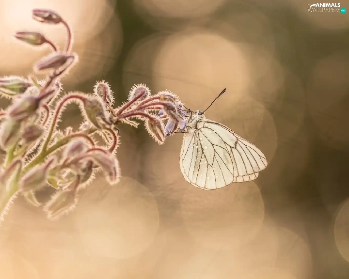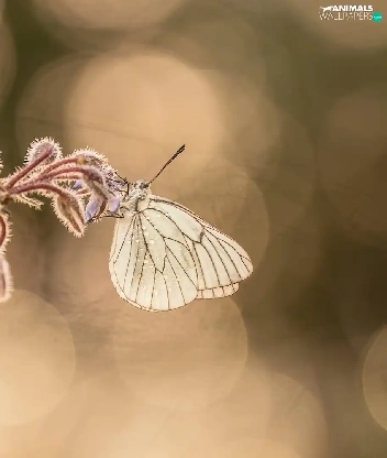 butterfly, plant, blurry background, Black-veined White