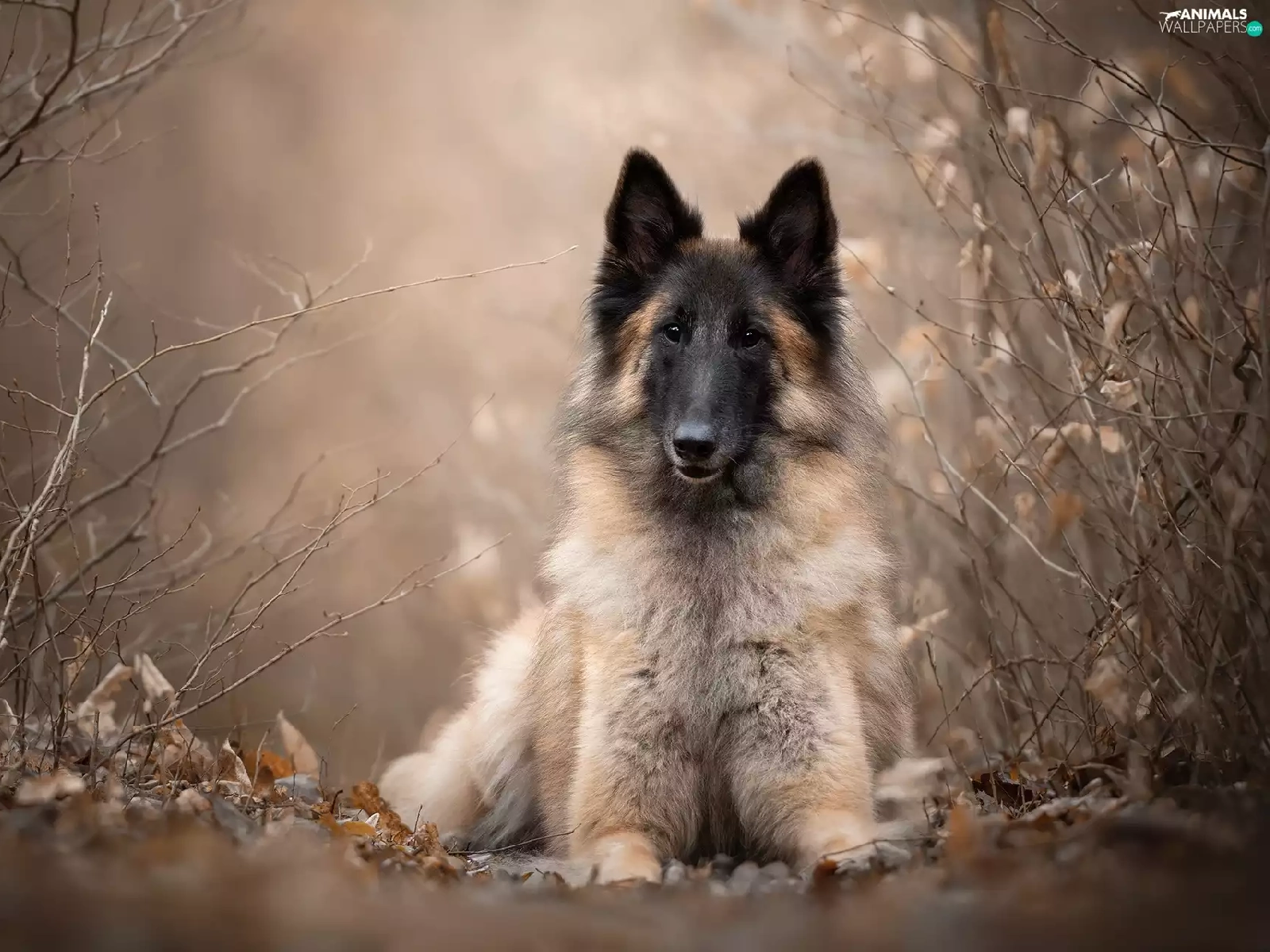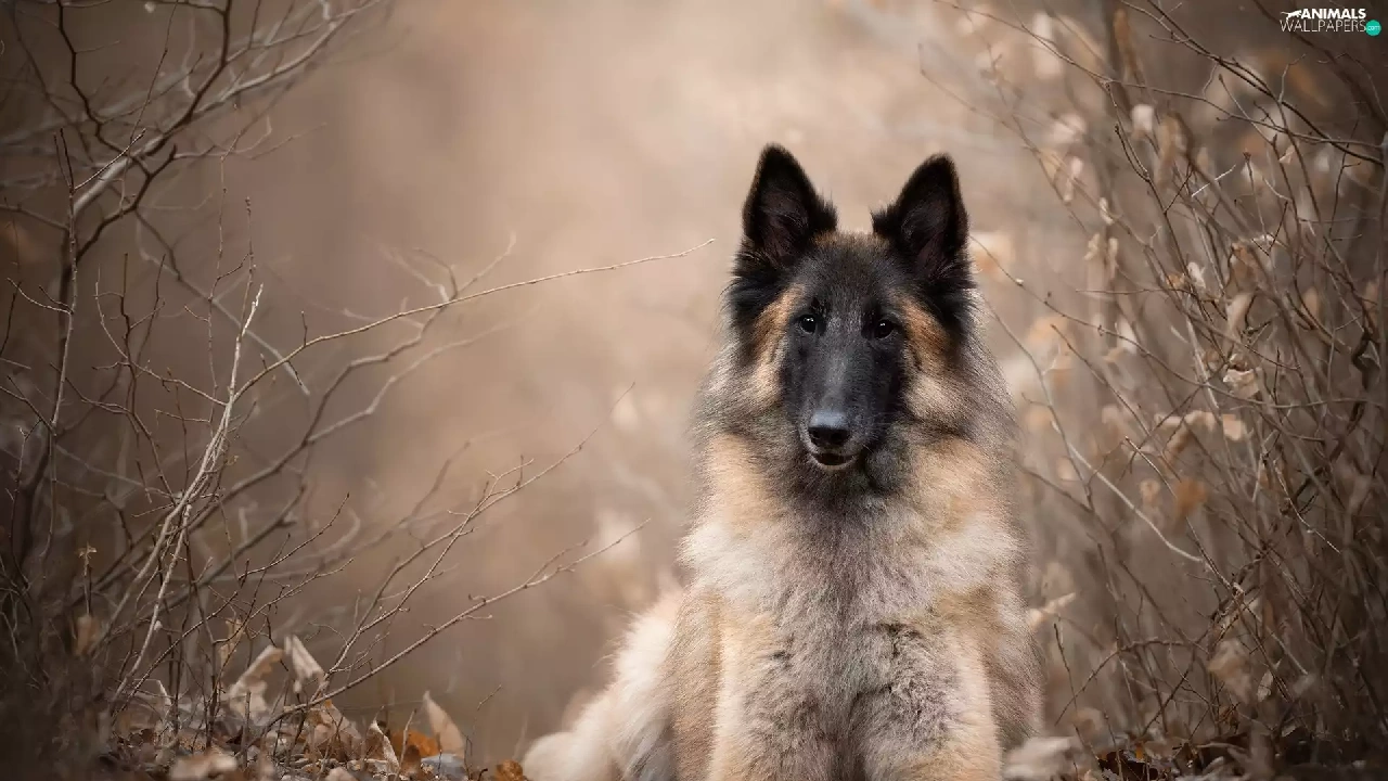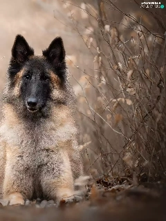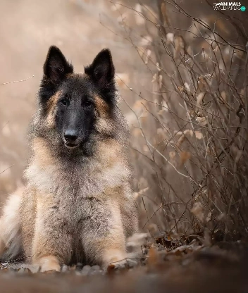 dog, Plants, blurry background, Belgian Shepherd Tervuren