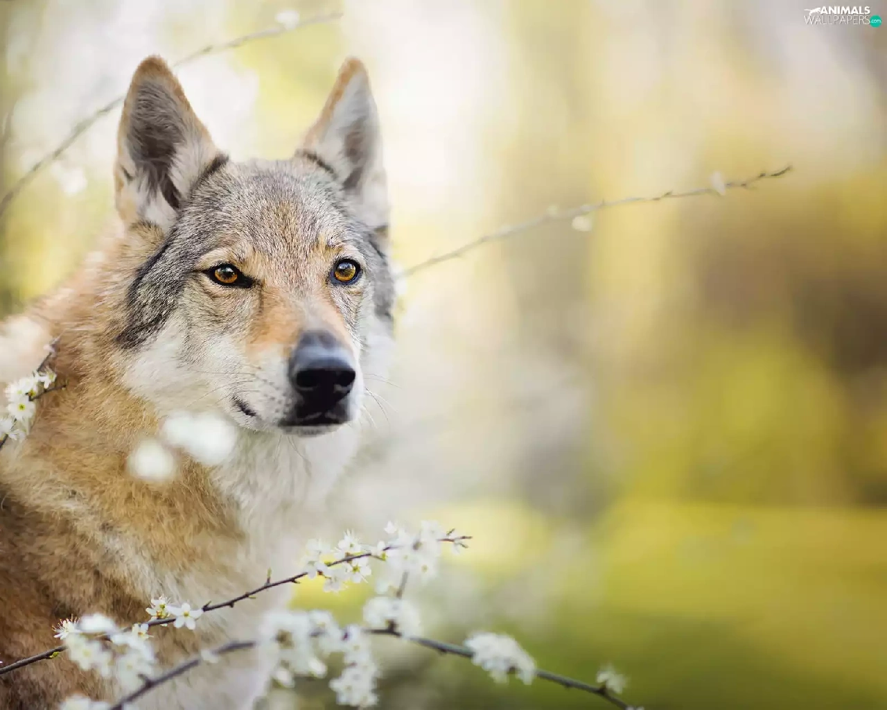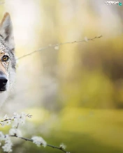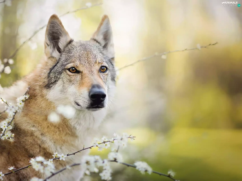 muzzle, dog, fuzzy, background, Flowers, Czechoslovakian Wolfdog