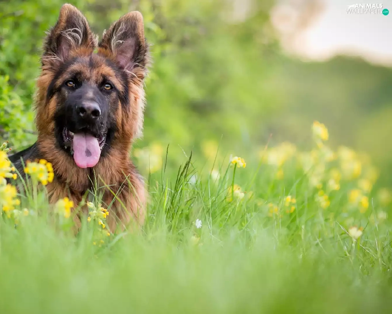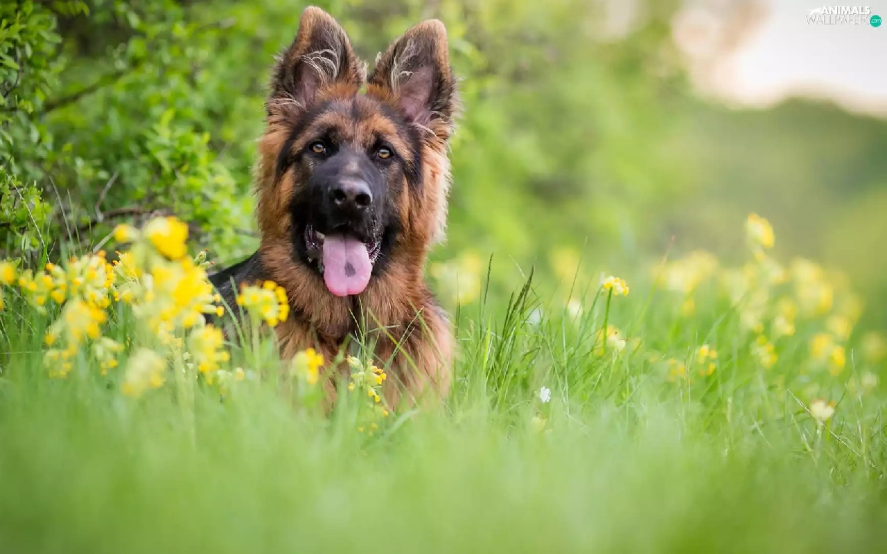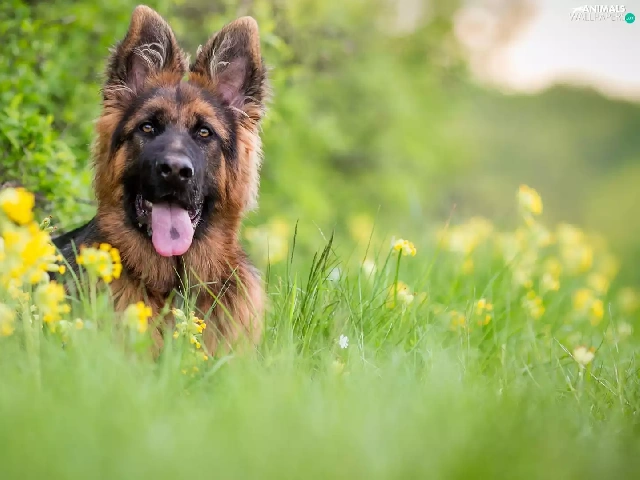 blurry background, German Shepherd, Meadow