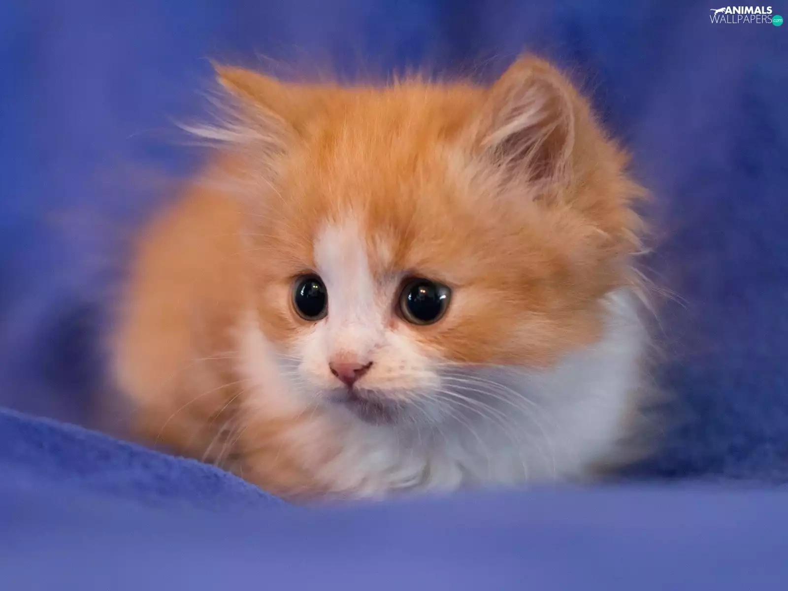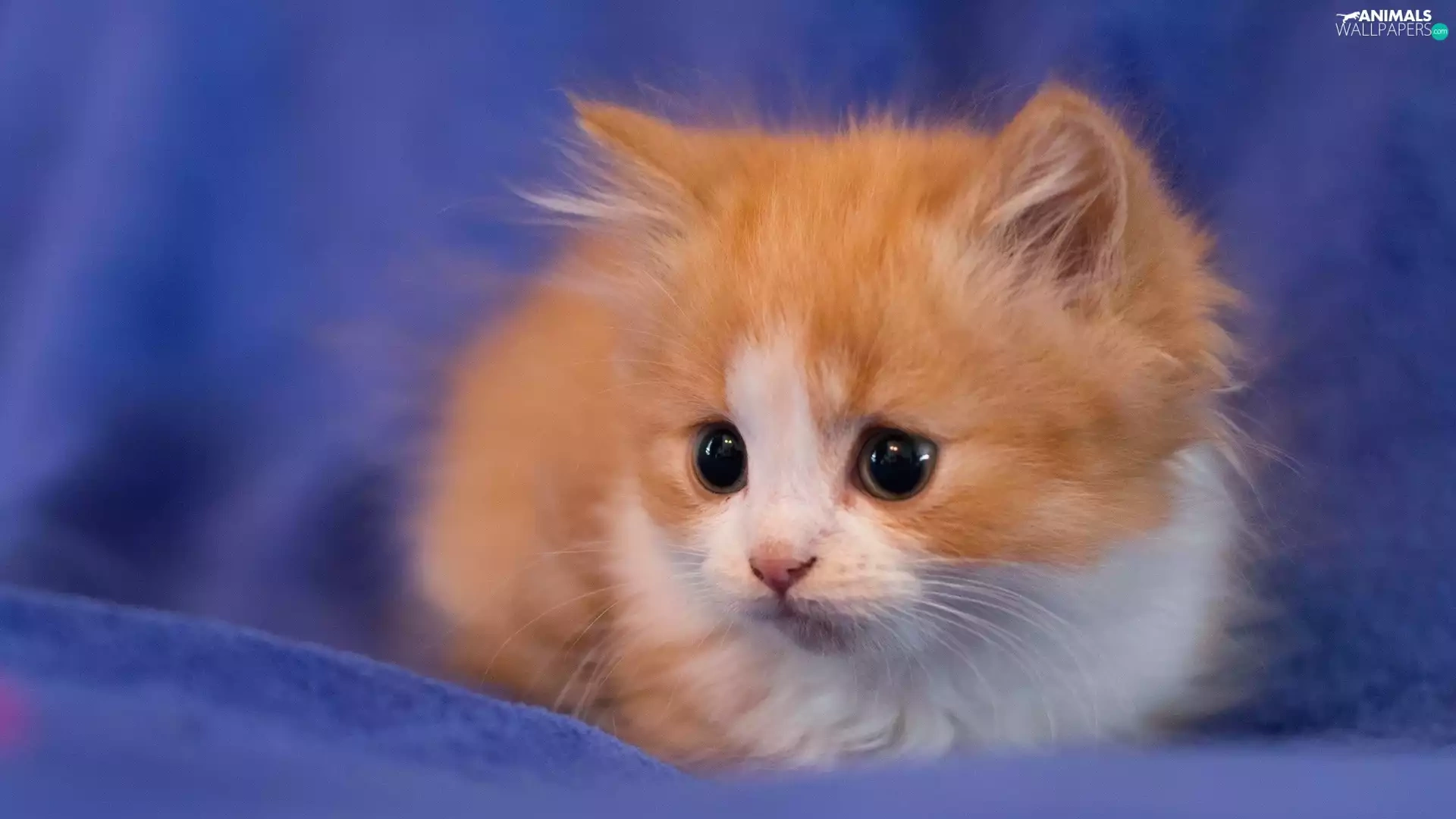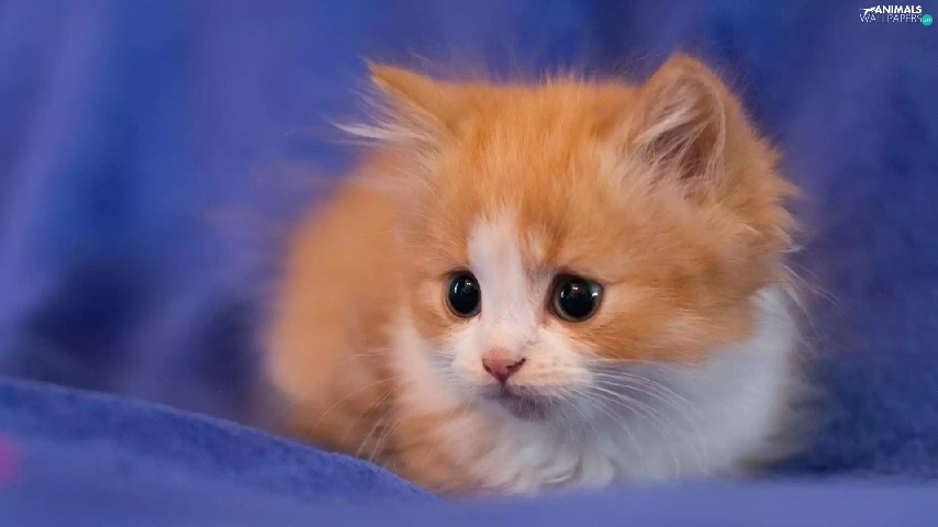Blue, background, ginger, kitten, honeyed
