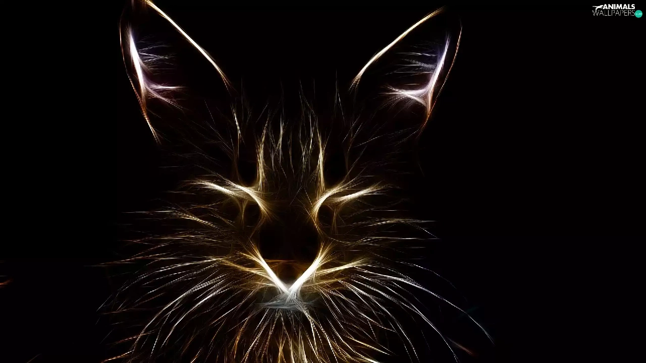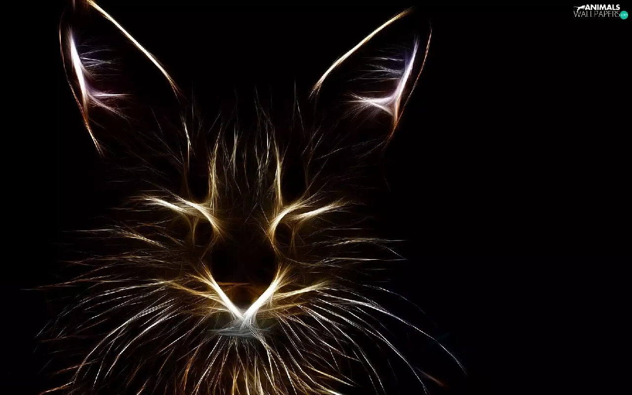 Black, background, graphics, Fractalius, cat