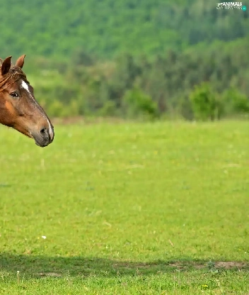gear, bay, fuzzy, background, grass, Horse